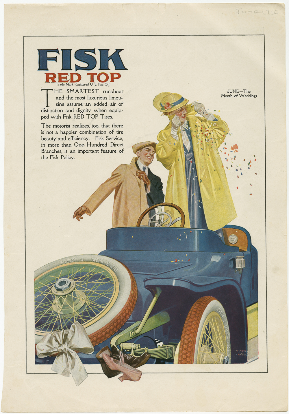 Charles Henry Cushman Parker (1881 - 1940), “Fisk Tire Company Print Ad - June - The Month of Weddings,” Chicopee Archives Online, accessed March 6, 2026, https://www.chicopeepubliclibrary.org/archives/items/show/5539.