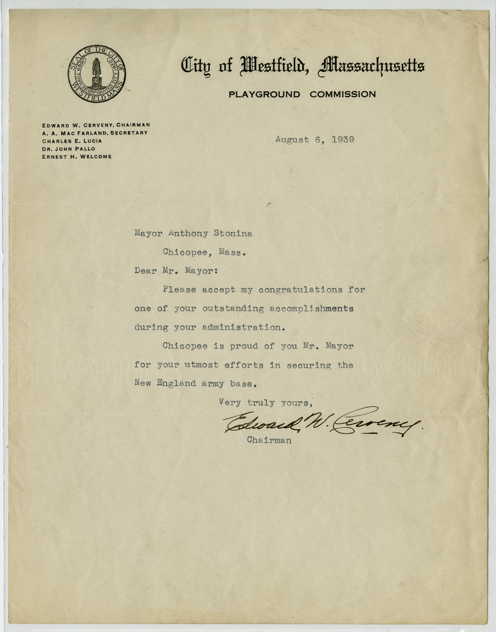 “Other Correspondence Concerning Westover Air Base,” Chicopee Archives Online, accessed March 5, 2026, https://www.chicopeepubliclibrary.org/archives/items/show/5682.