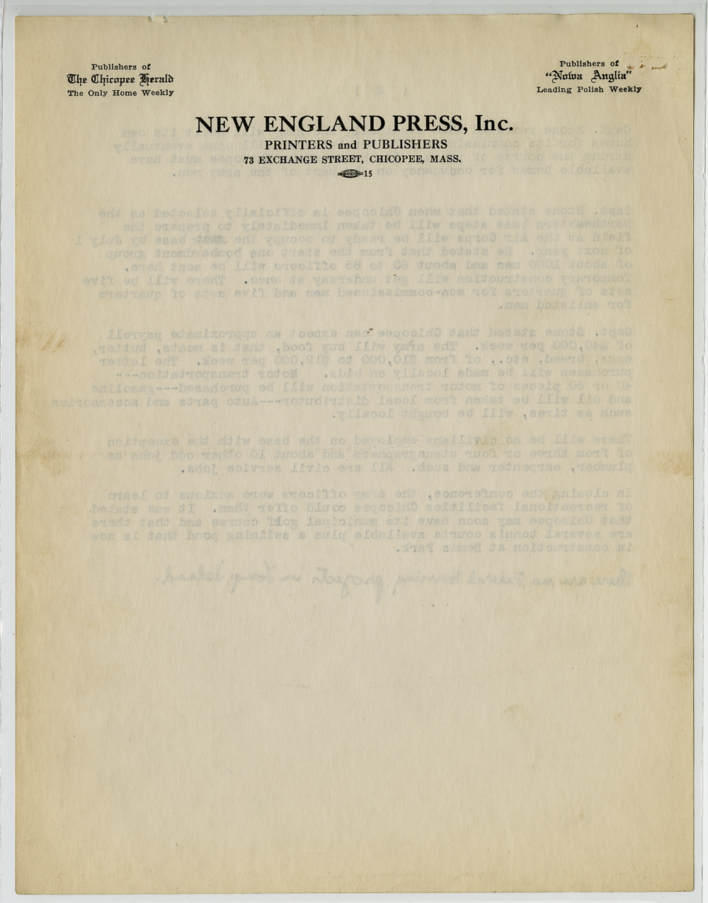 “Other Correspondence Concerning Westover Air Base,” Chicopee Archives Online, accessed March 5, 2026, https://www.chicopeepubliclibrary.org/archives/items/show/5690.
