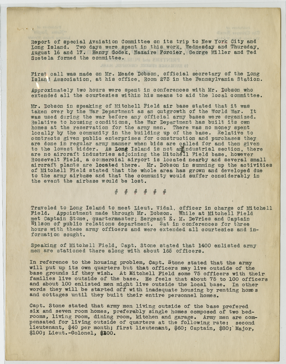 Stonina, Anthony J. (1898-1974); Westover Air Reserve Base; Northeastern Army Air Corps Base; Corps of Engineers, U.S. Army;