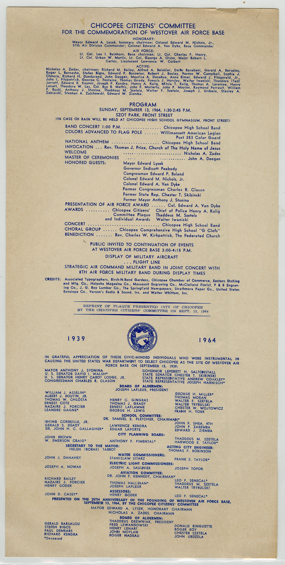 “Miscellaneous Materials Related to Westover Air Base,” Chicopee Archives Online, accessed March 5, 2026, https://www.chicopeepubliclibrary.org/archives/items/show/5707.