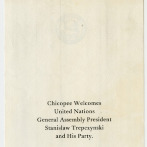 Materials Related to the Visit of the UN General Assembly President Stanislaw Trepczynski to Chicopee, MA