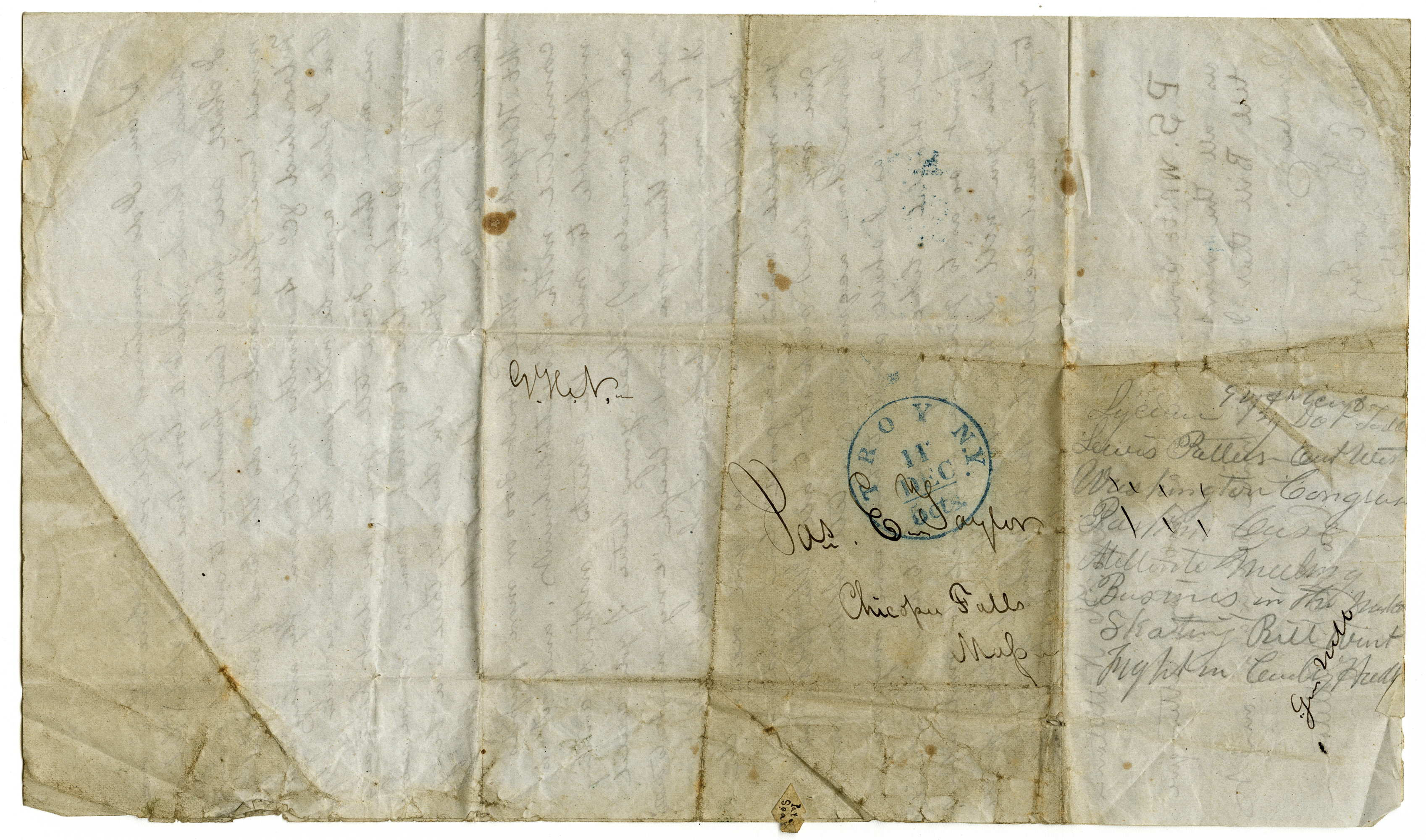 “Letter to friend Jas from Troy, New york,” Chicopee Archives Online, accessed March 7, 2026, https://www.chicopeepubliclibrary.org/archives/items/show/8606.