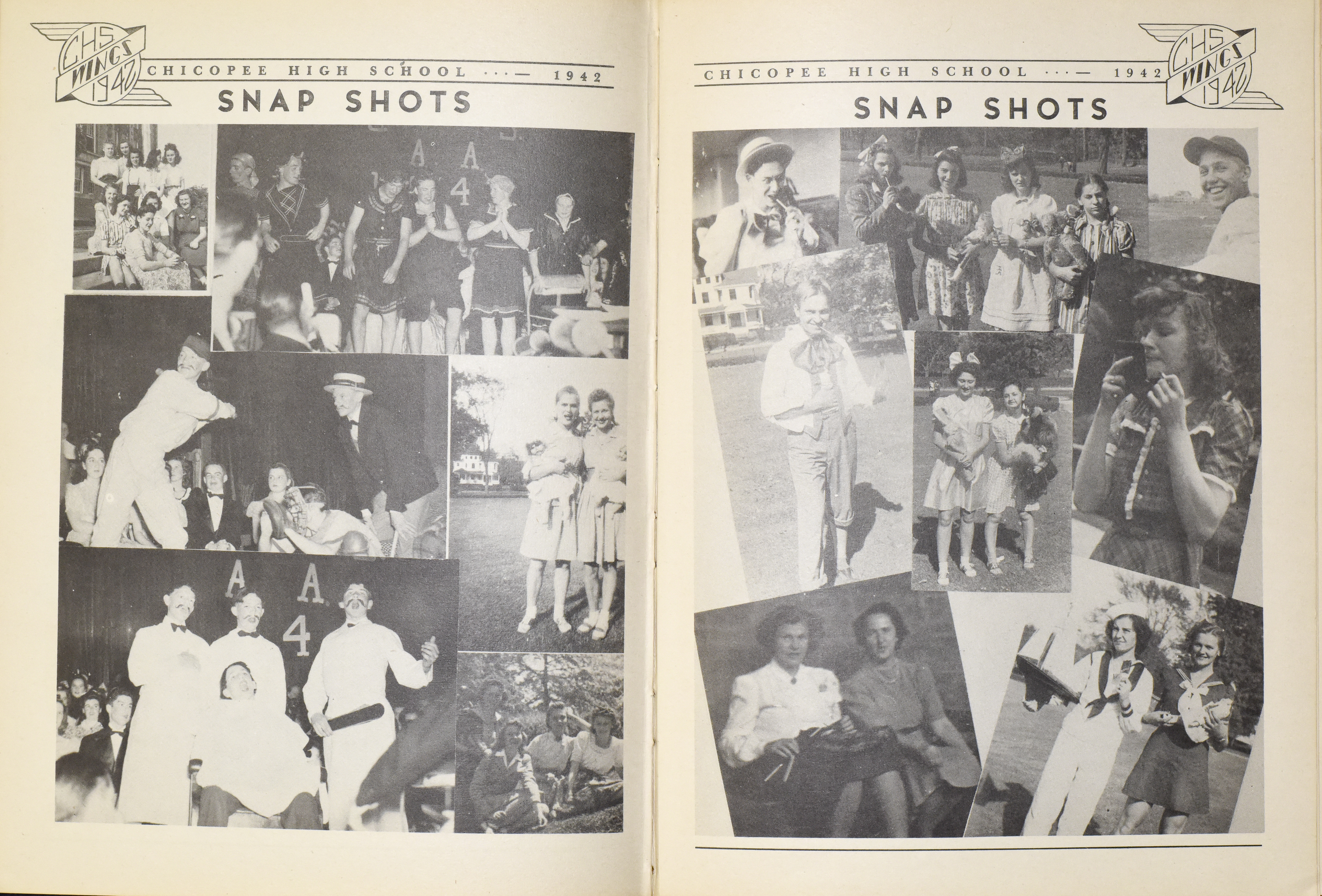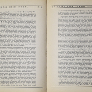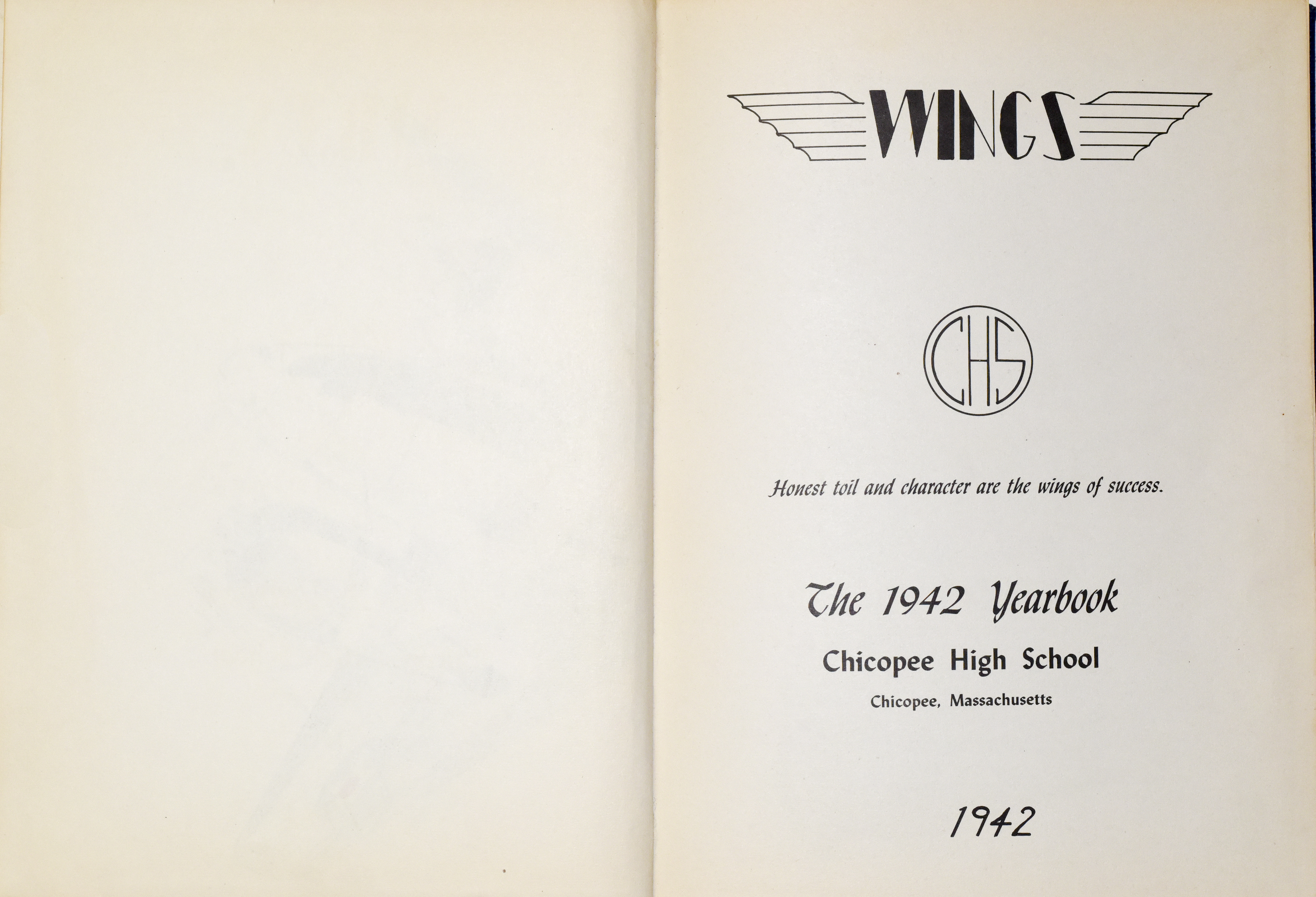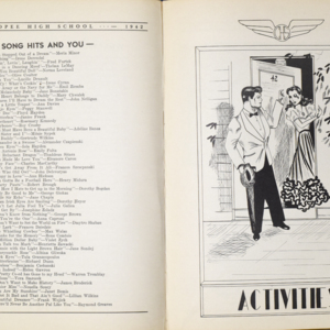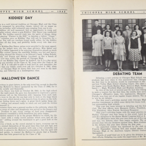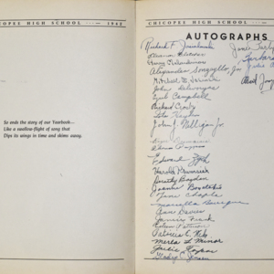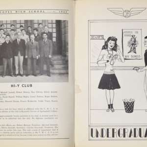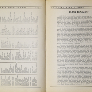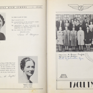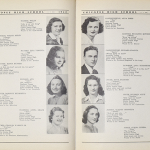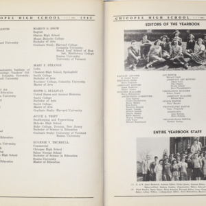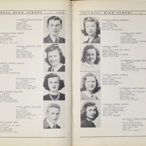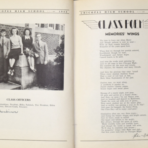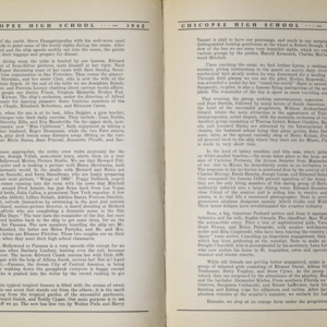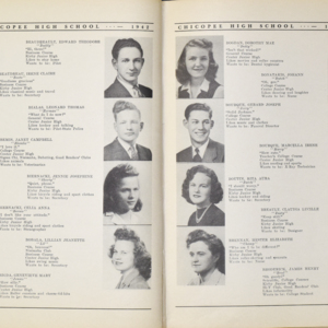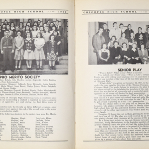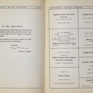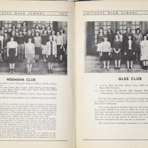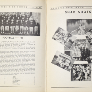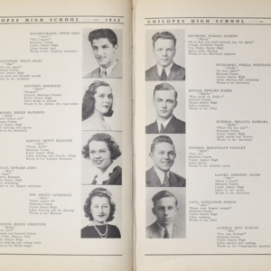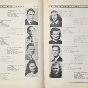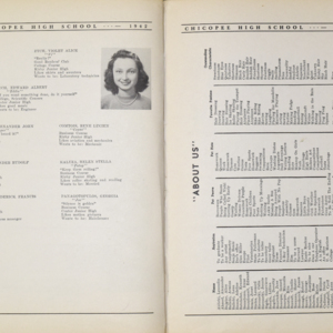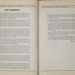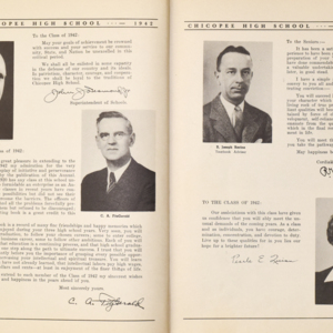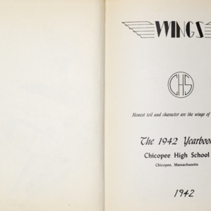 Yearbook for the class of 1942 of the Chicopee High School. Includes class photographs; individual senior portraits; clubs; sports; faculty; class will; casual photographs of students; dedications and sponser ads.