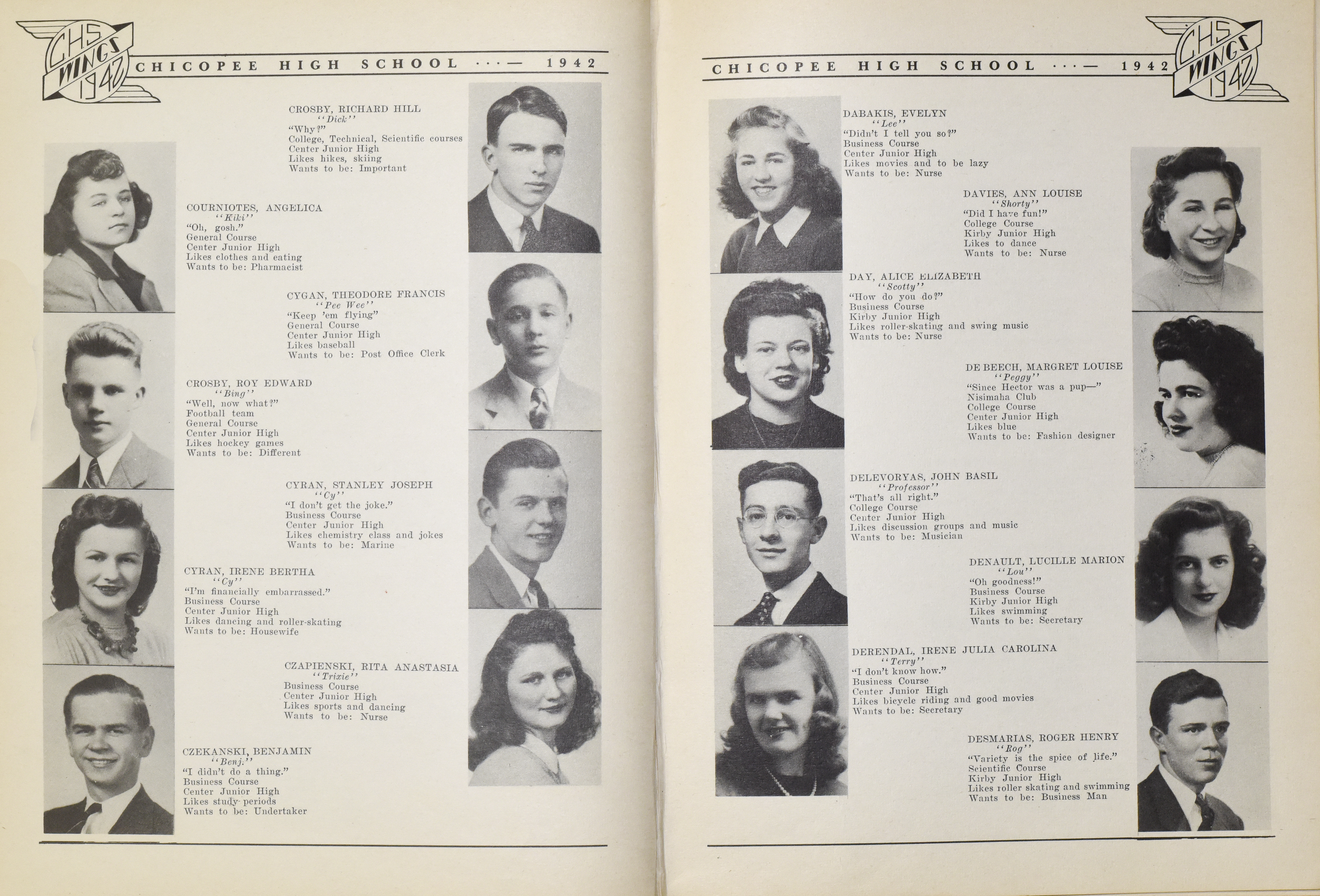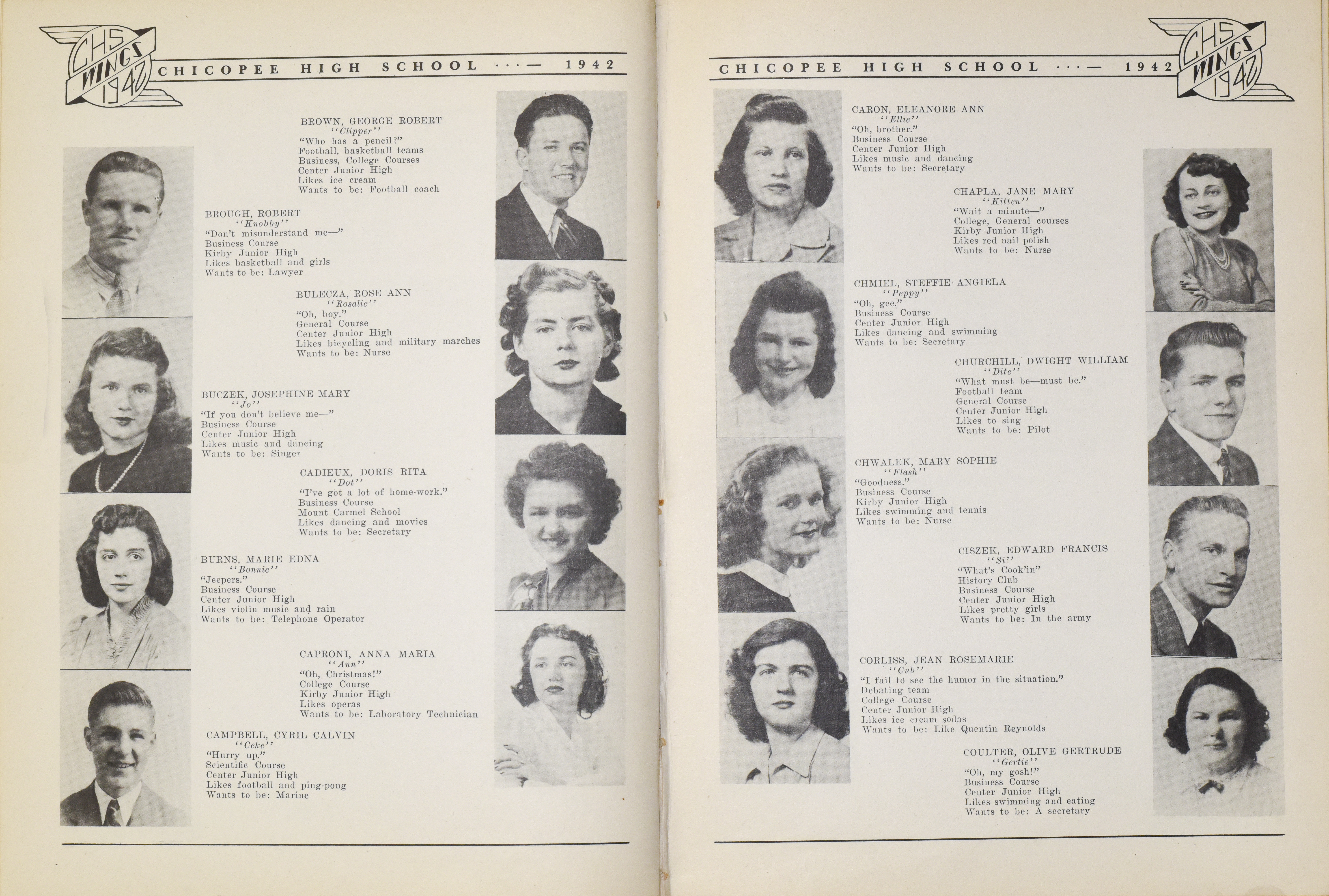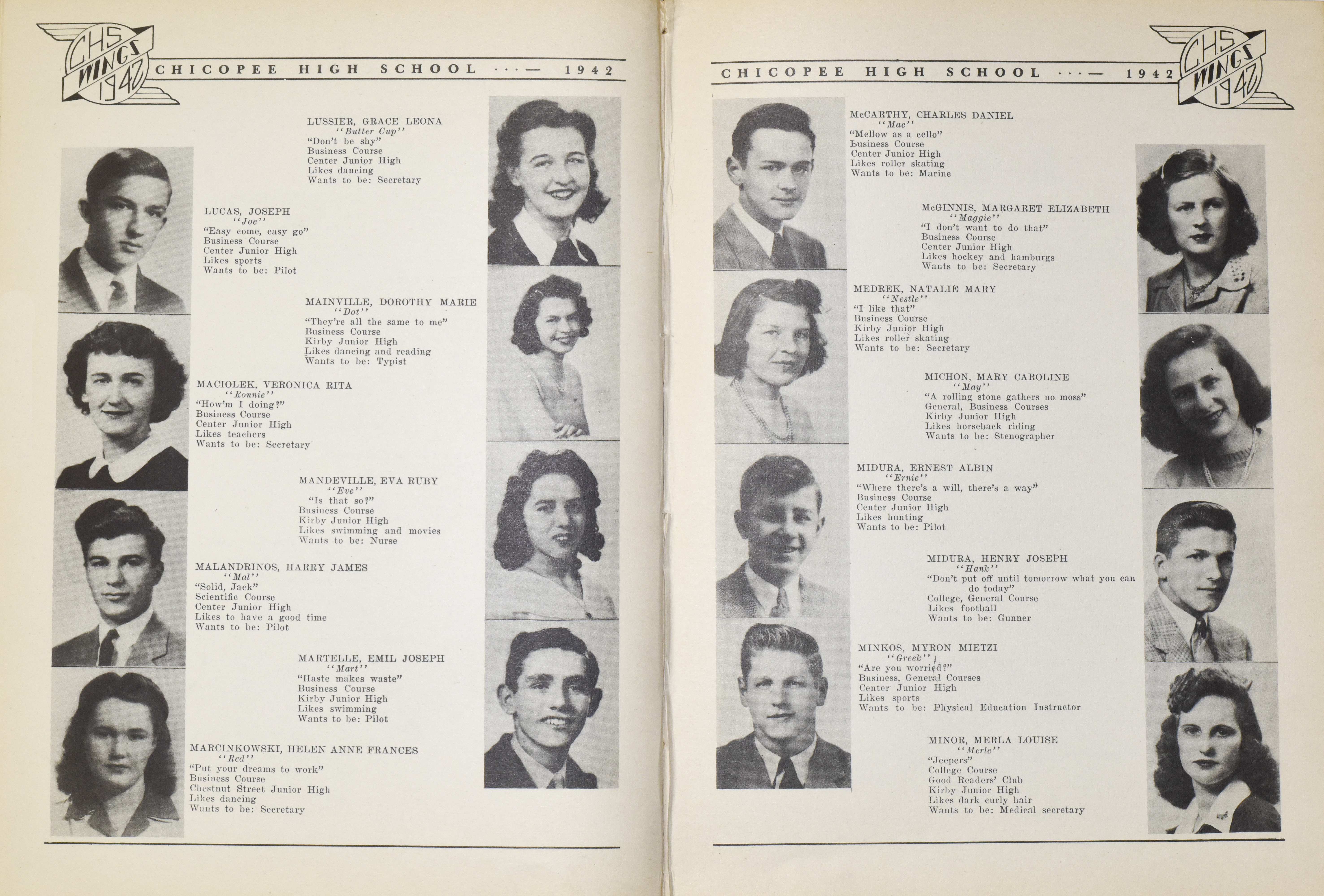 “Chicopee High School Yearbook 1942,” Chicopee Archives Online, accessed March 6, 2026, https://www.chicopeepubliclibrary.org/archives/items/show/8670.