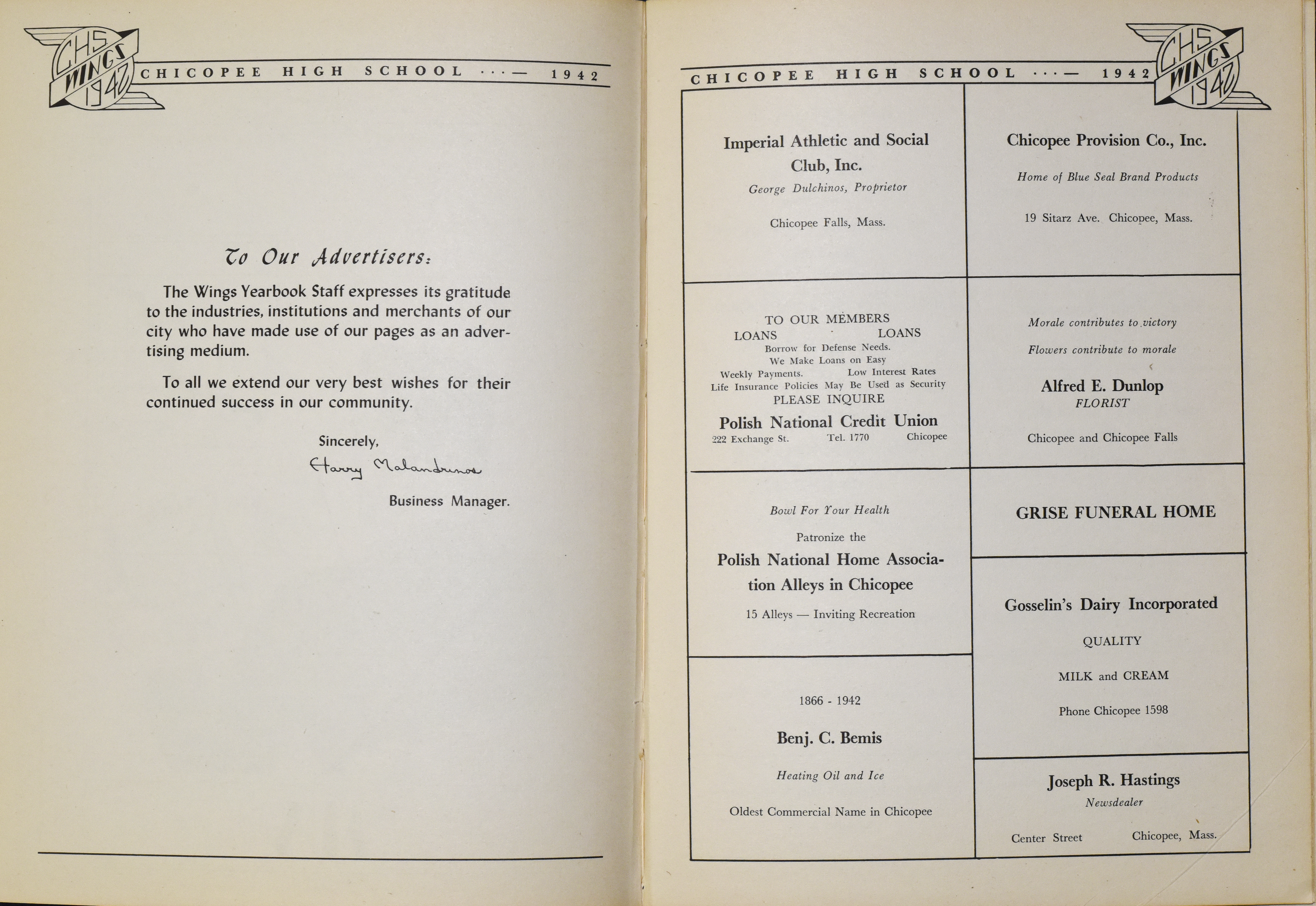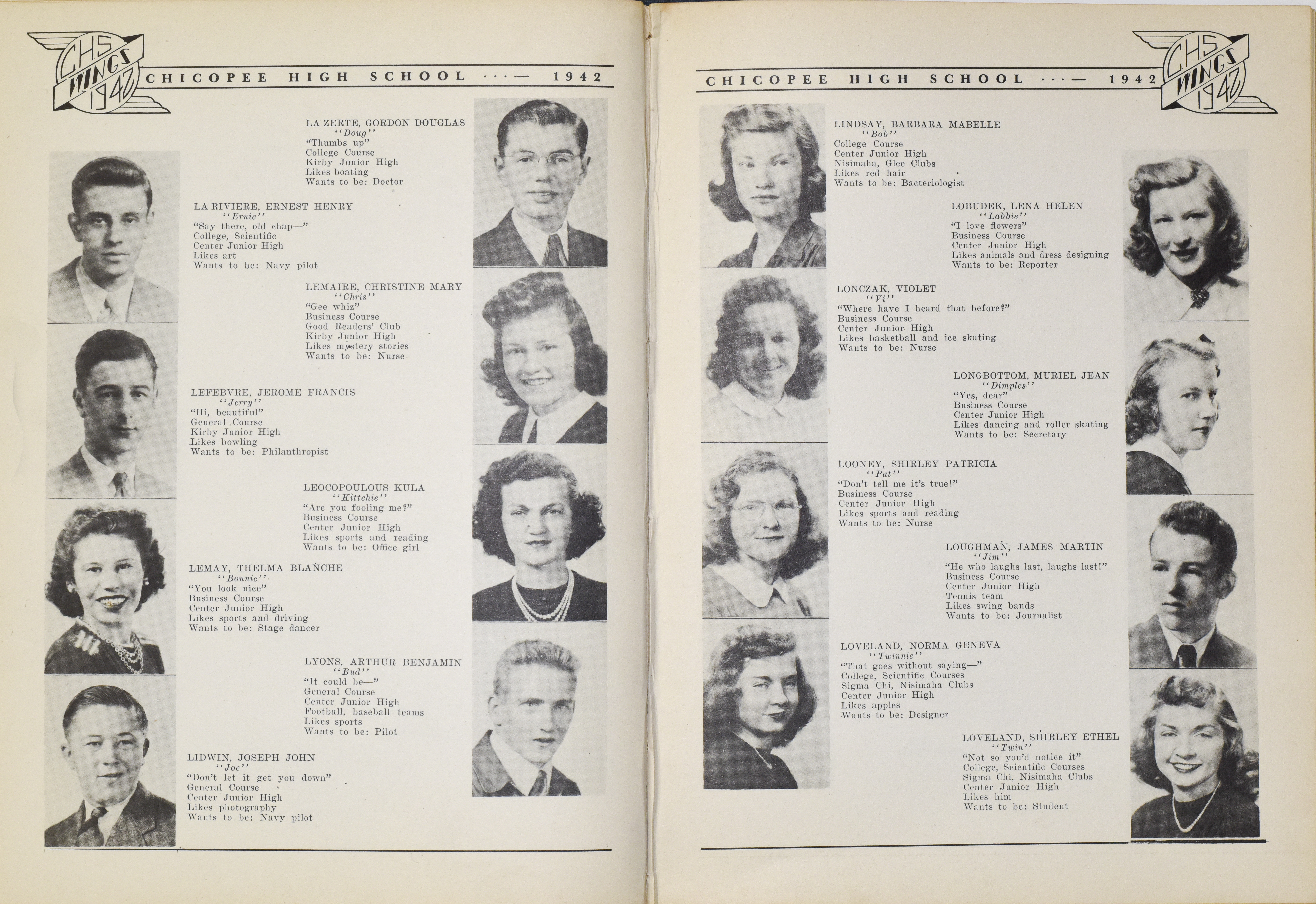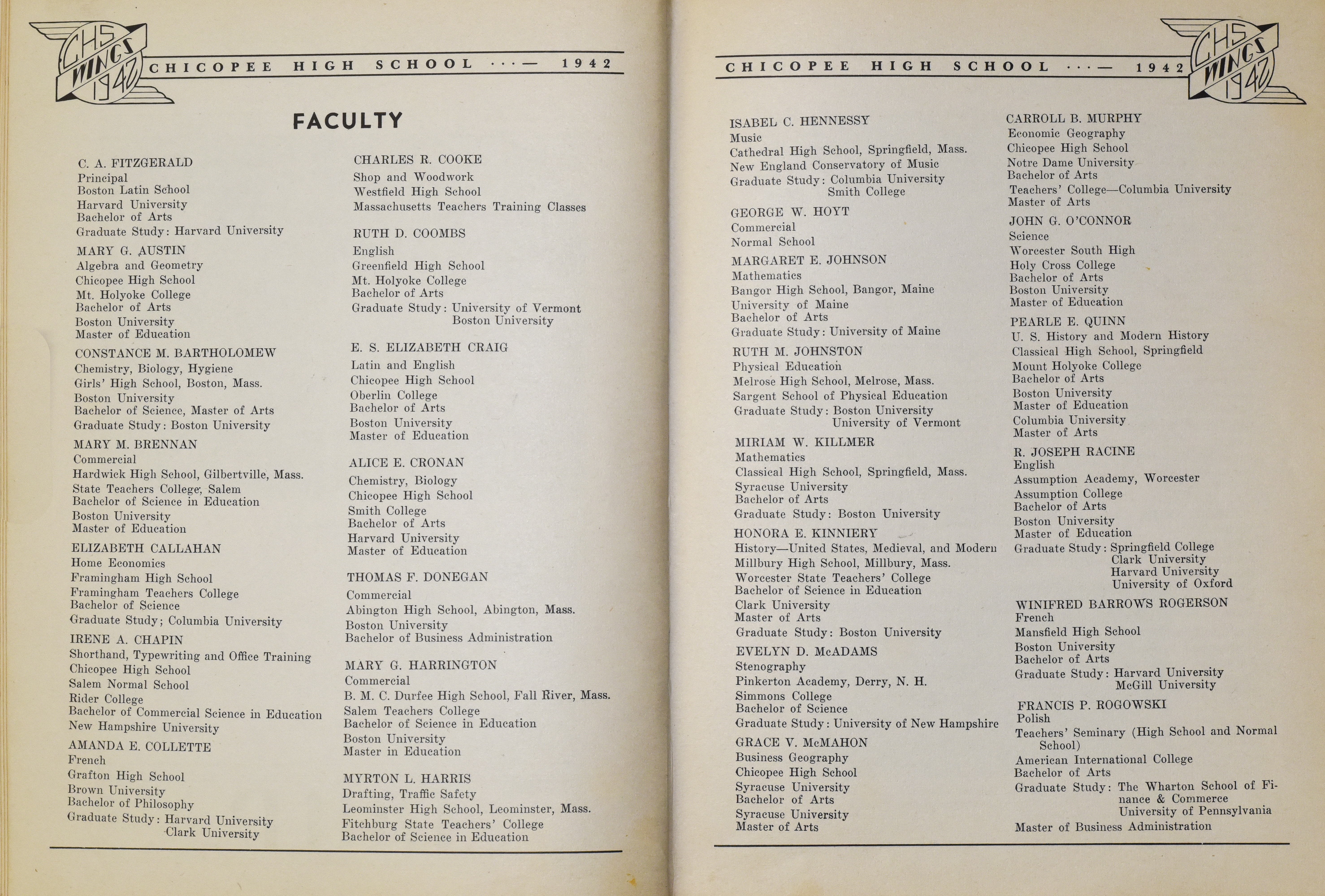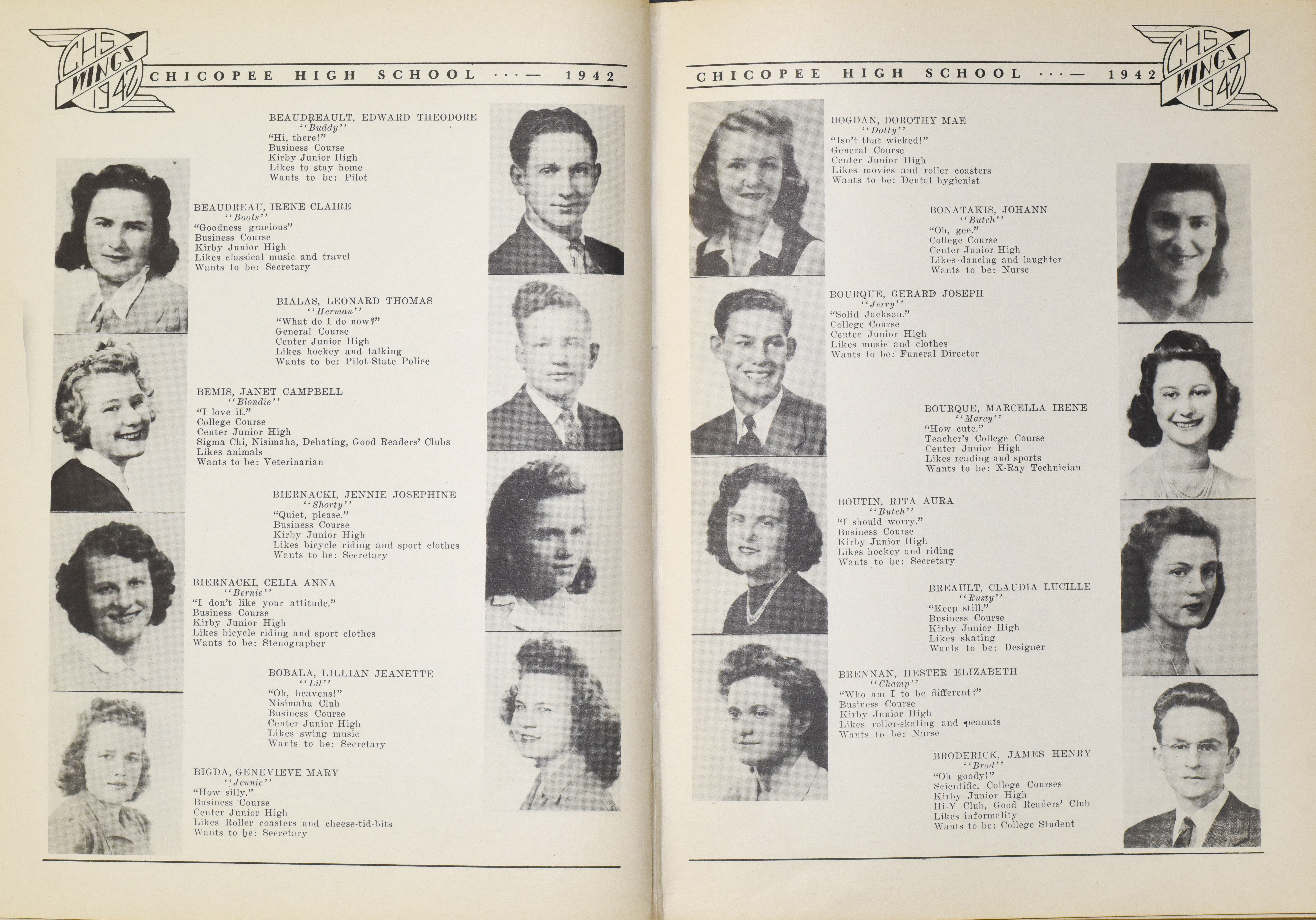 “Chicopee High School Yearbook 1942,” Chicopee Archives Online, accessed March 6, 2026, https://www.chicopeepubliclibrary.org/archives/items/show/8670.