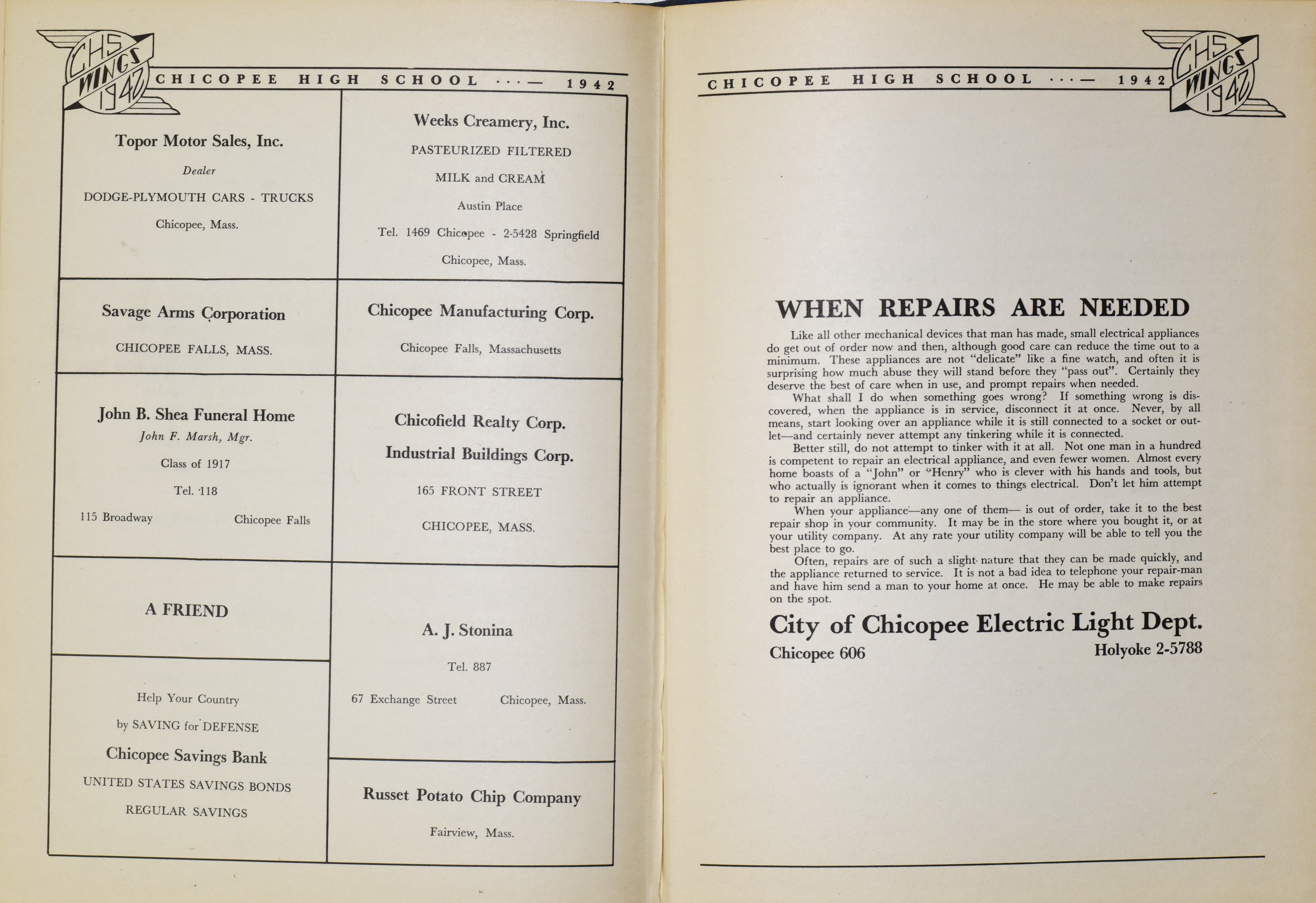 Chicopee High School Yearbook 1942