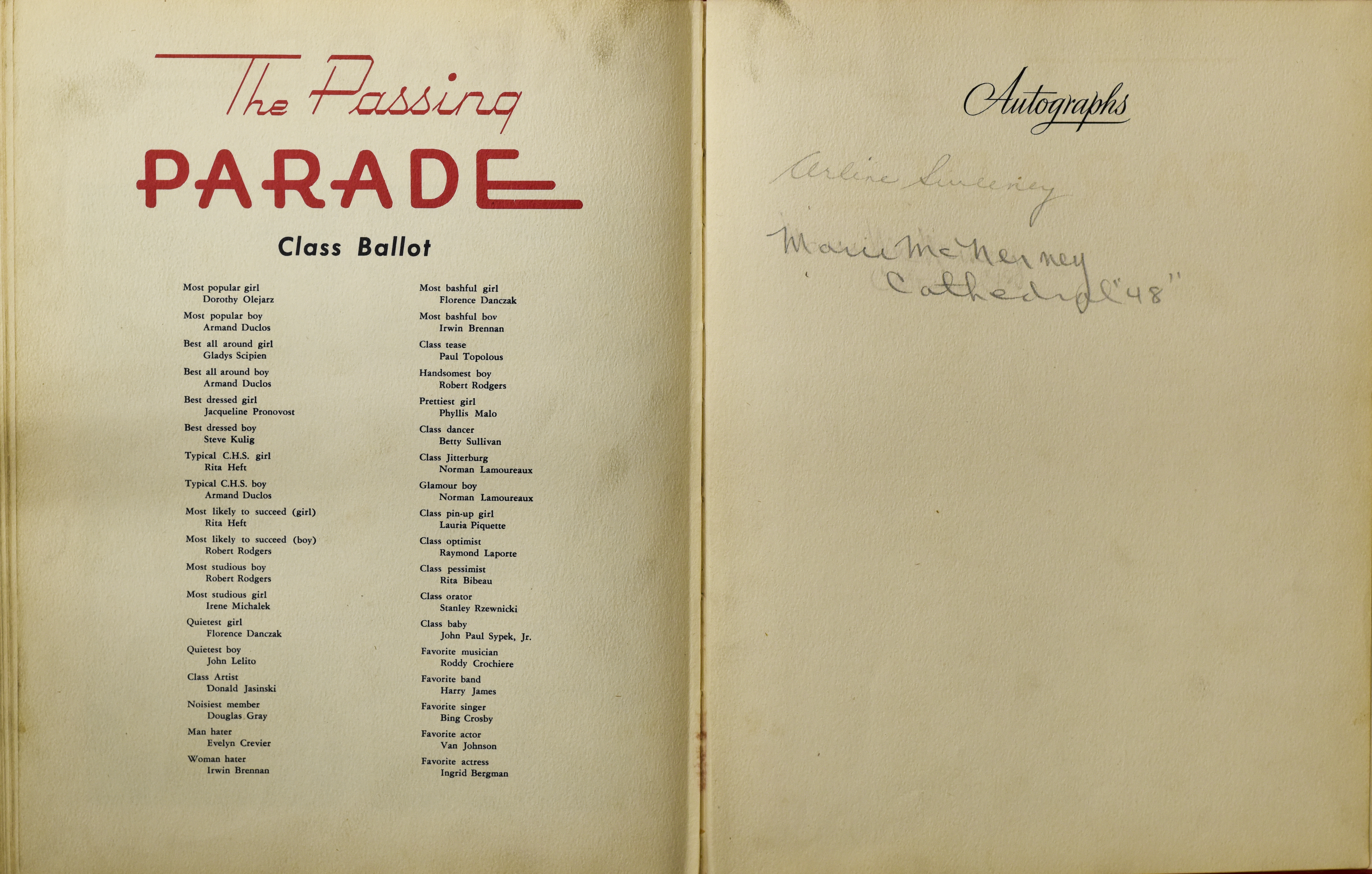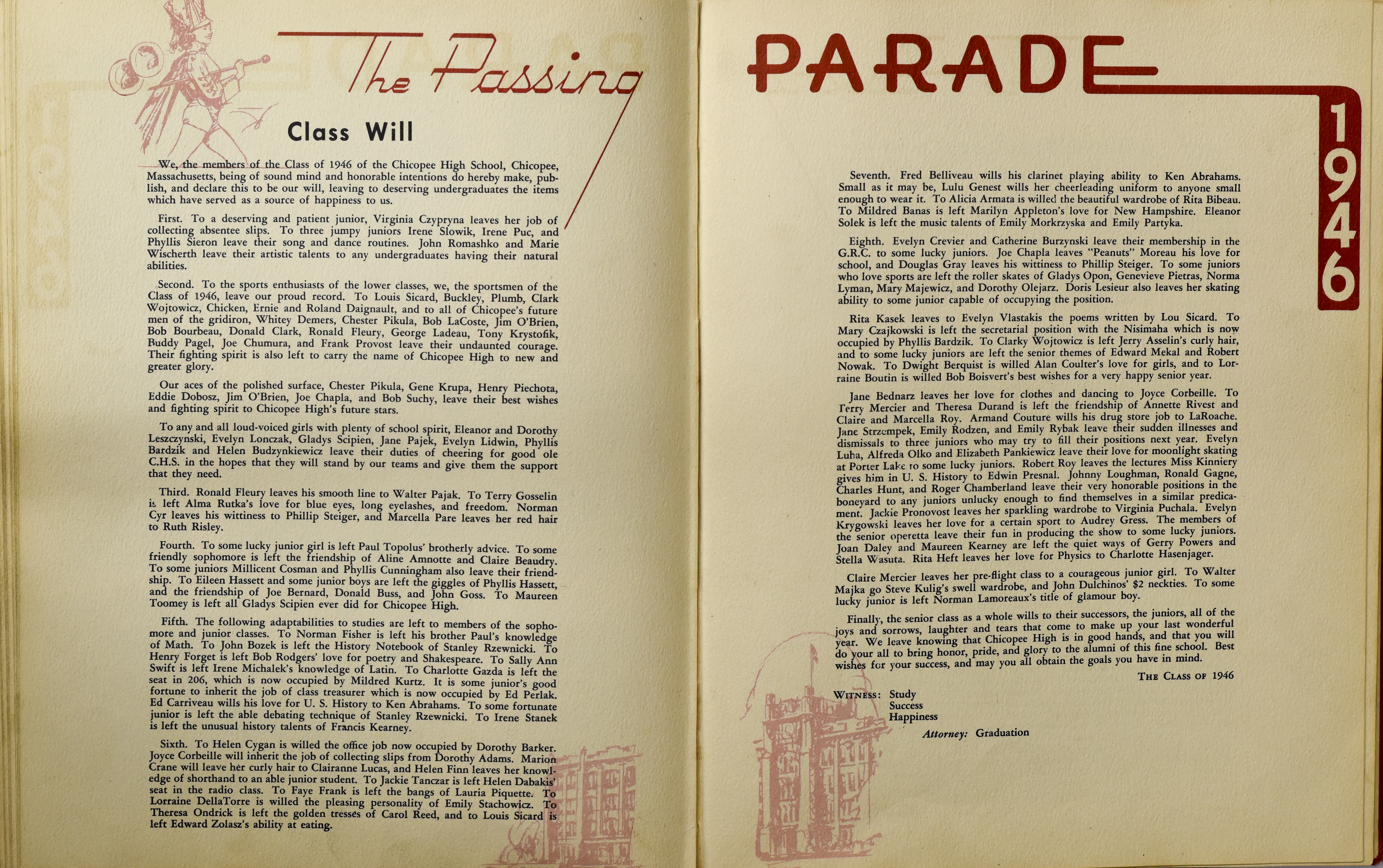 “Chicopee High School Yearbook 1946,” Chicopee Archives Online, accessed March 5, 2026, https://www.chicopeepubliclibrary.org/archives/items/show/8674.