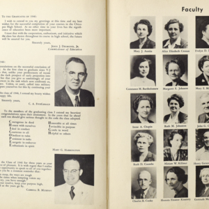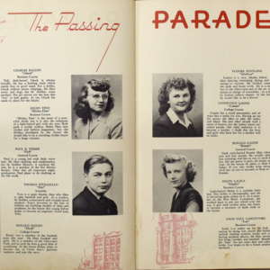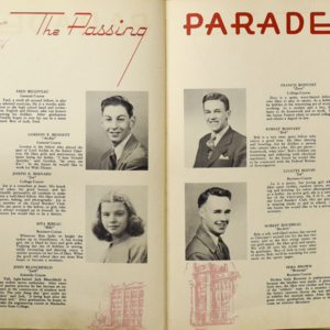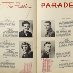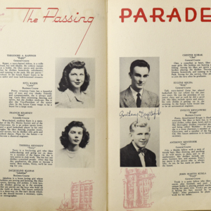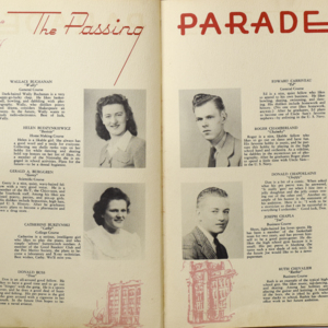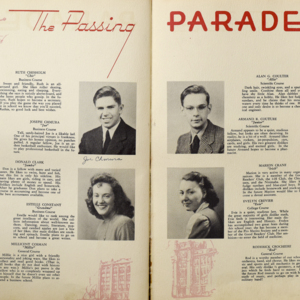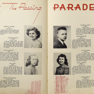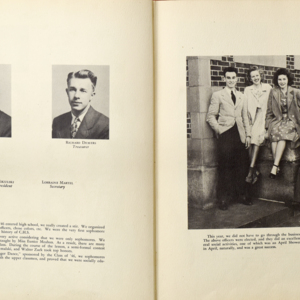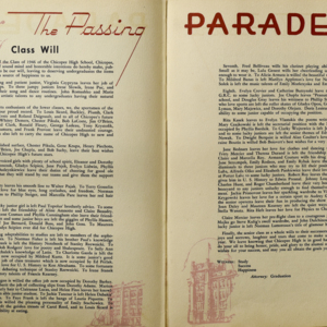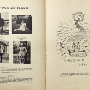 Yearbook for the class of 1946 of the Chicopee High School. Includes class photographs; individual senior portraits; clubs; sports; faculty; class will; casual photographs of students; dedications and sponser ads.