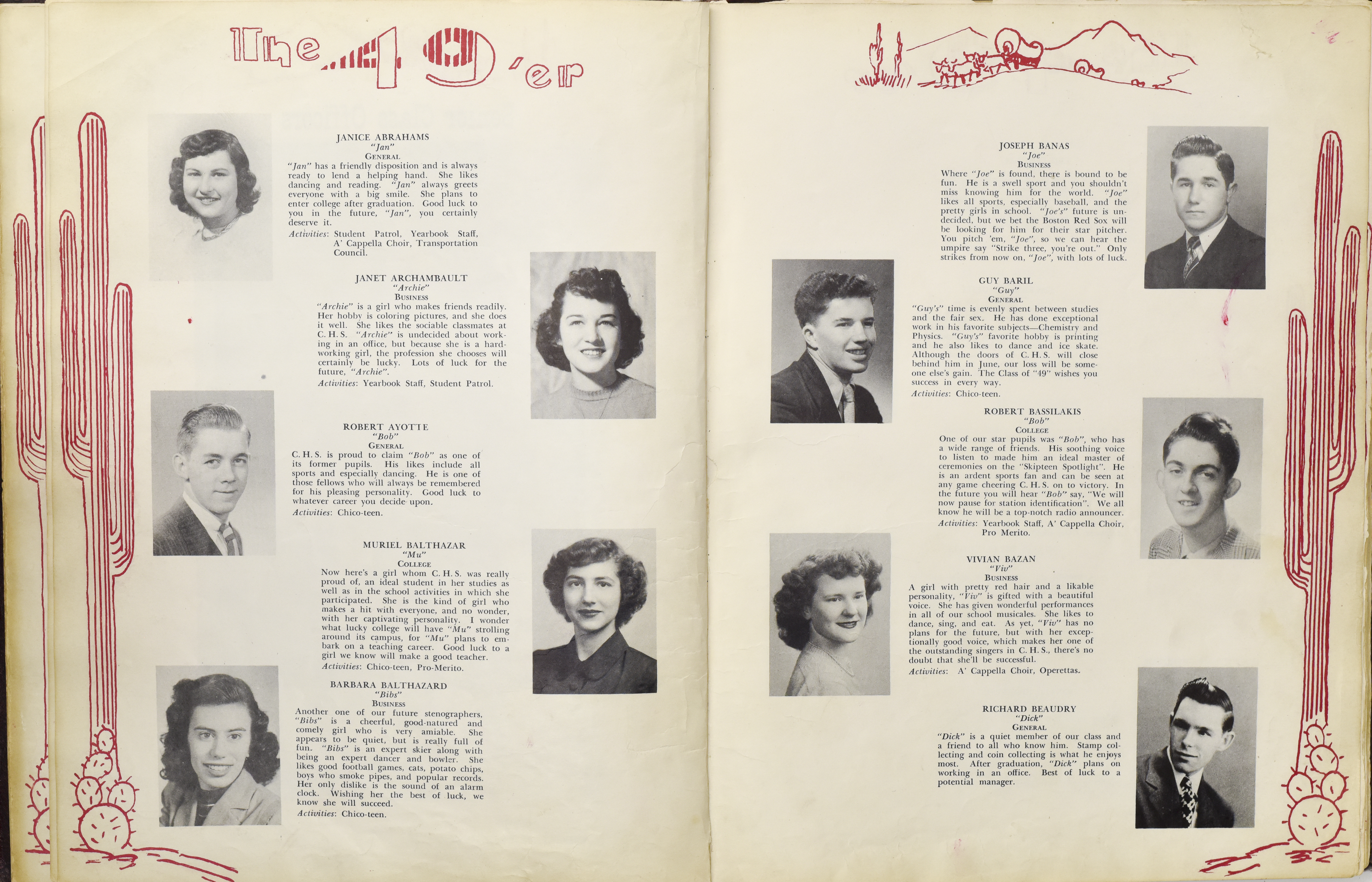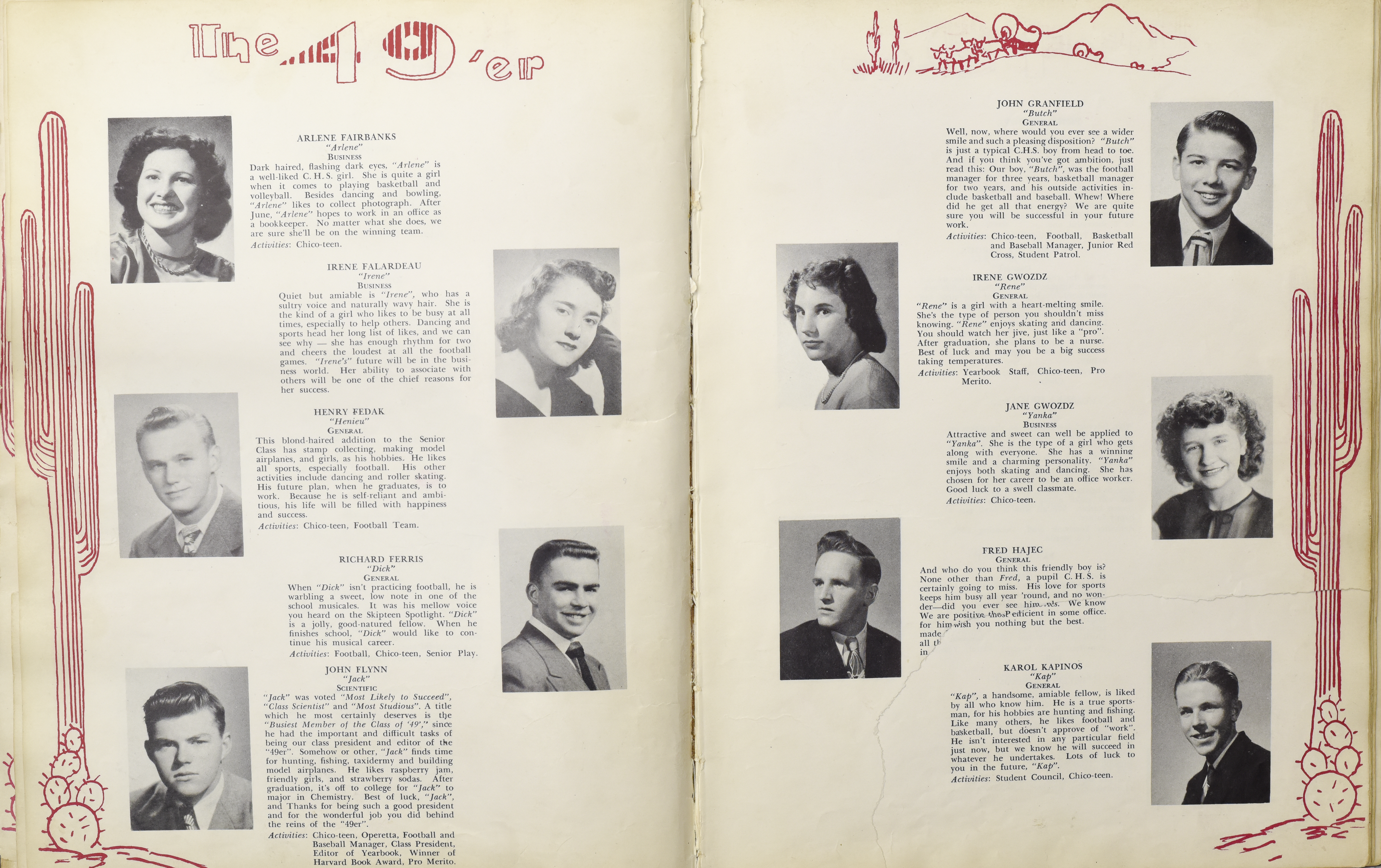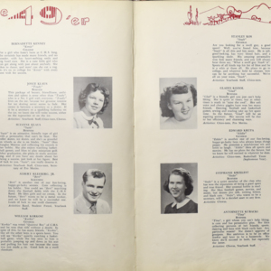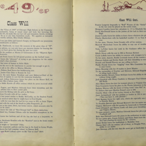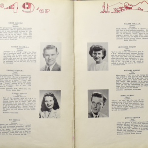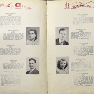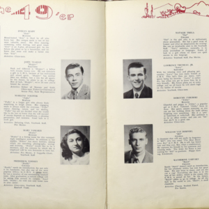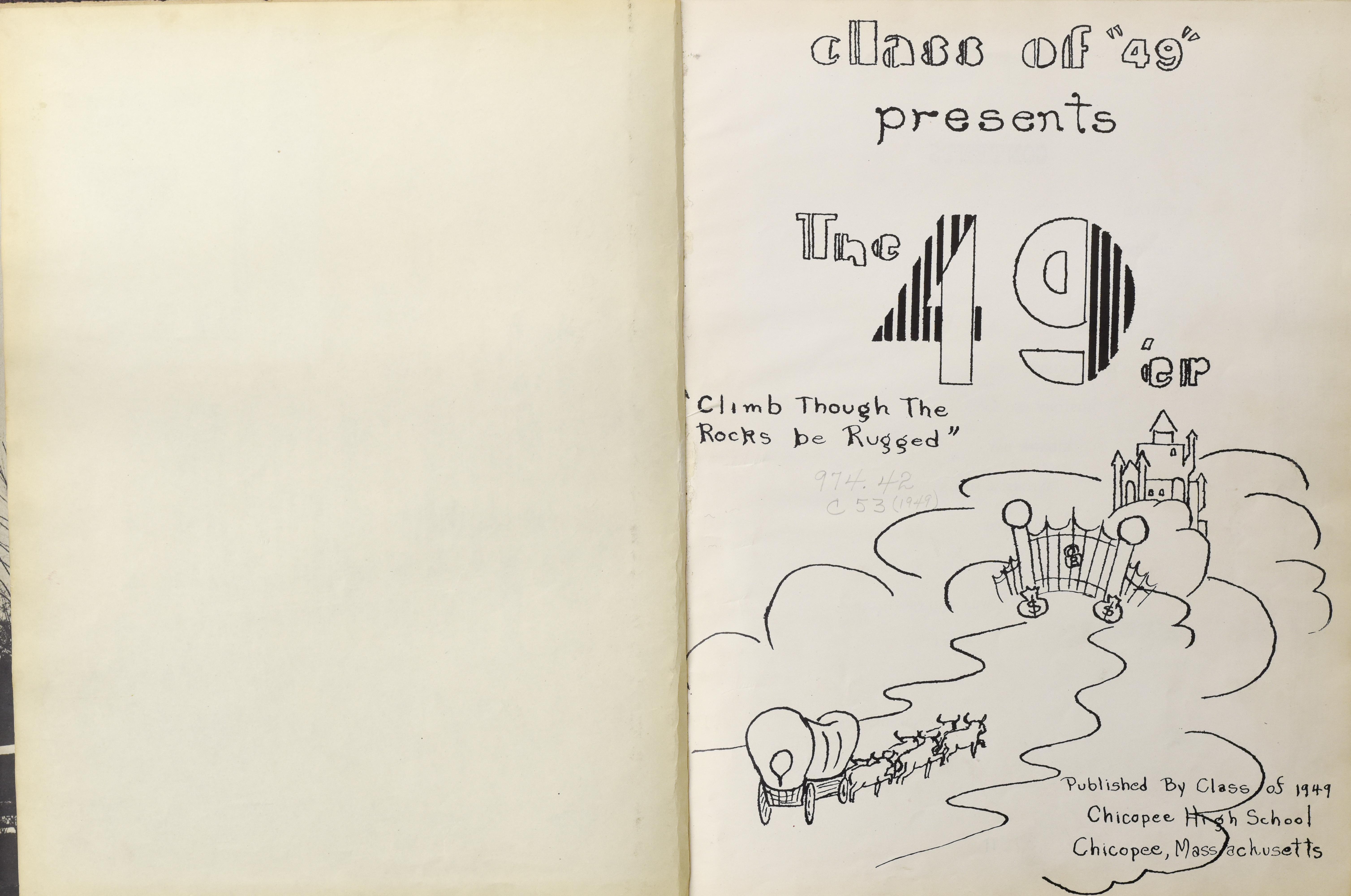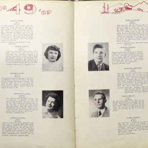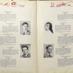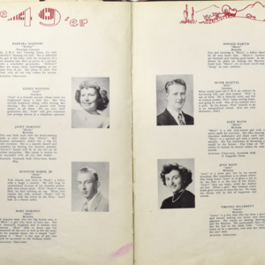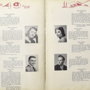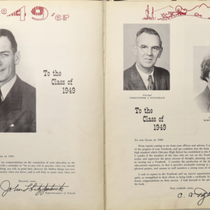 Yearbook for the class of 1949 of the Chicopee High School. Includes class photographs; individual senior portraits; clubs; sports; faculty; class will; casual photographs of students; dedications and sponser ads.