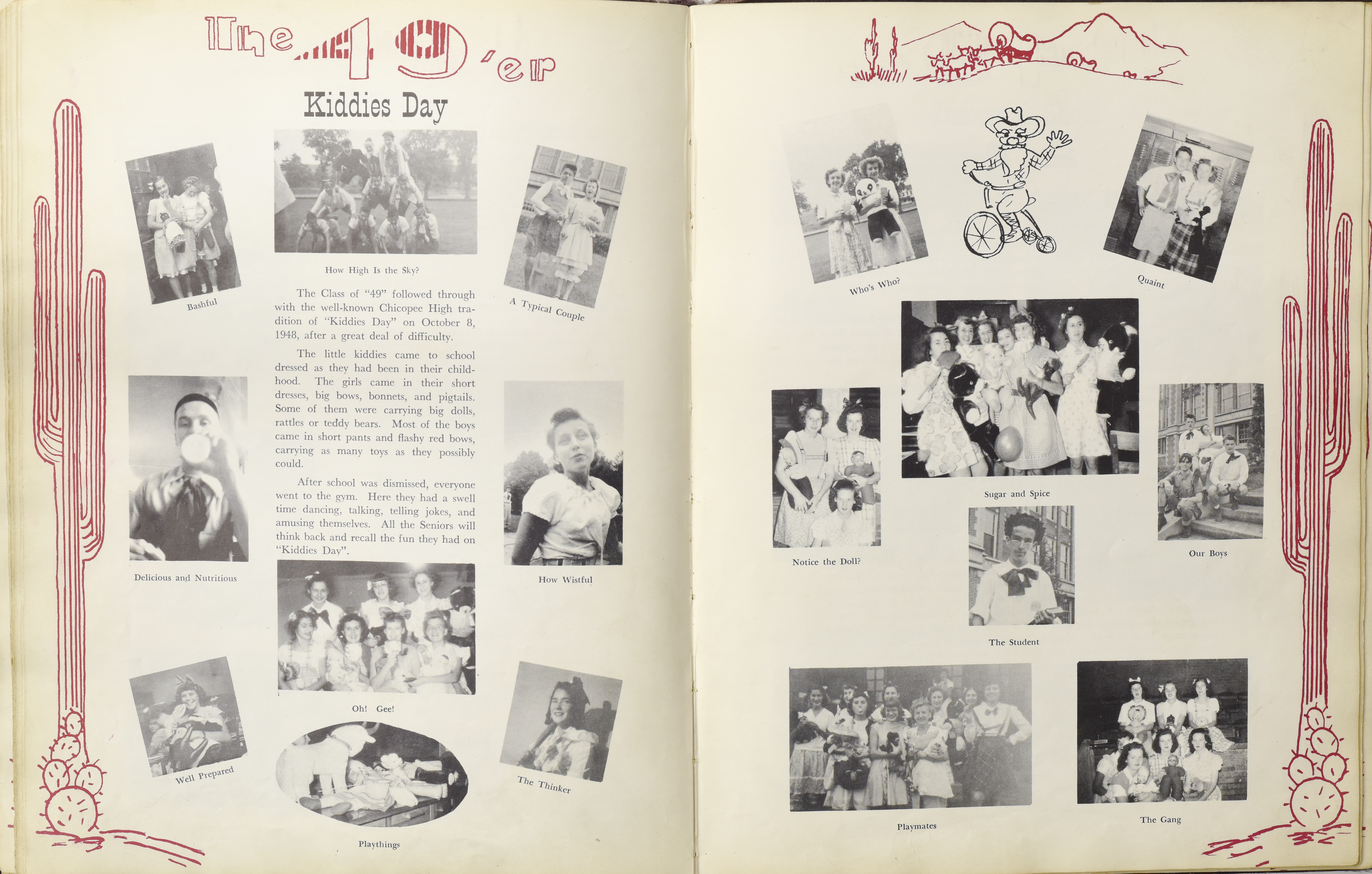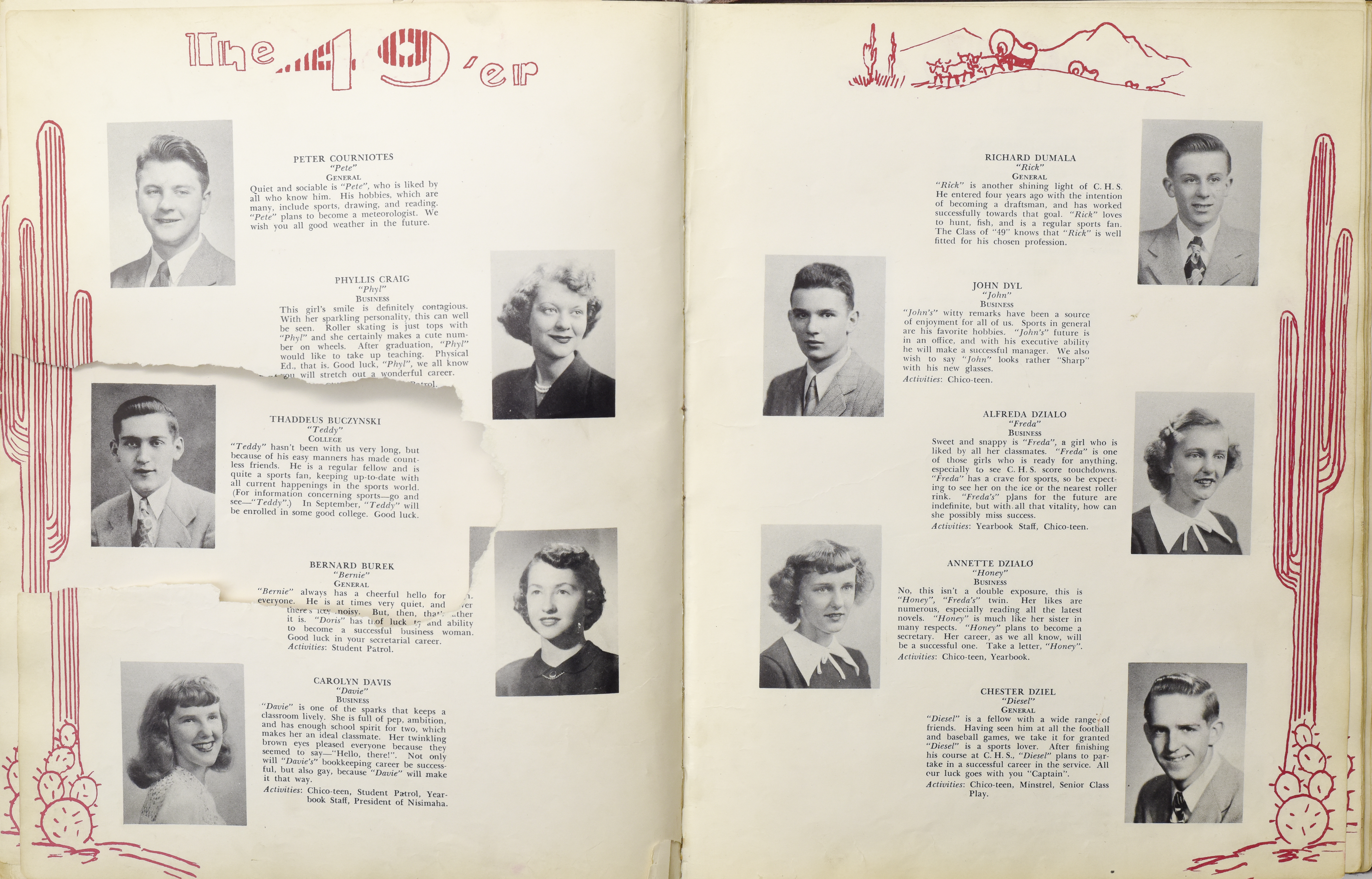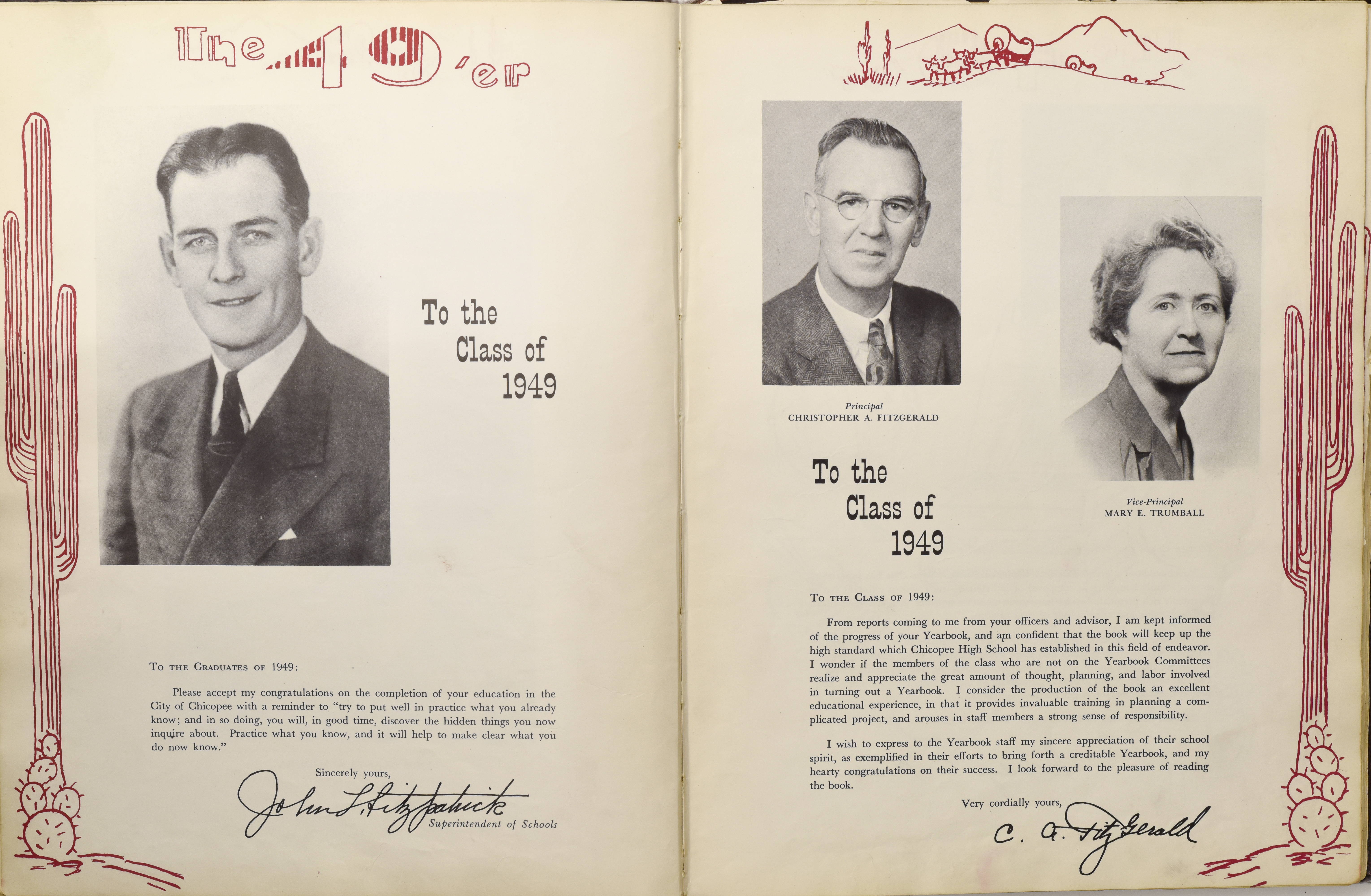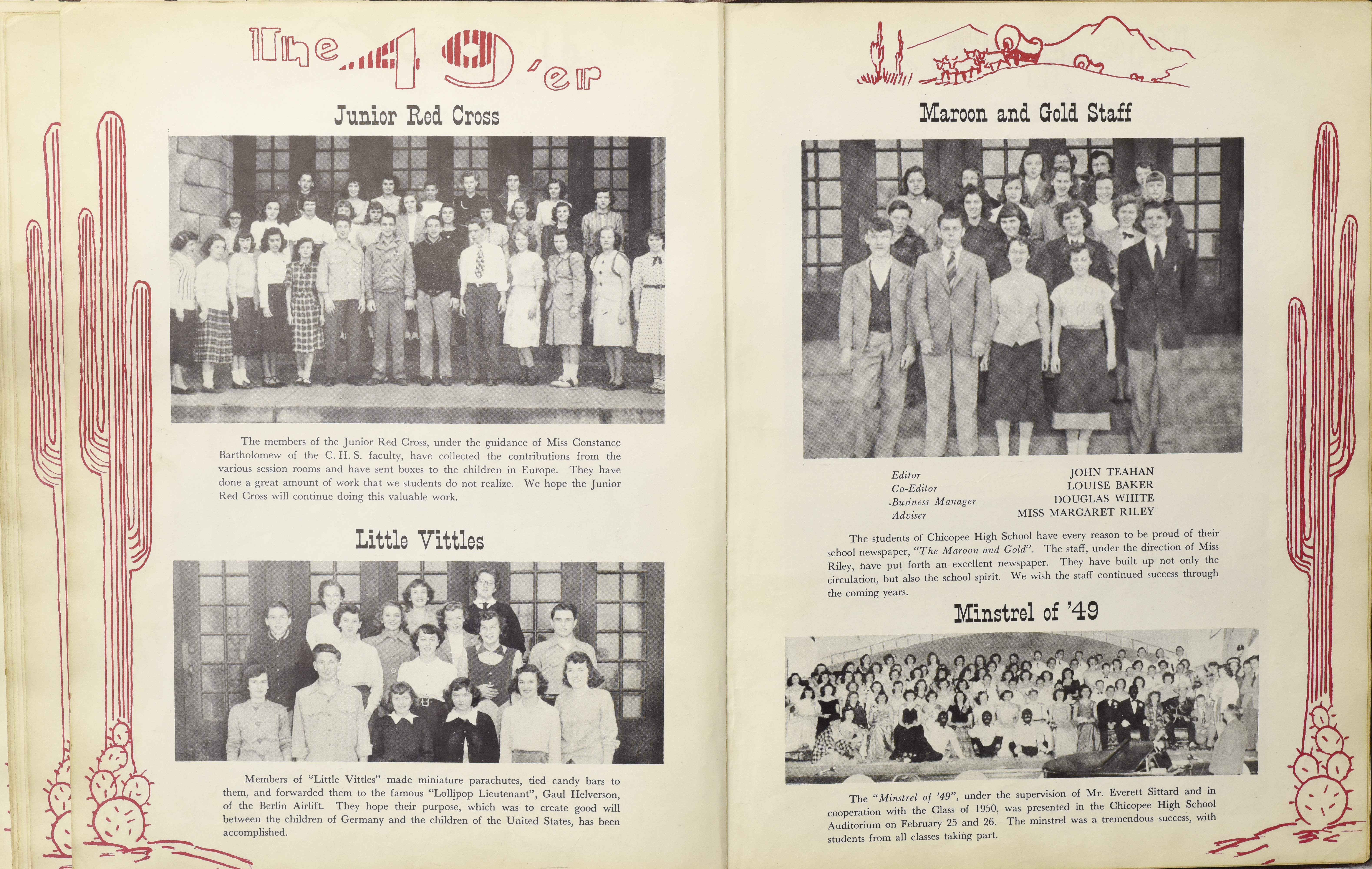 Yearbook for the class of 1949 of the Chicopee High School. Includes class photographs; individual senior portraits; clubs; sports; faculty; class will; casual photographs of students; dedications and sponser ads.