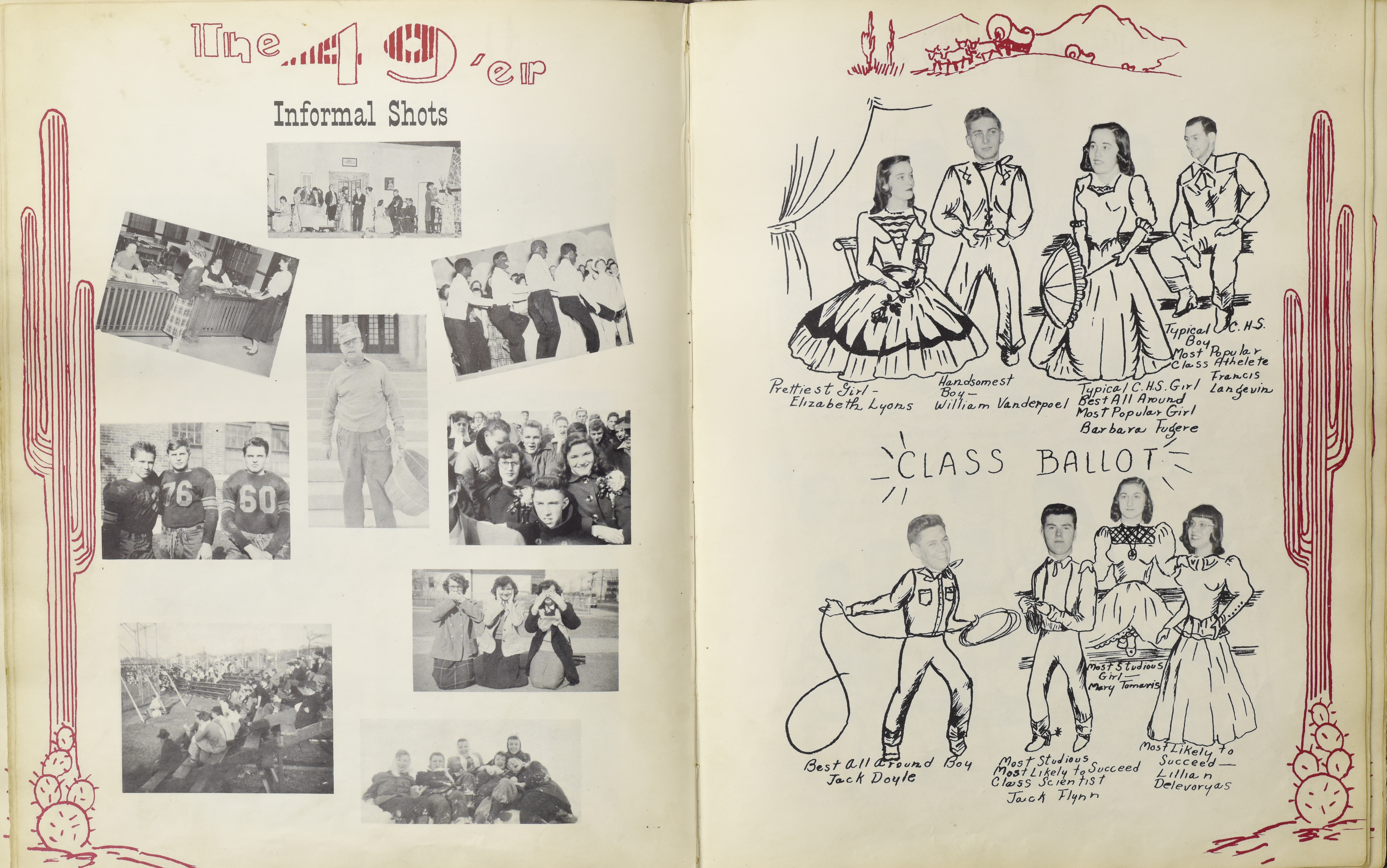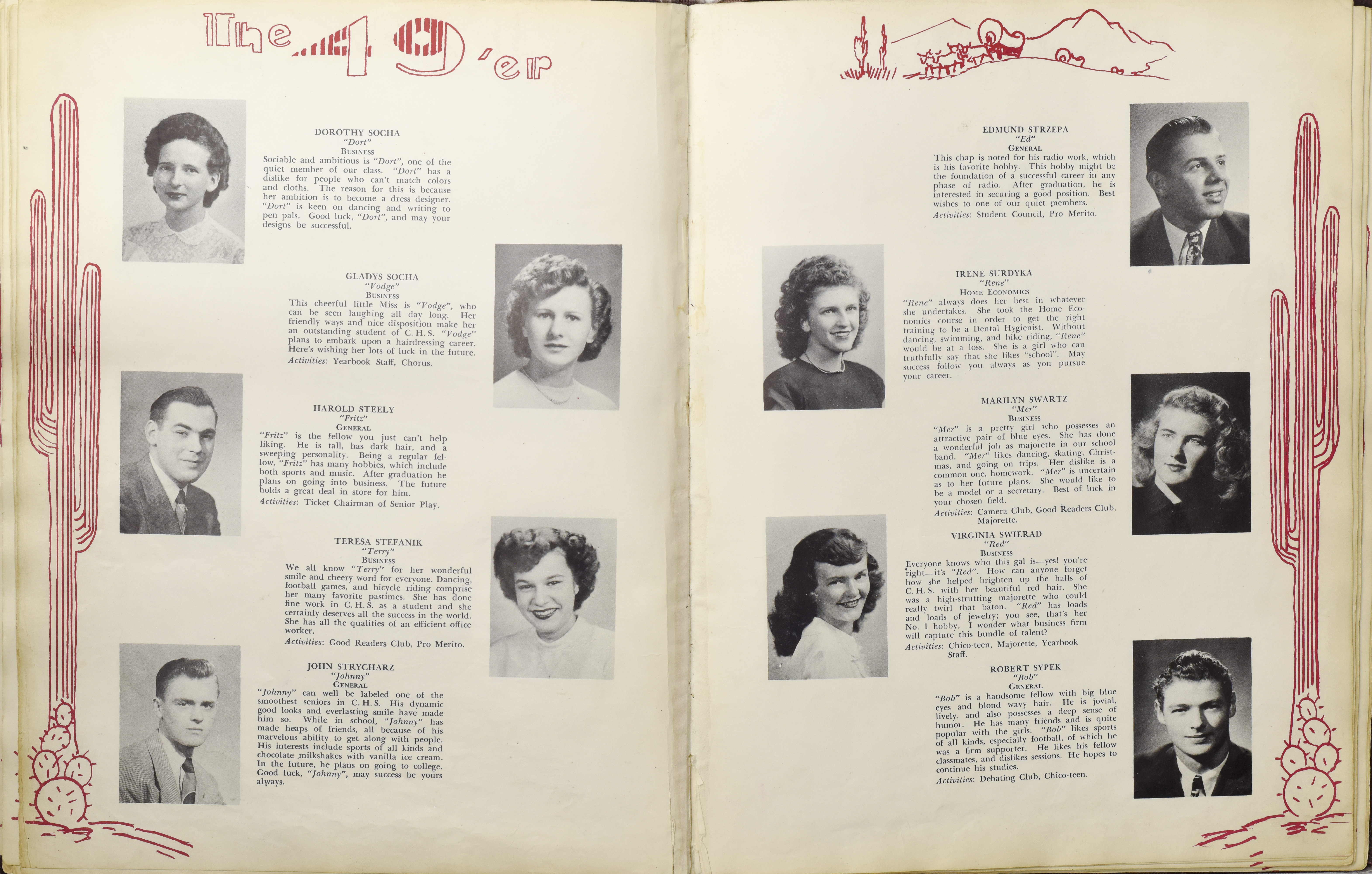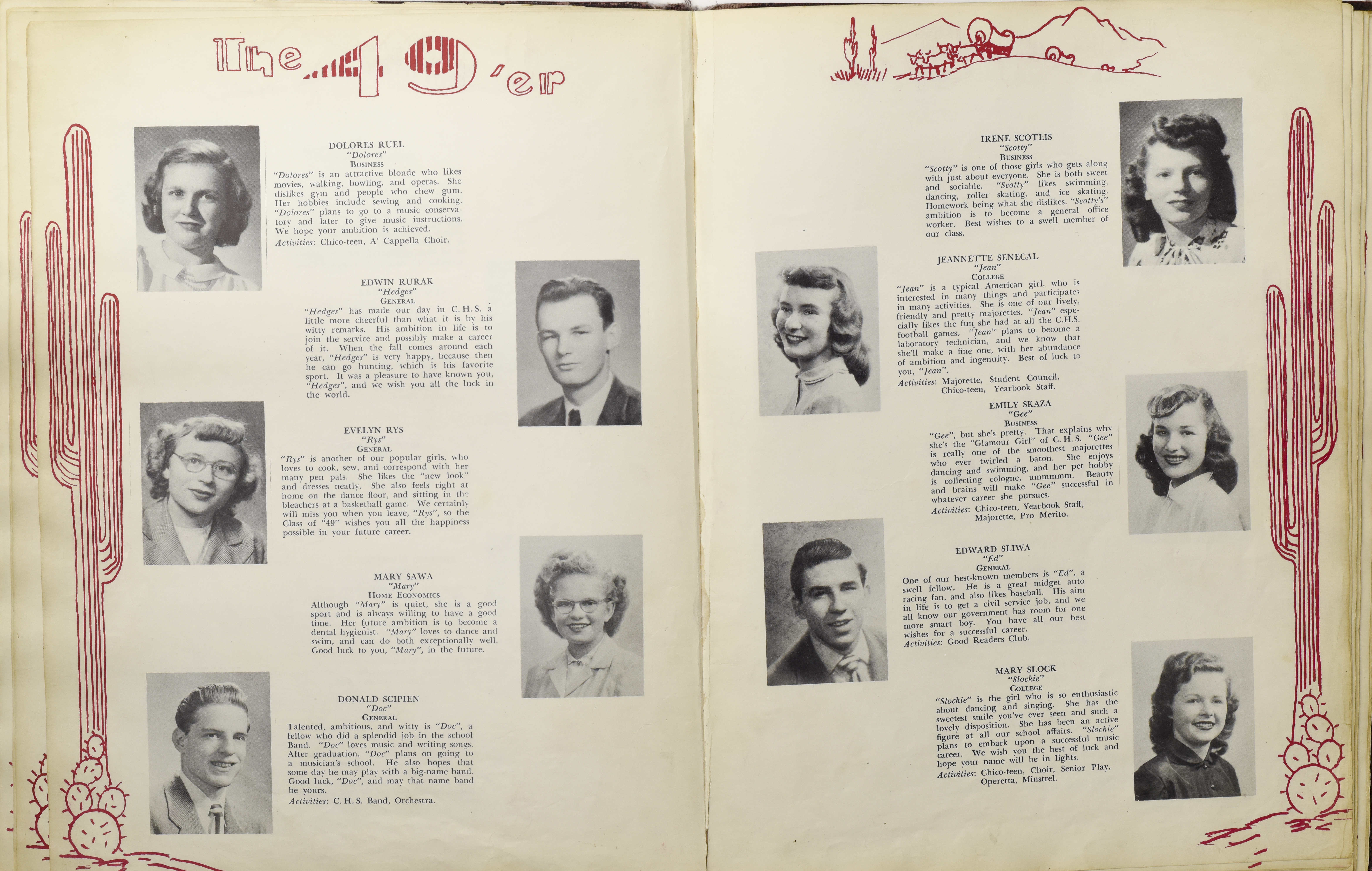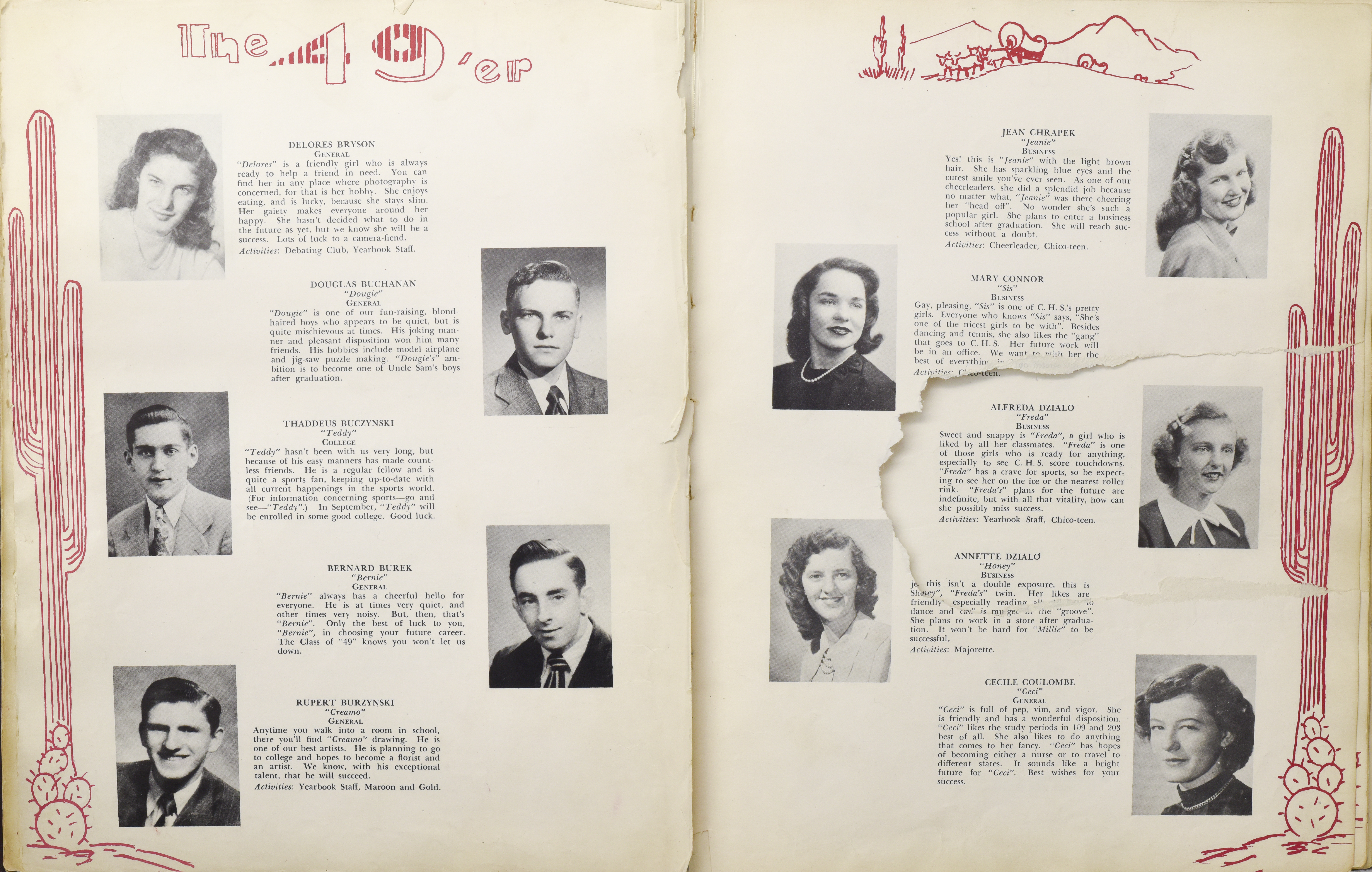 Yearbook for the class of 1949 of the Chicopee High School. Includes class photographs; individual senior portraits; clubs; sports; faculty; class will; casual photographs of students; dedications and sponser ads.