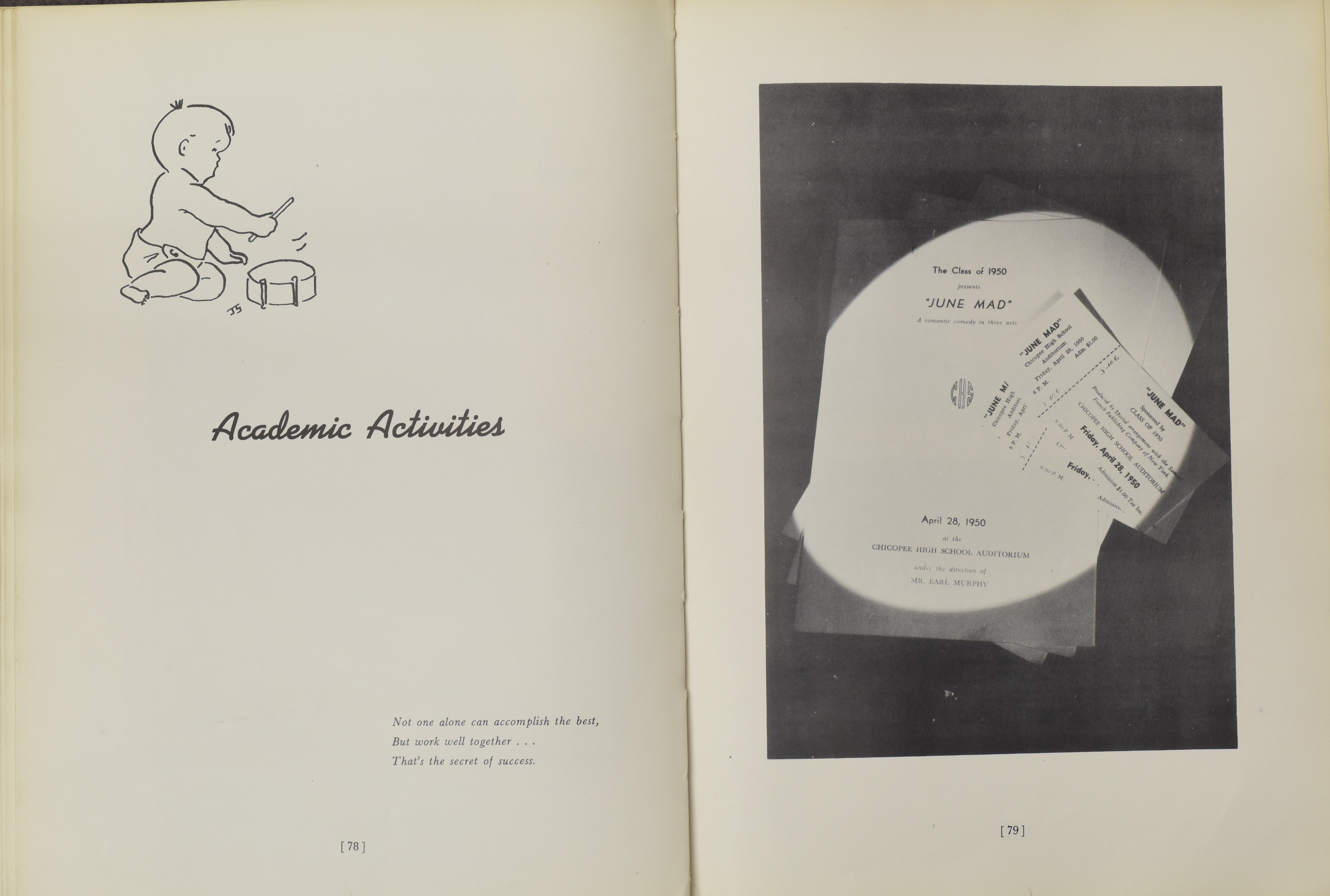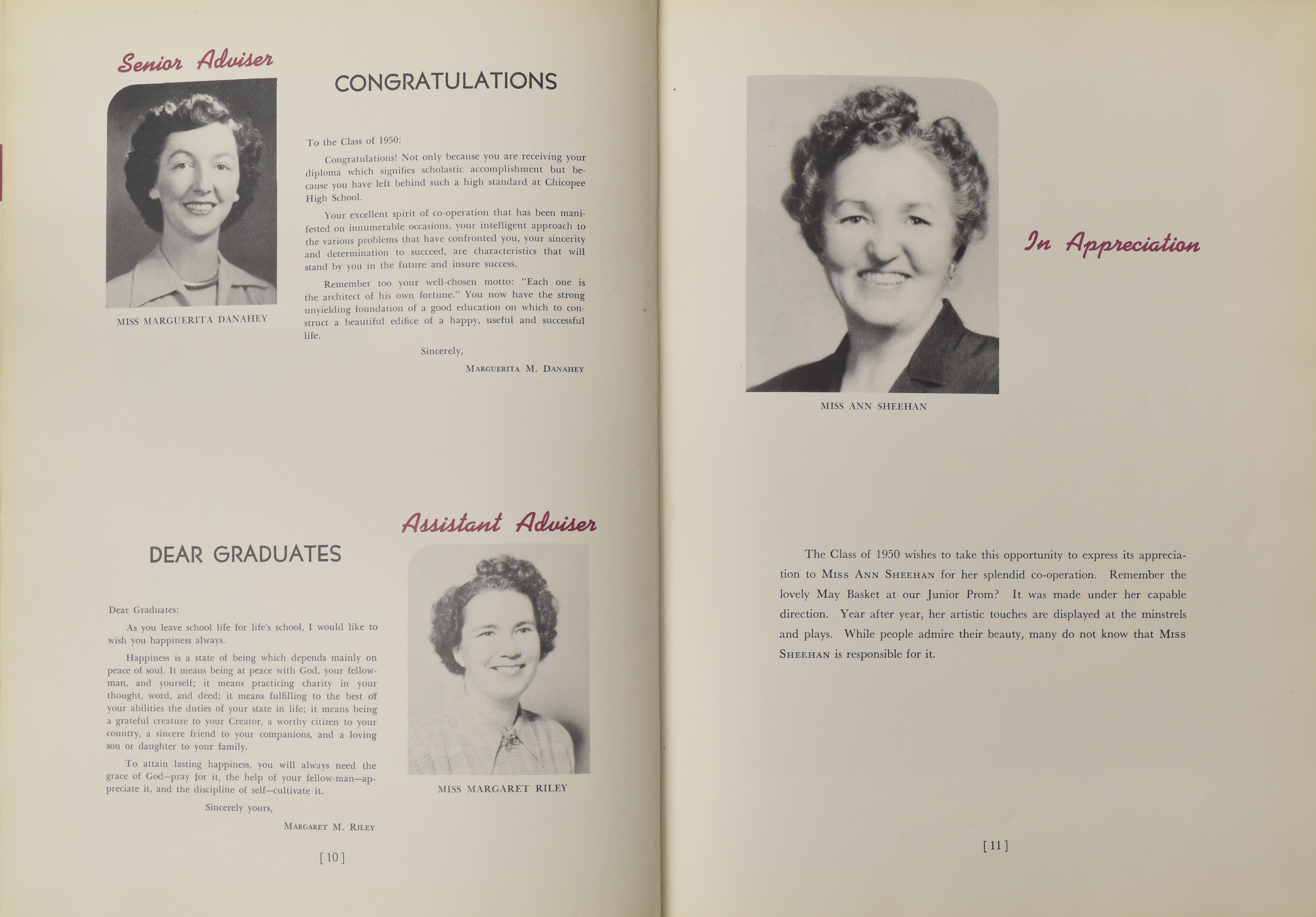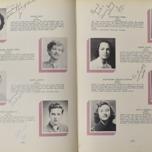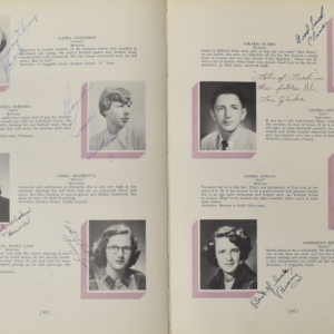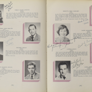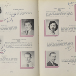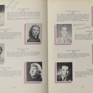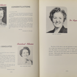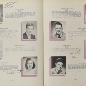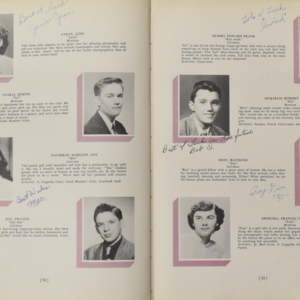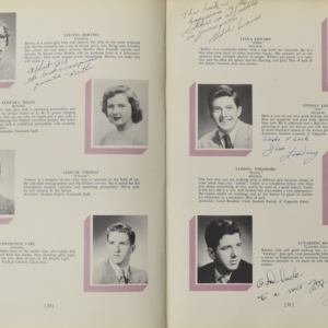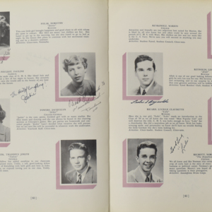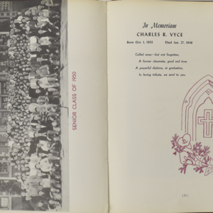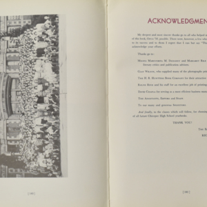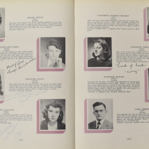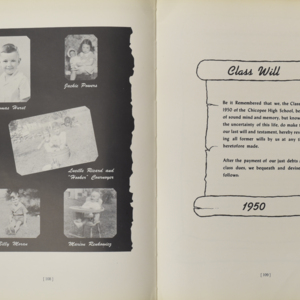 Yearbook for the class of 1950 of the Chicopee High School. Includes class photographs; individual senior portraits; clubs; sports; faculty; class will; casual photographs of students; dedications and sponser ads.