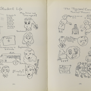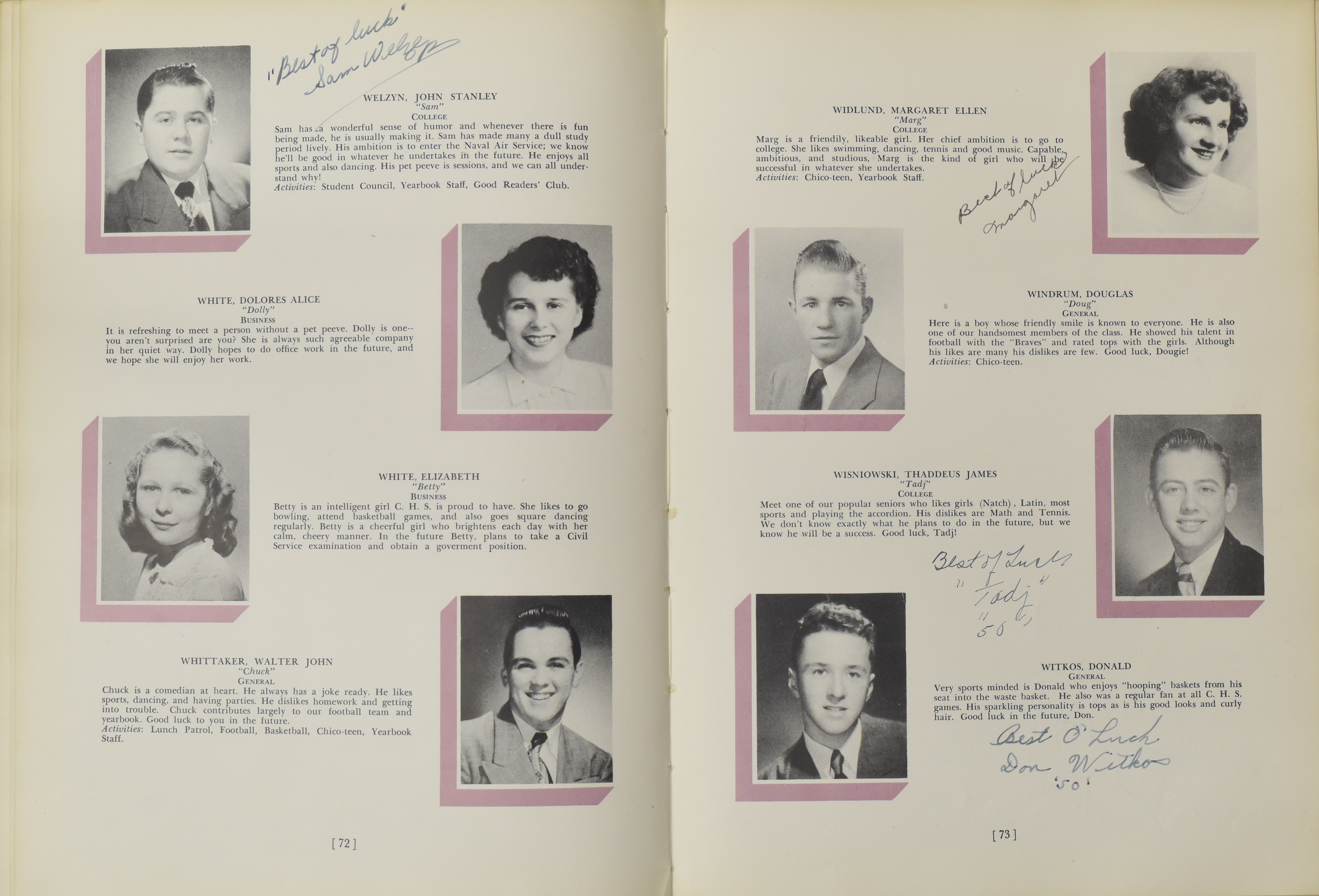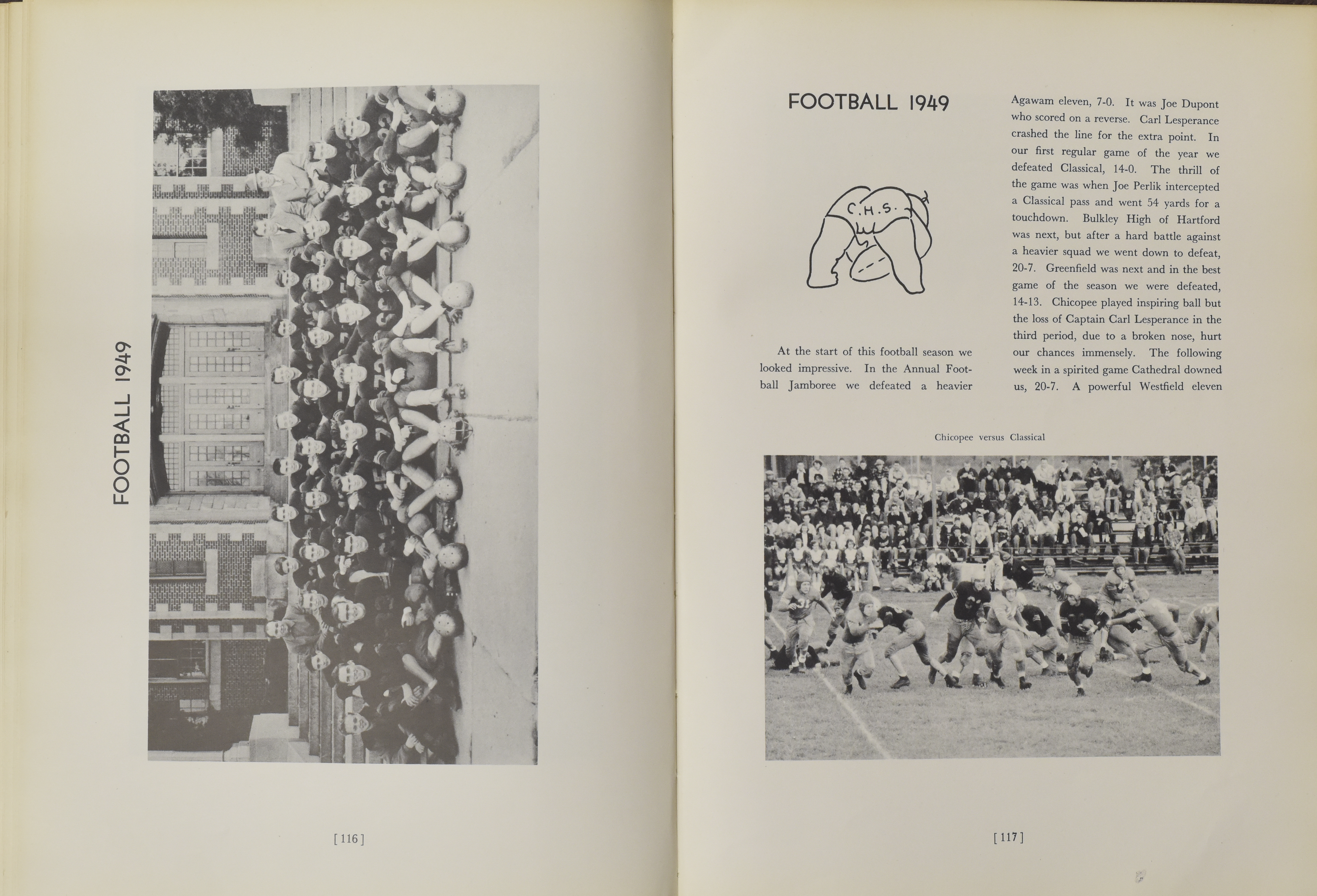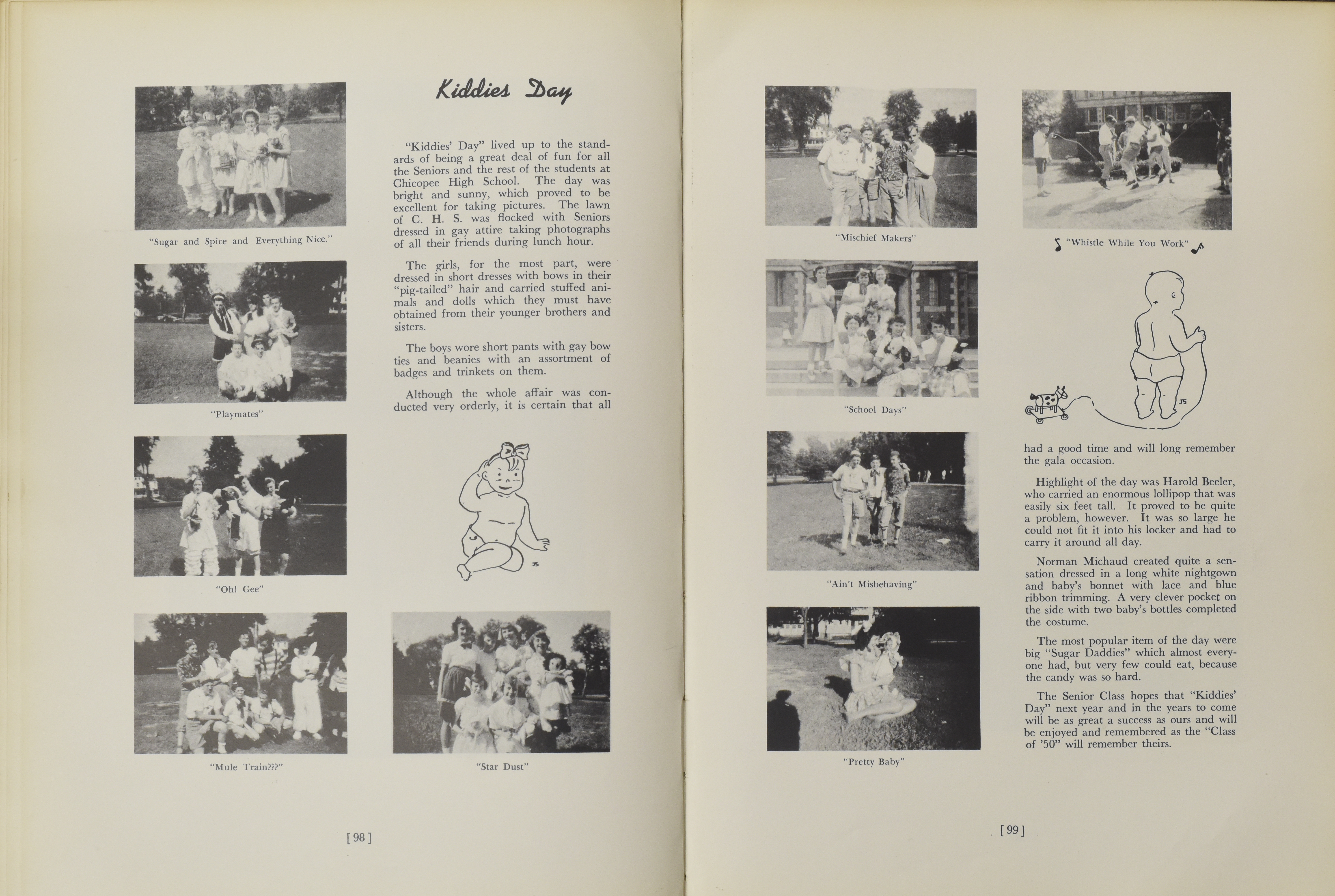 Yearbook for the class of 1950 of the Chicopee High School. Includes class photographs; individual senior portraits; clubs; sports; faculty; class will; casual photographs of students; dedications and sponser ads.