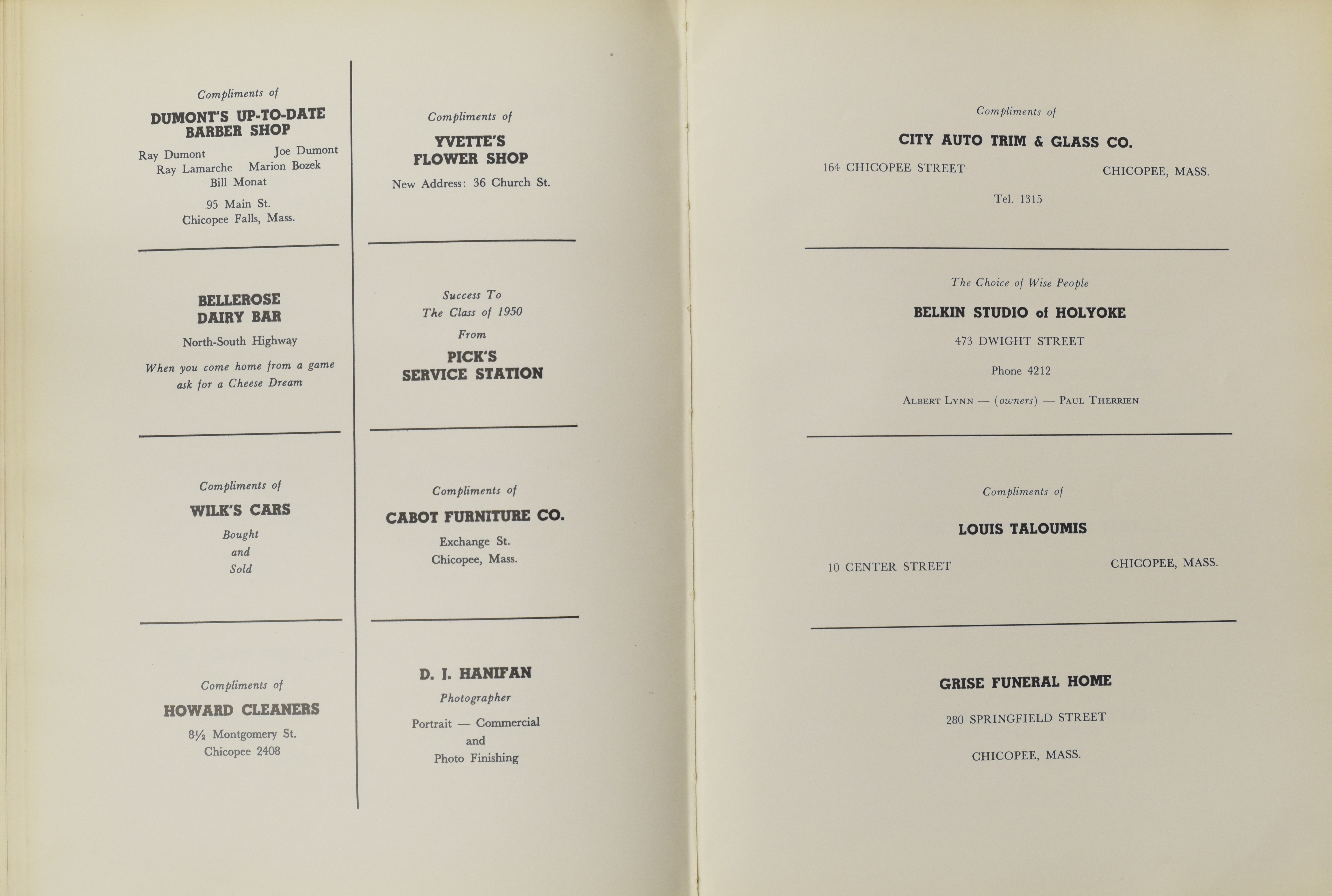 “Chicopee High School Yearbook 1950,” Chicopee Archives Online, accessed March 5, 2026, https://www.chicopeepubliclibrary.org/archives/items/show/8676.