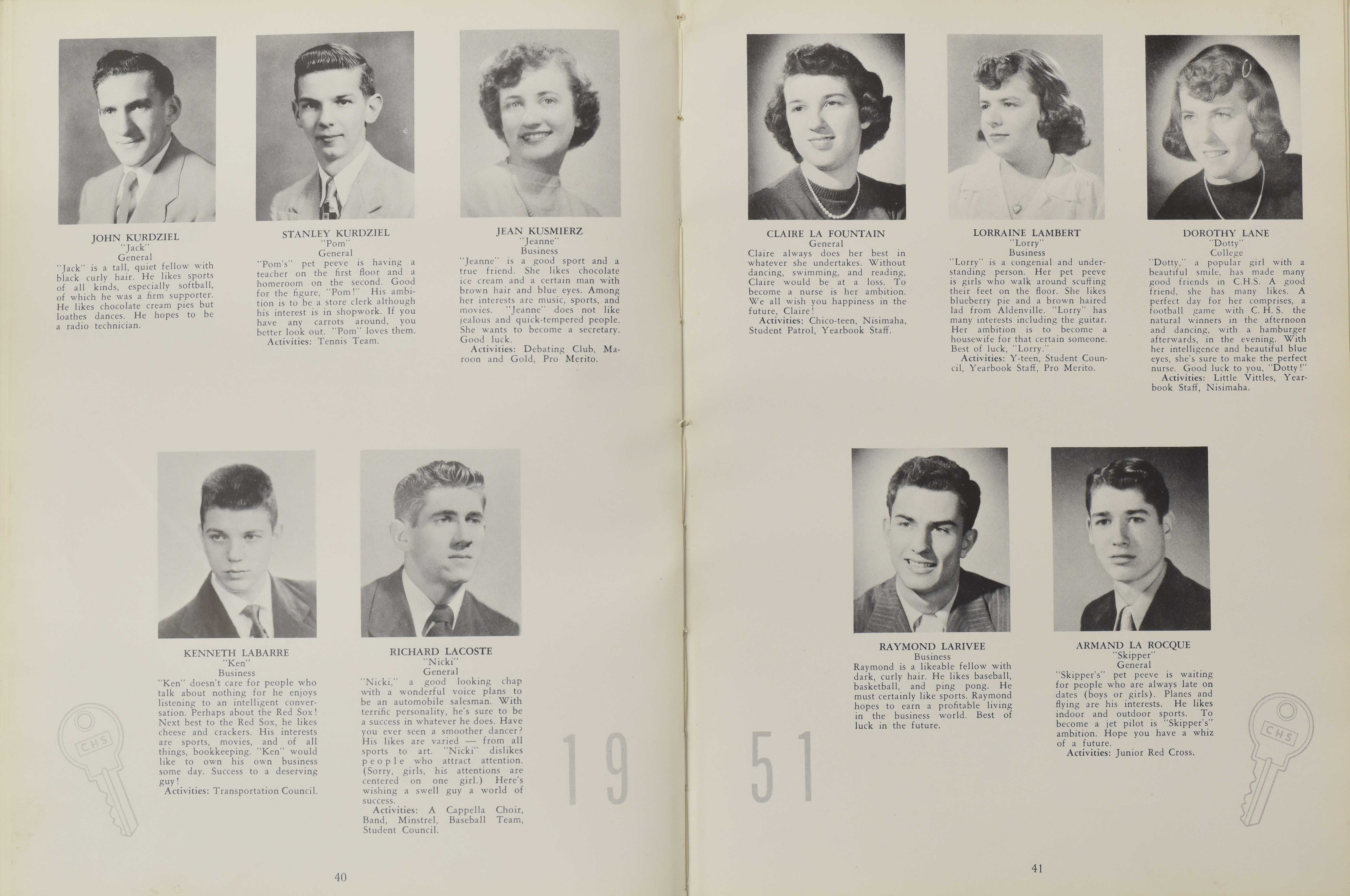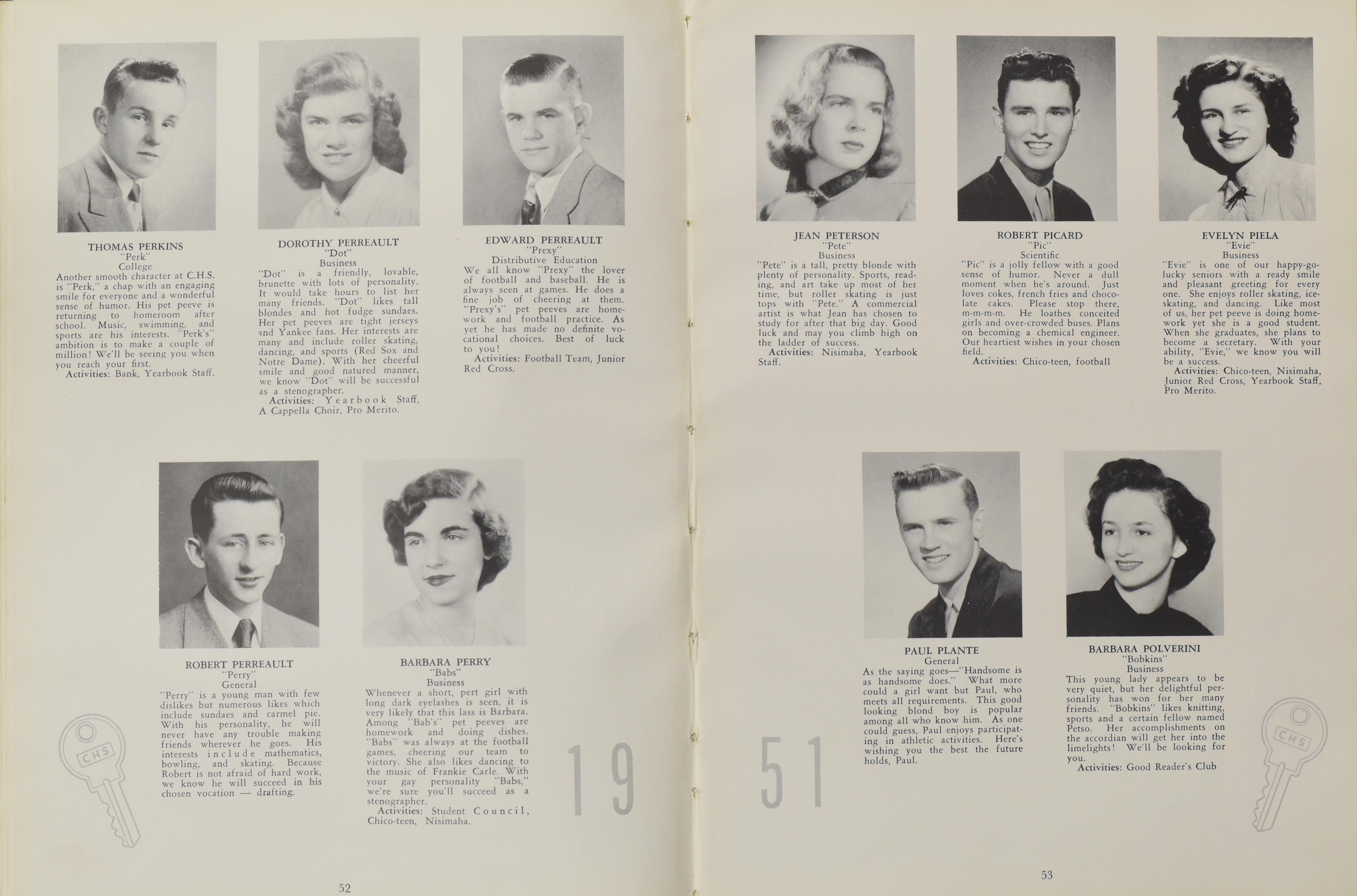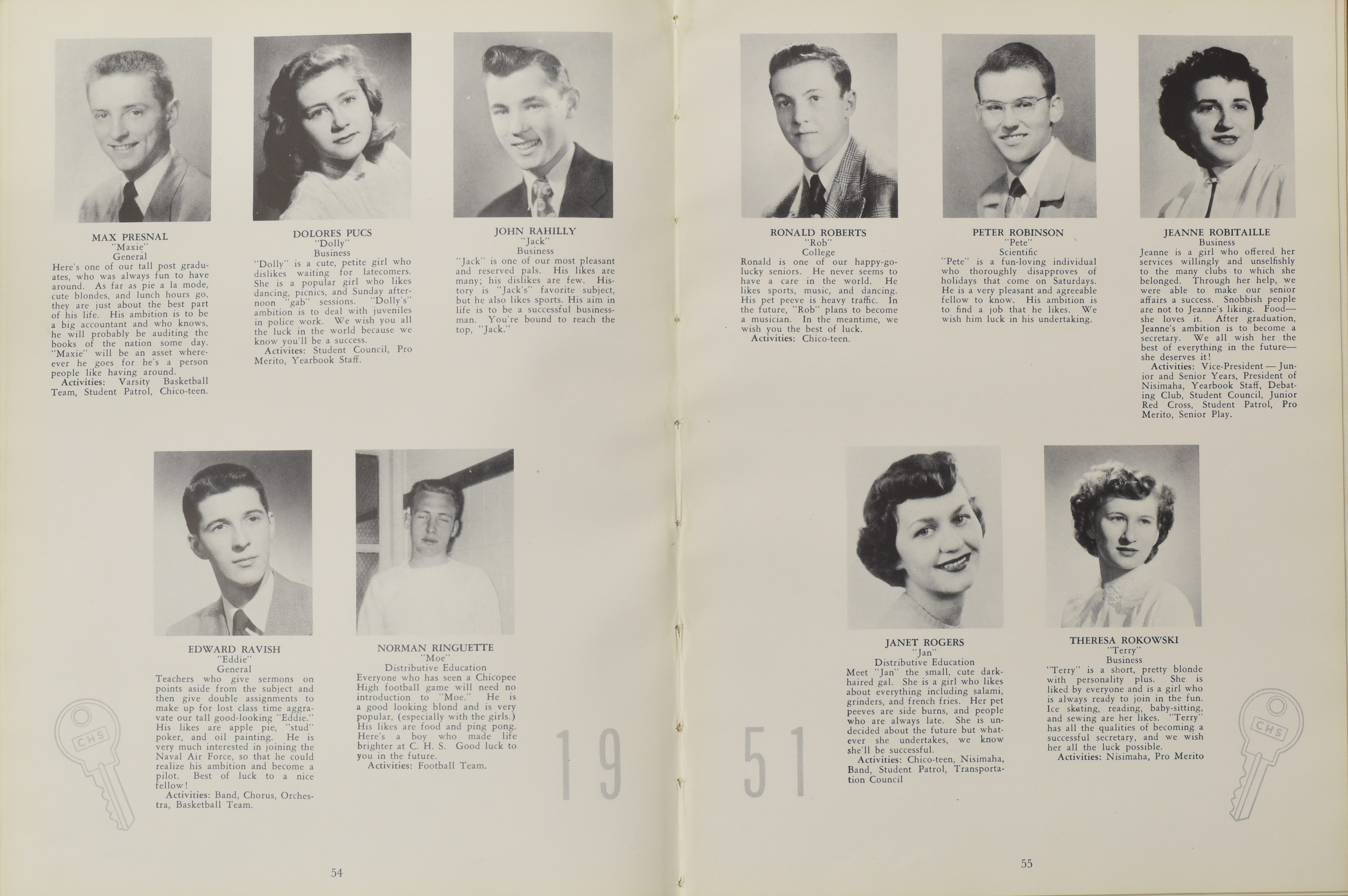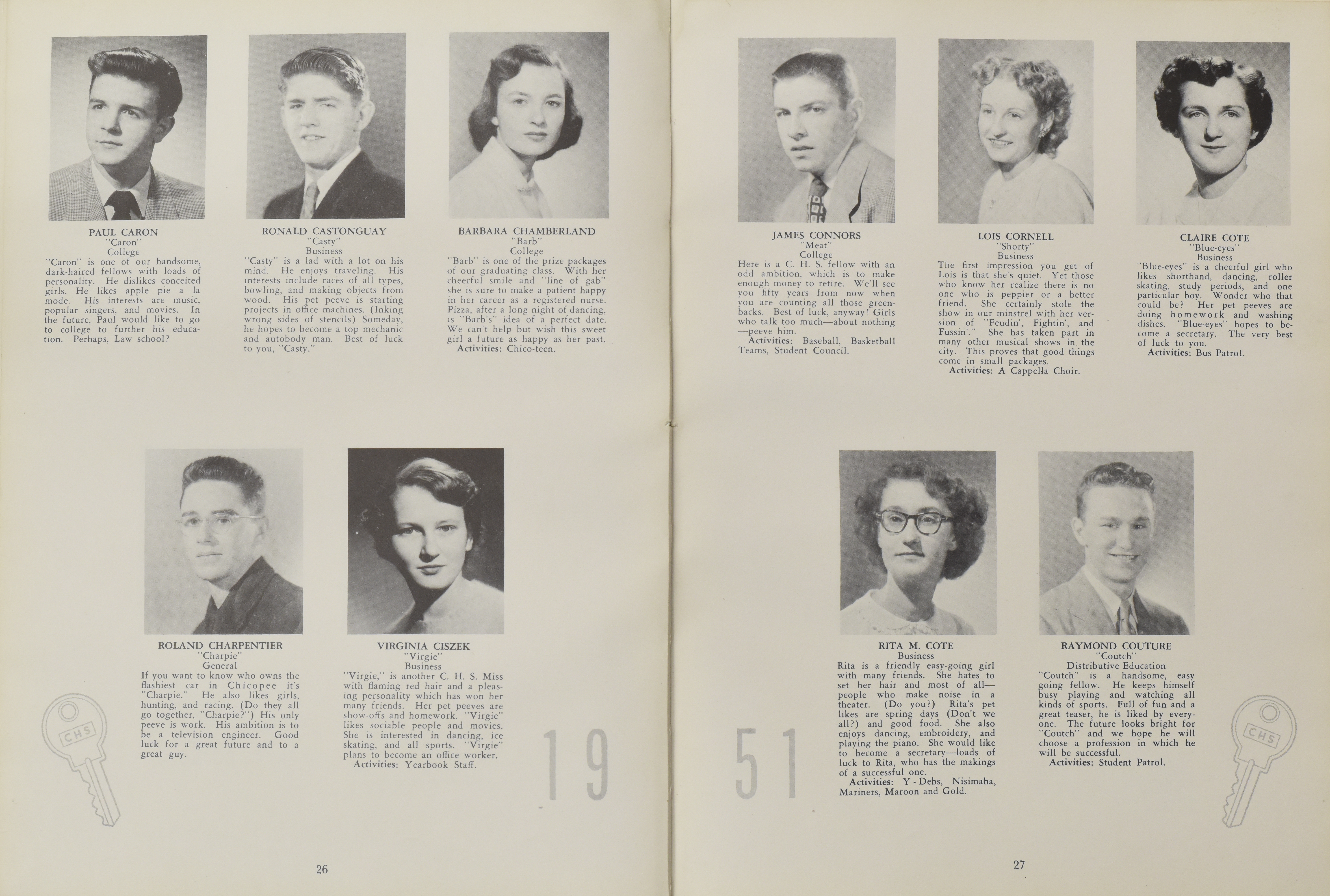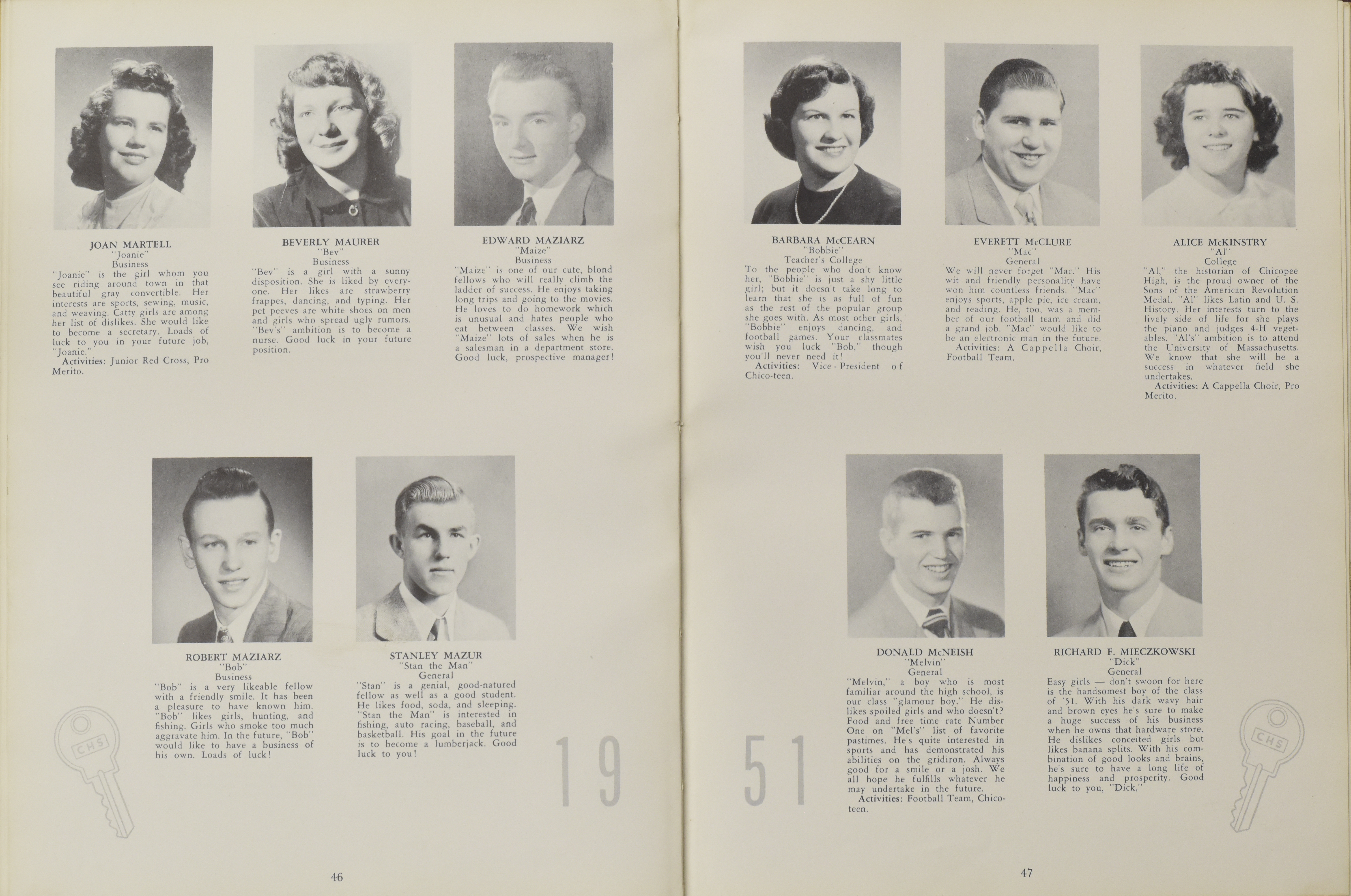 “Chicopee High School Yearbook 1951,” Chicopee Archives Online, accessed March 5, 2026, https://www.chicopeepubliclibrary.org/archives/items/show/8677.