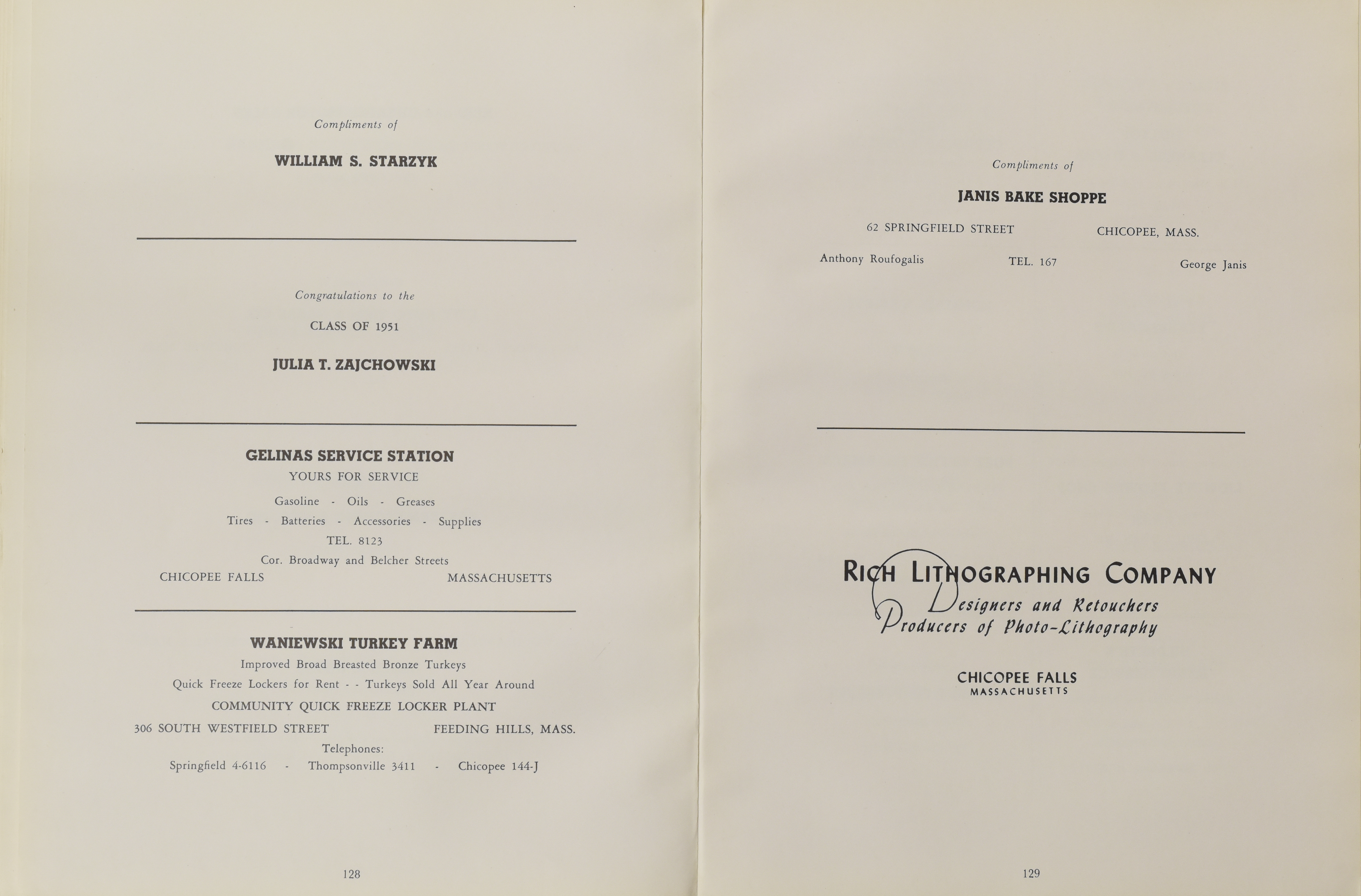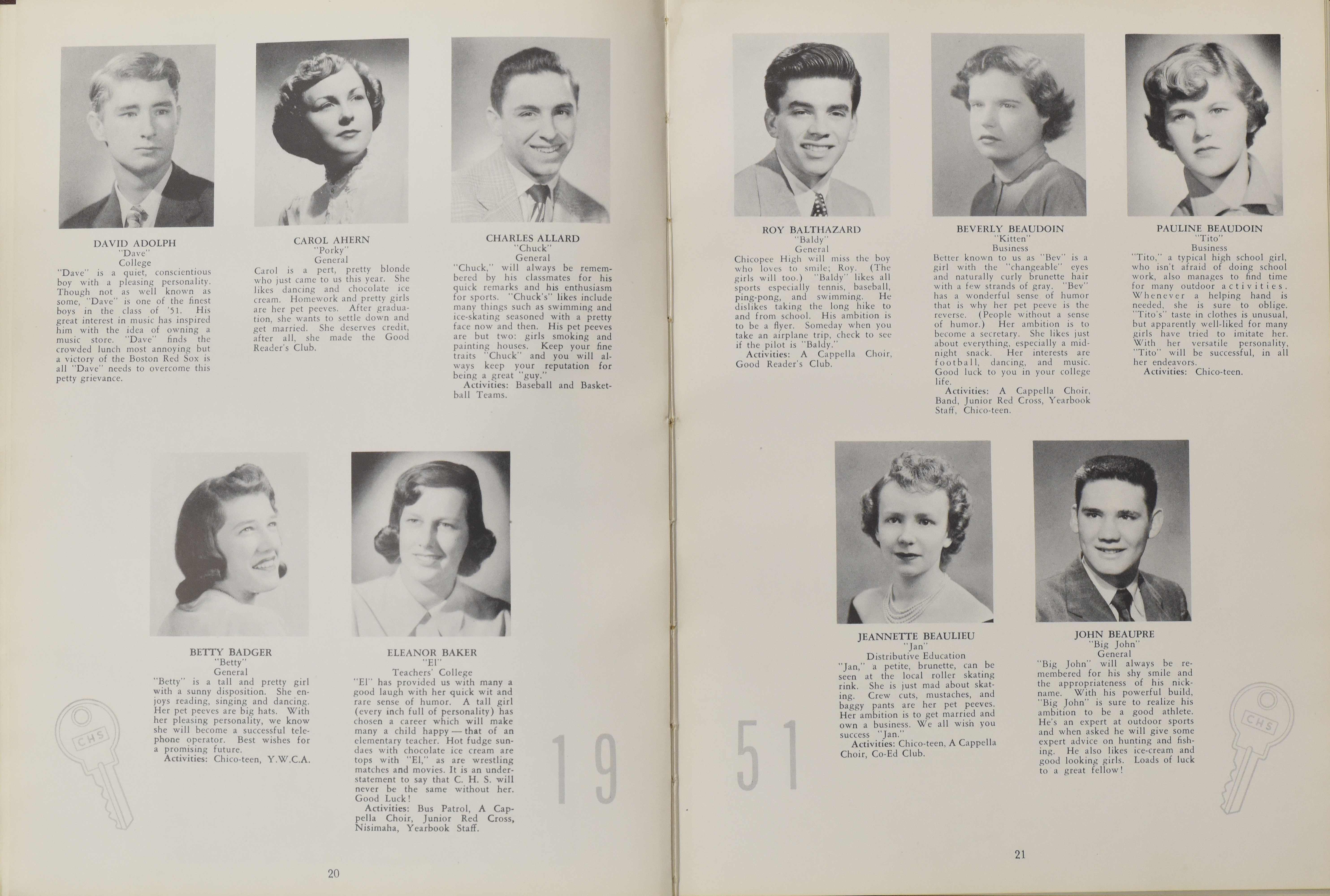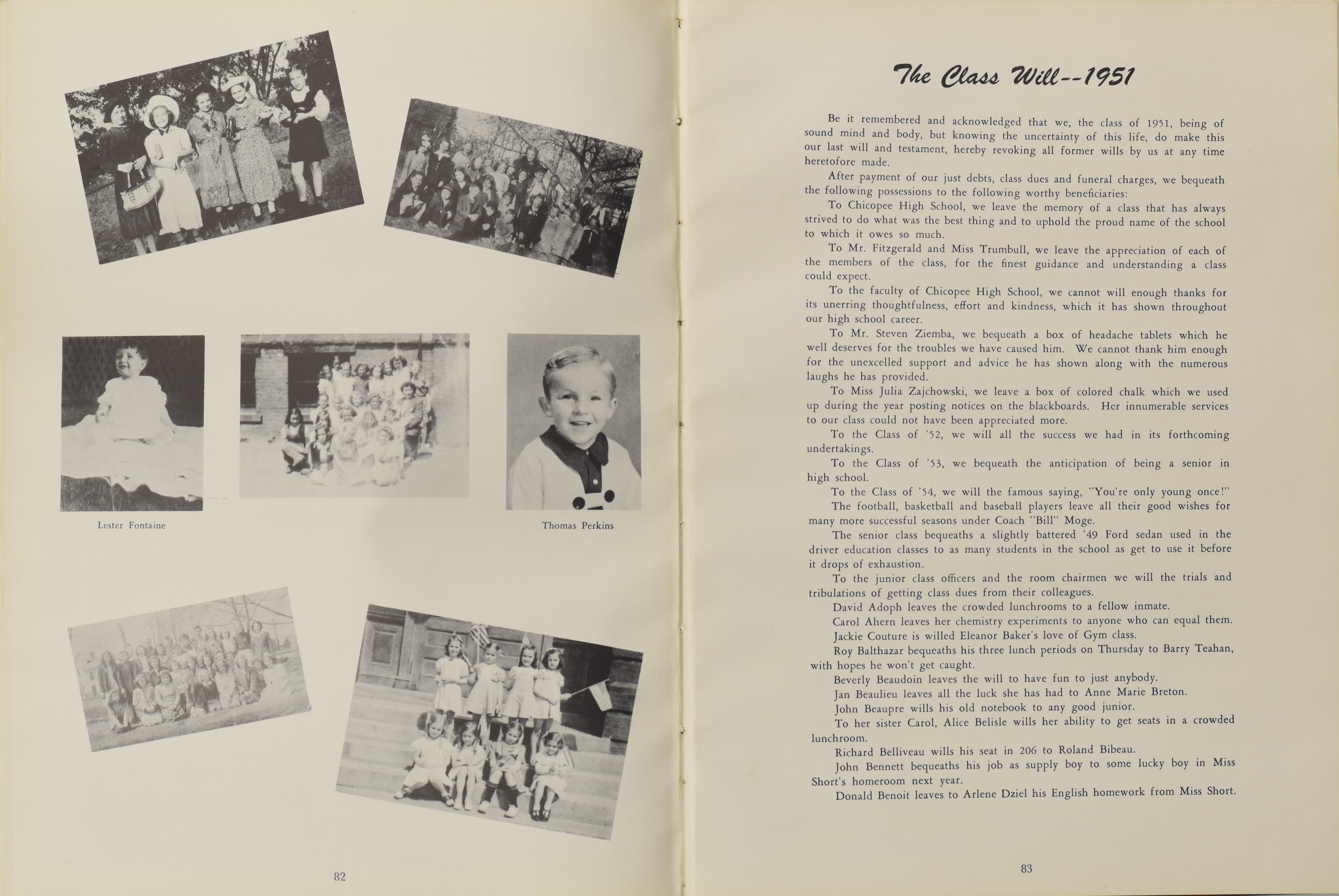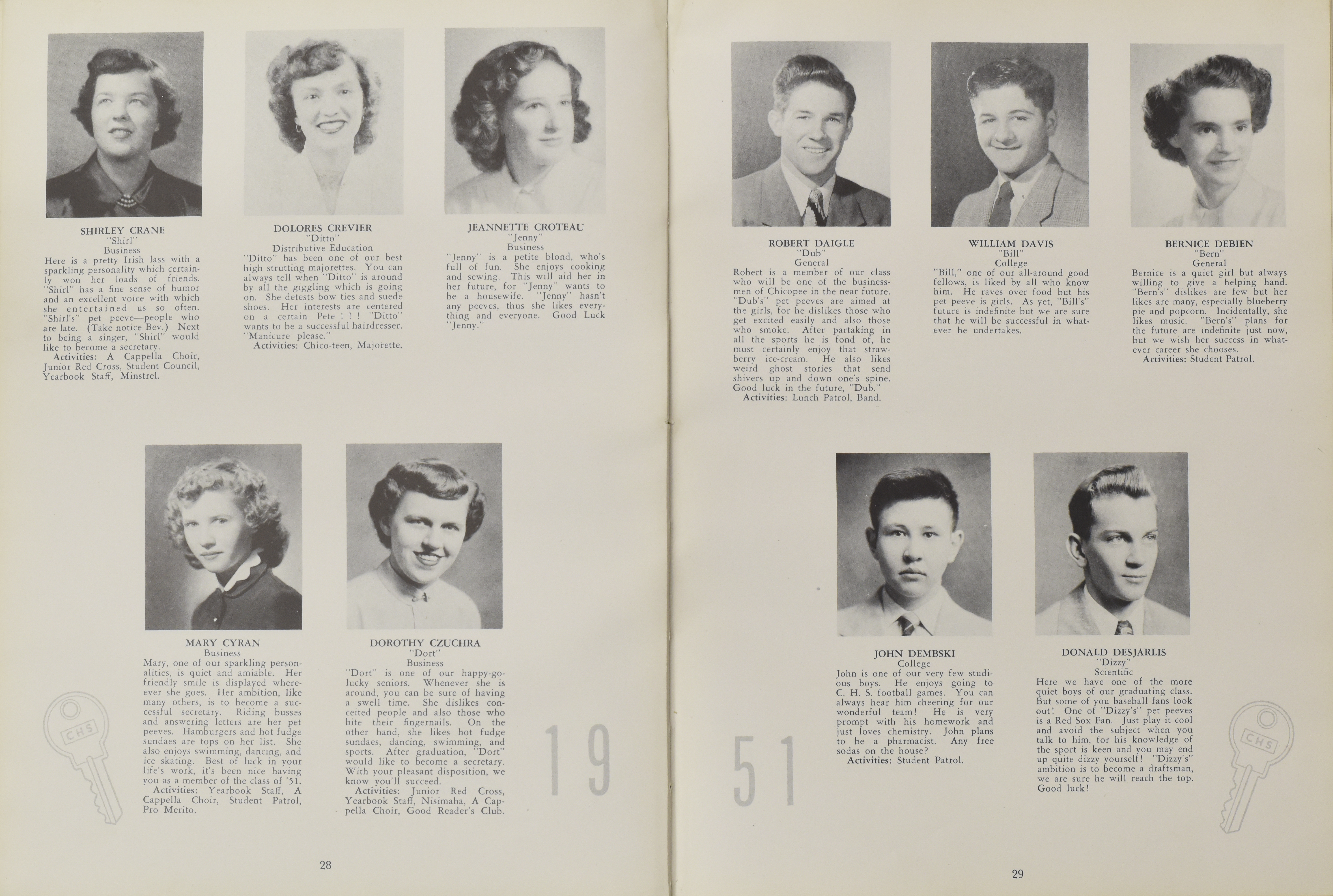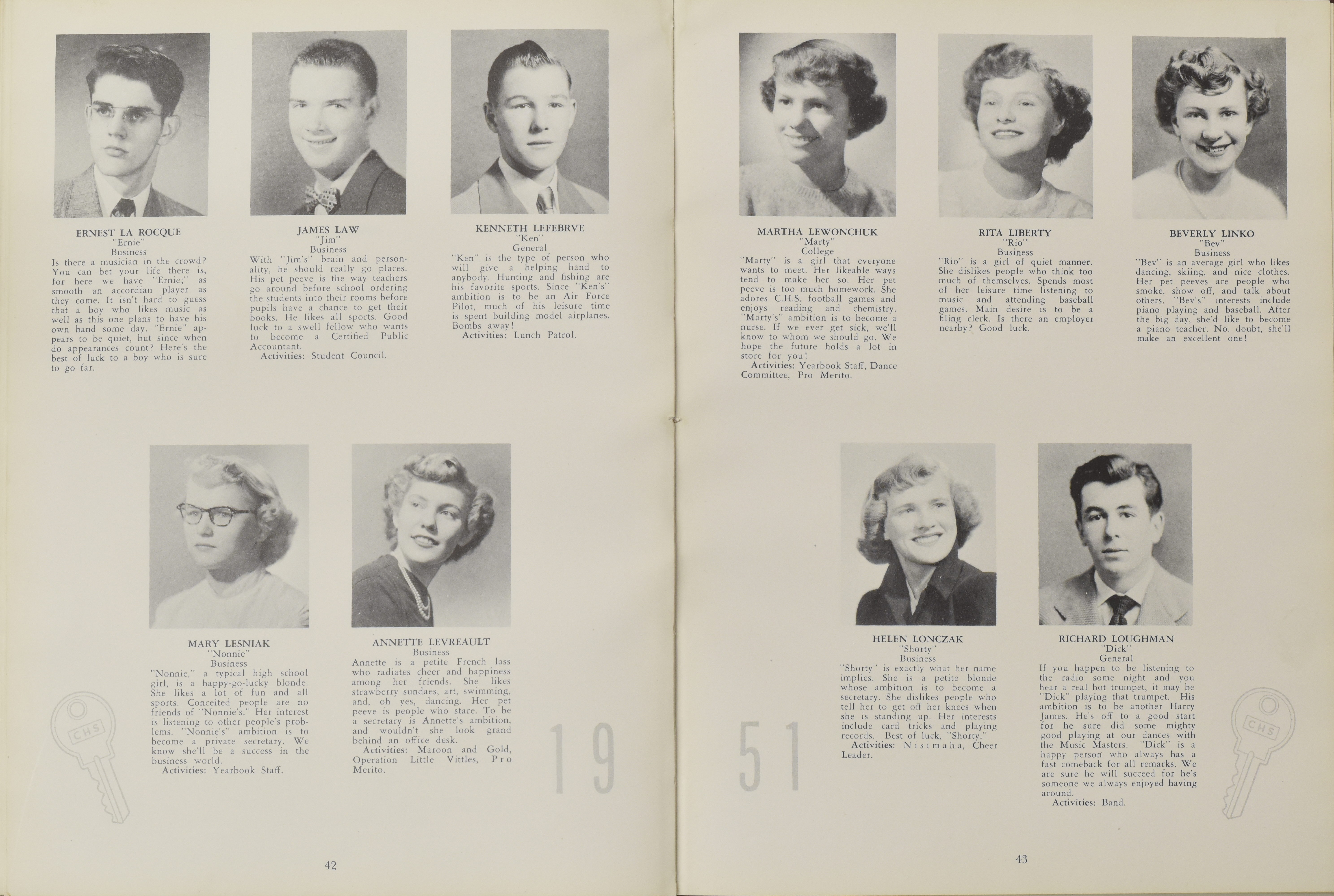 “Chicopee High School Yearbook 1951,” Chicopee Archives Online, accessed March 5, 2026, https://www.chicopeepubliclibrary.org/archives/items/show/8677.