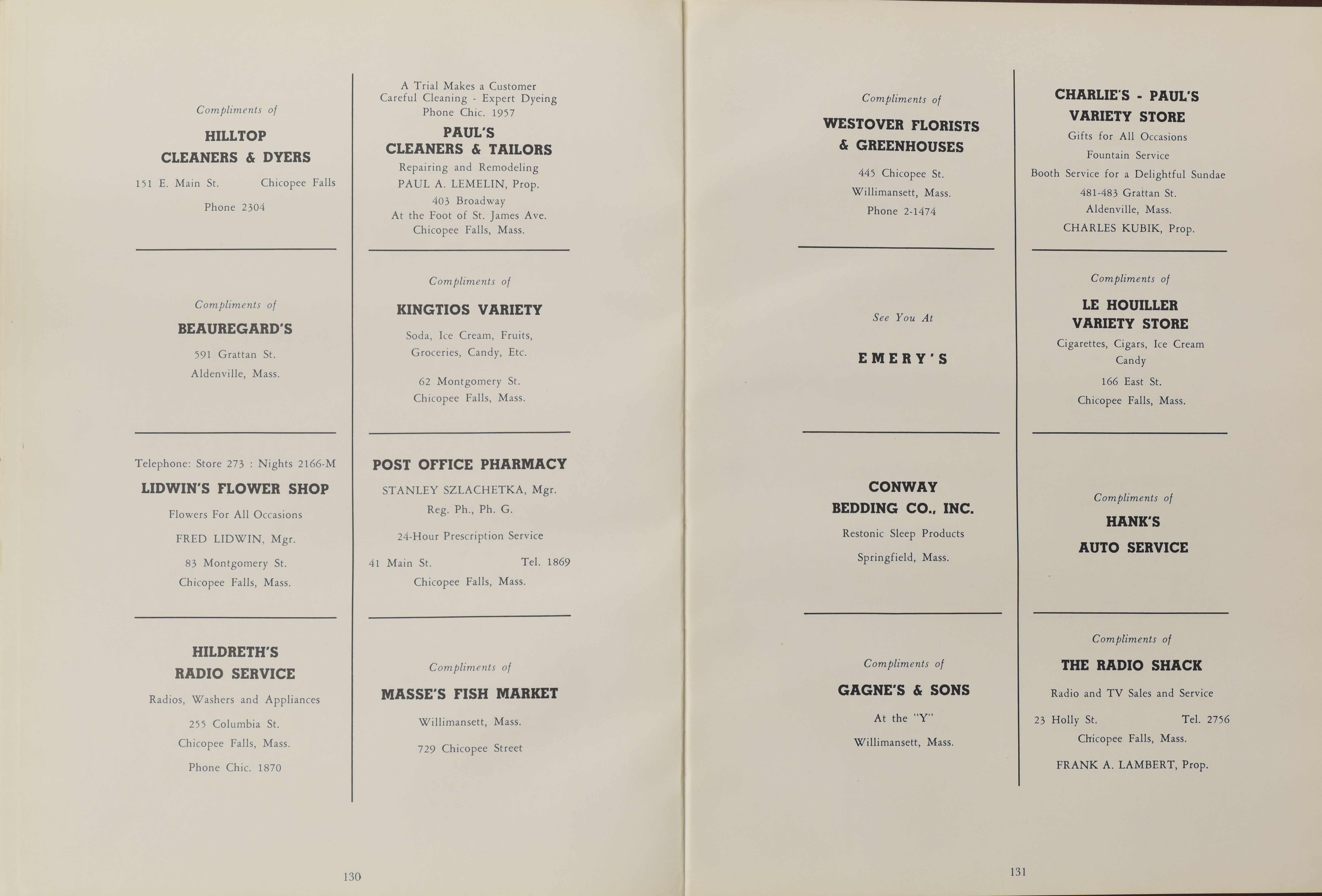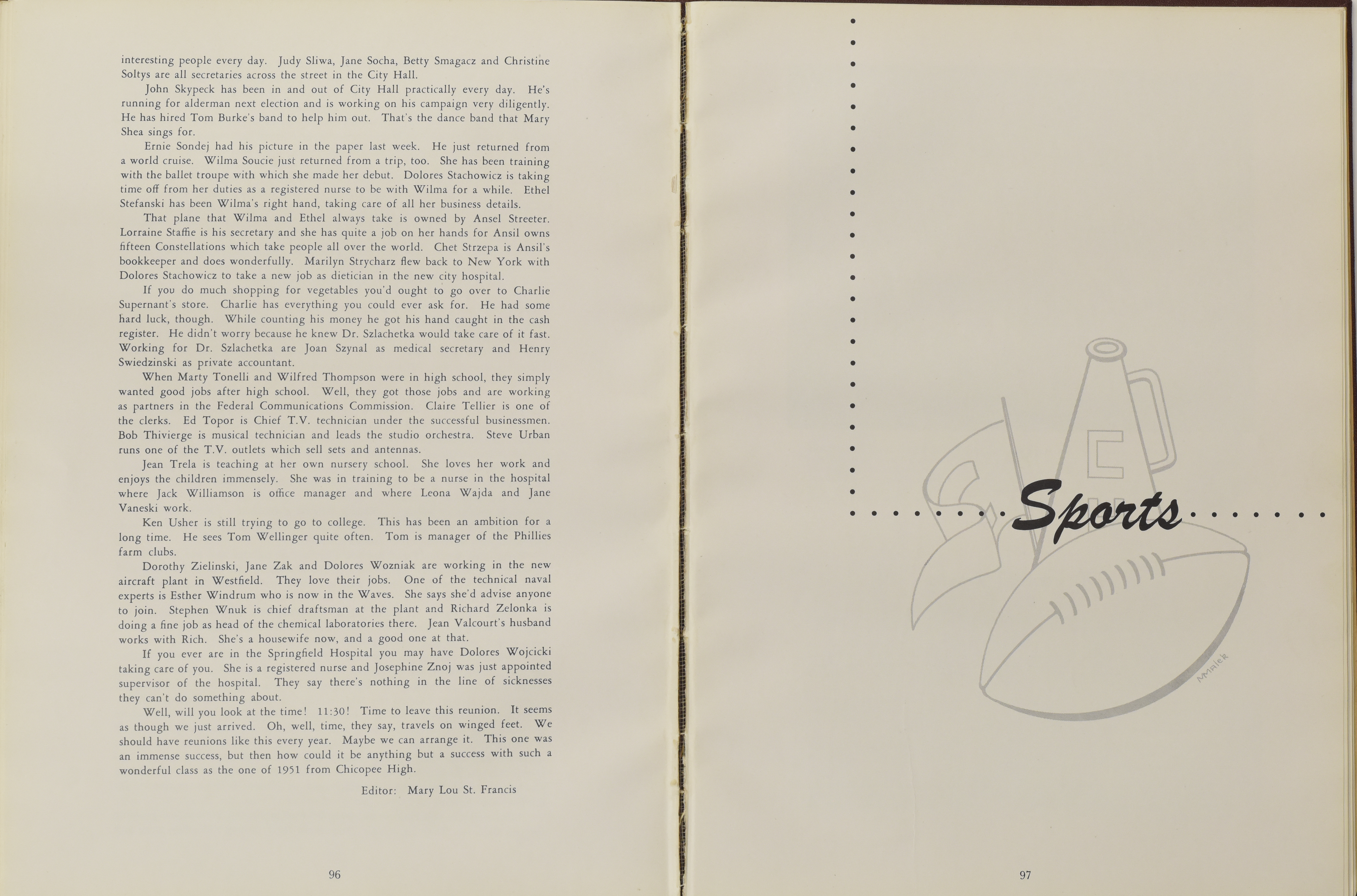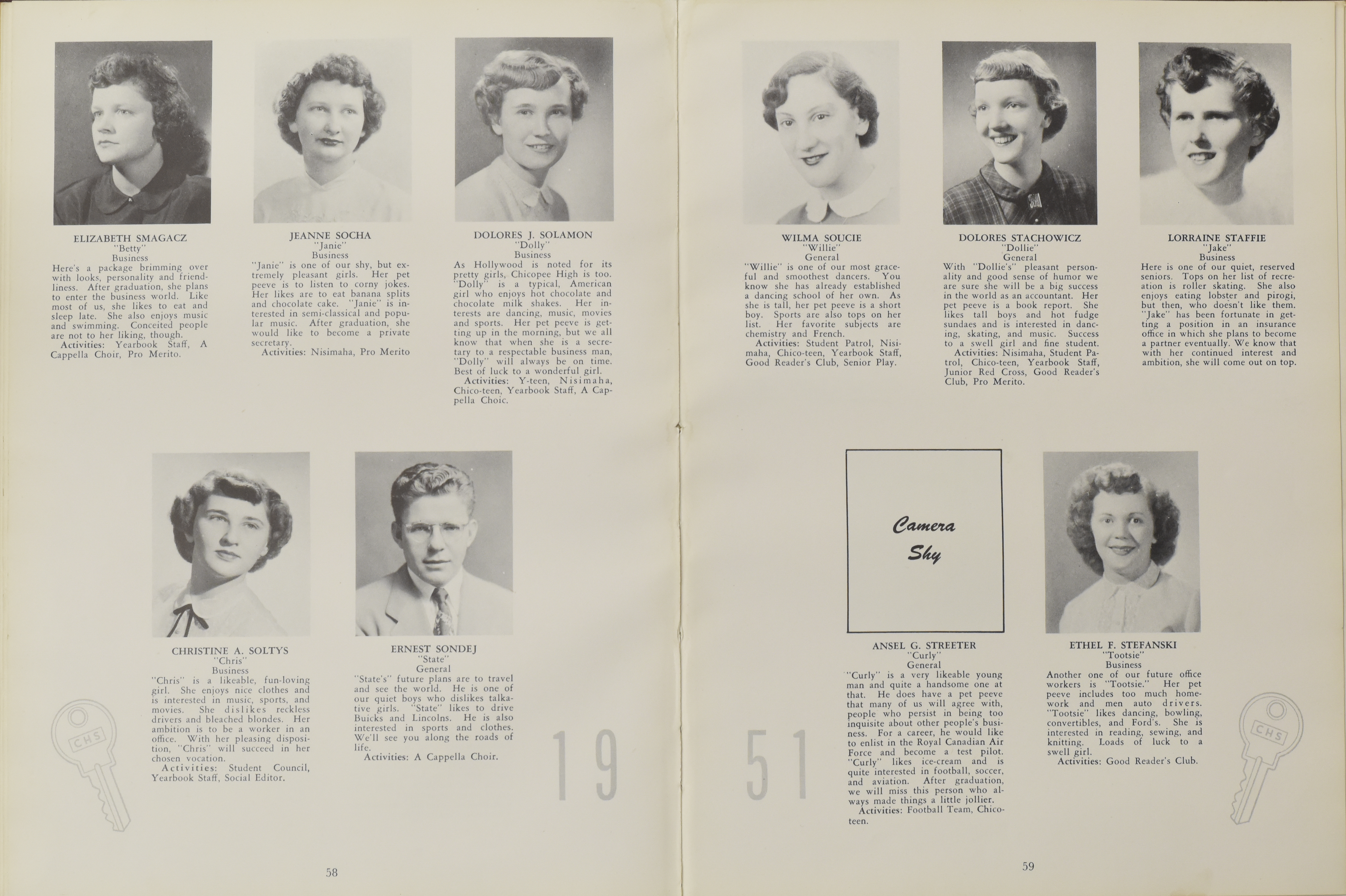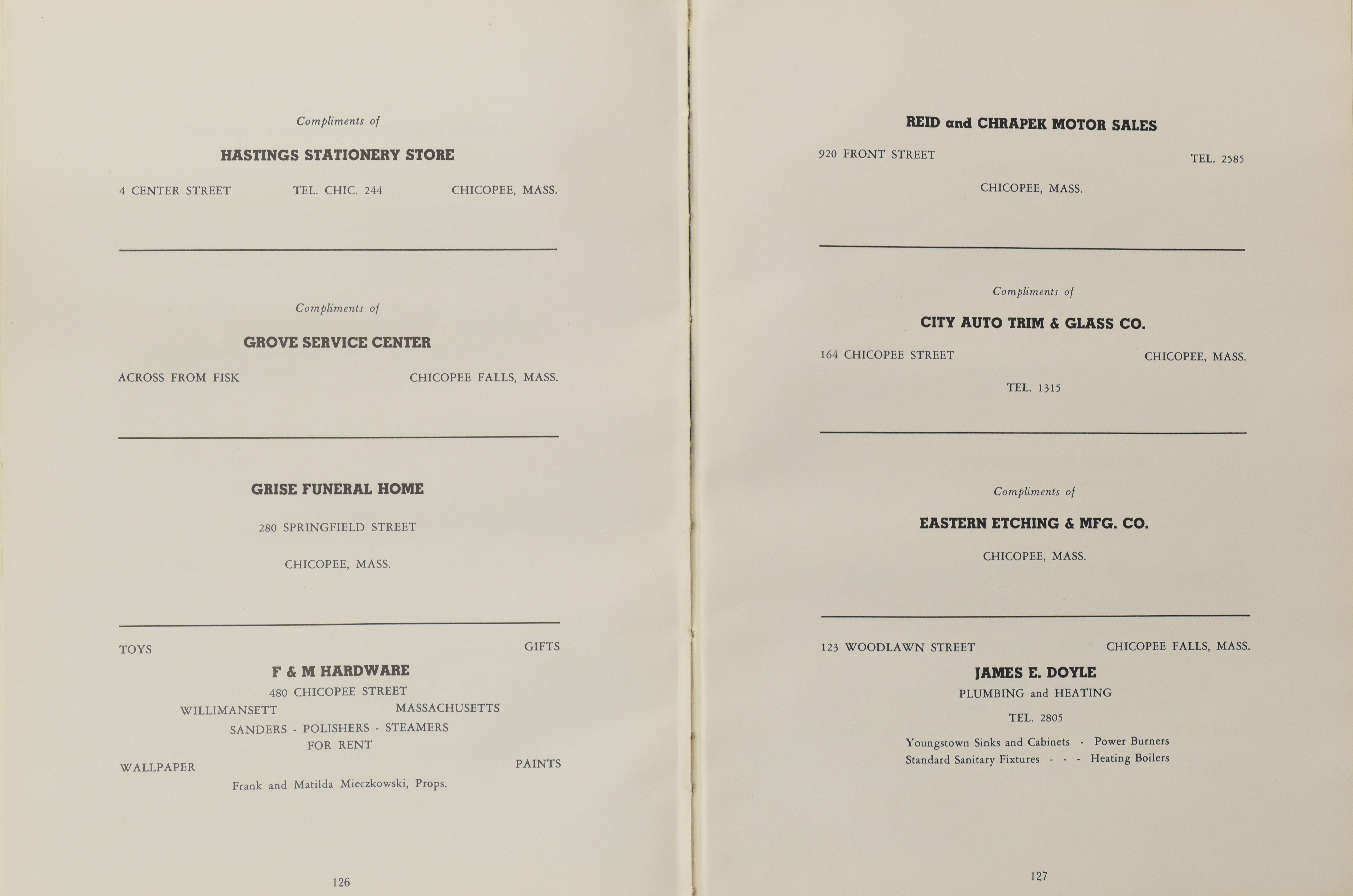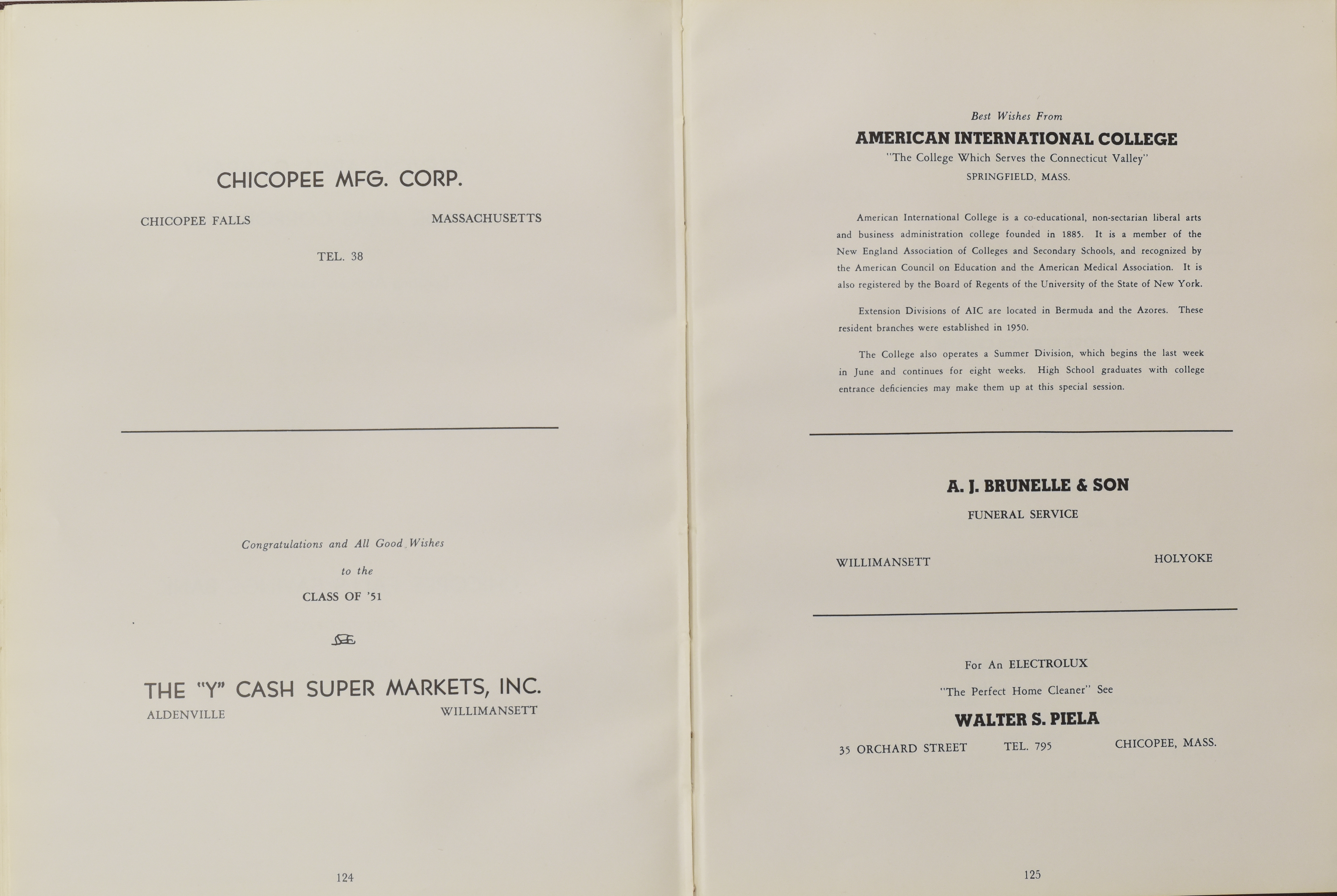 “Chicopee High School Yearbook 1951,” Chicopee Archives Online, accessed March 5, 2026, https://www.chicopeepubliclibrary.org/archives/items/show/8677.