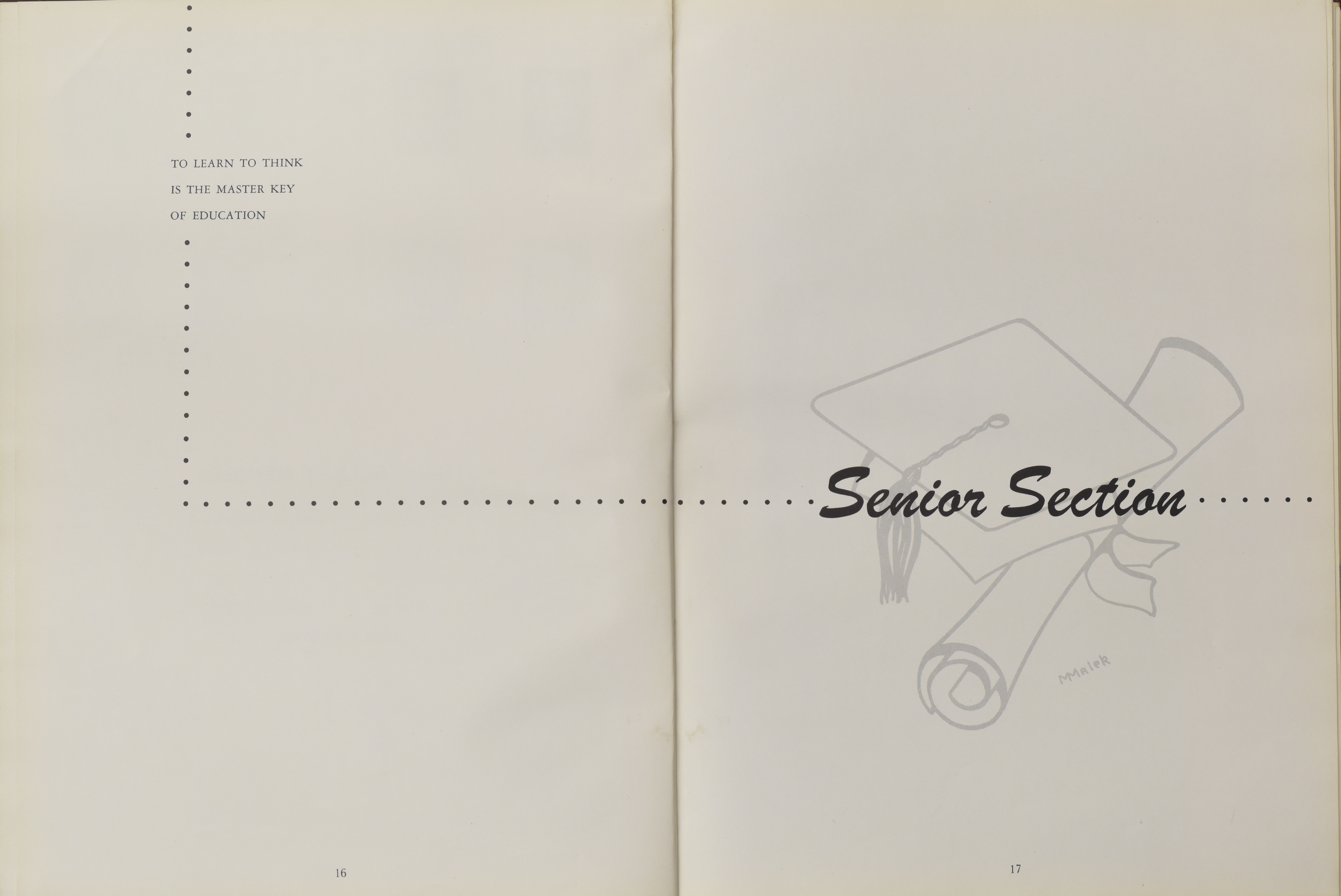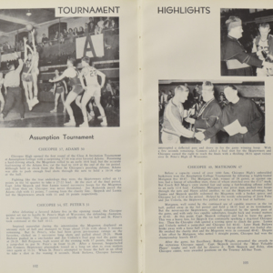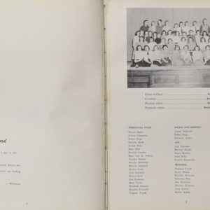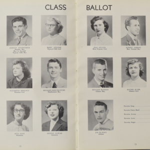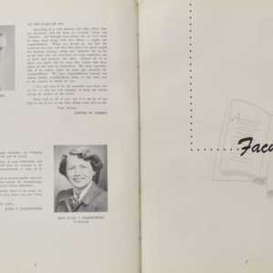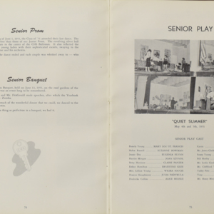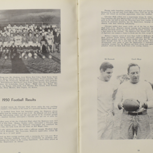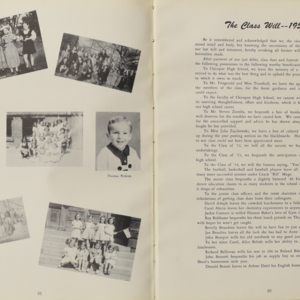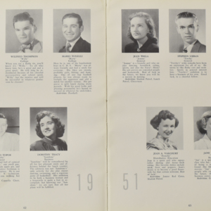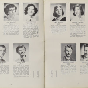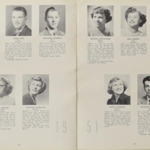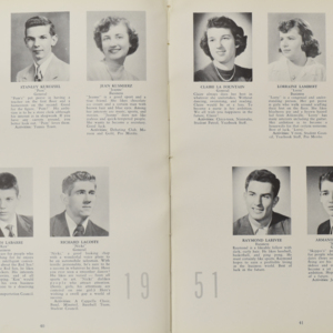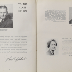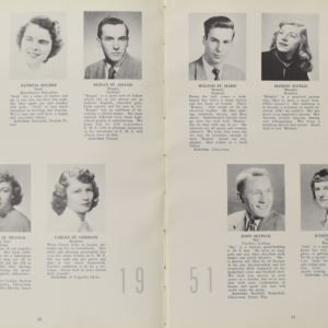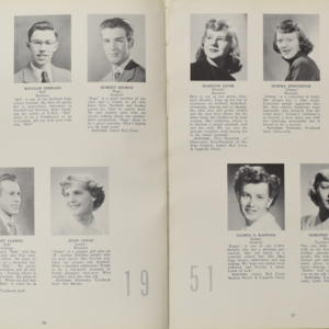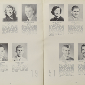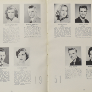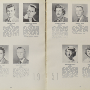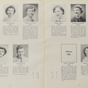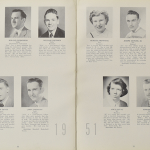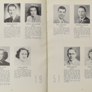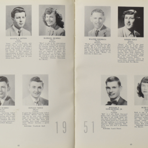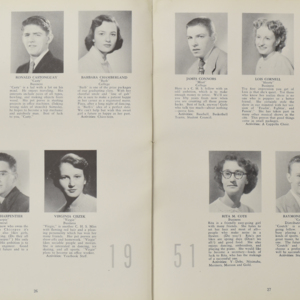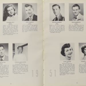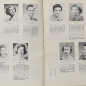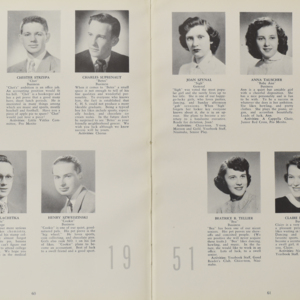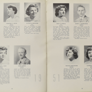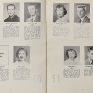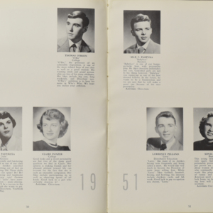 Yearbook for the class of 1951 of the Chicopee High School. Includes class photographs; individual senior portraits; clubs; sports; faculty; class will; casual photographs of students; dedications and sponser ads;