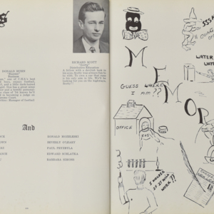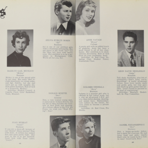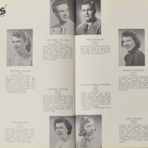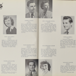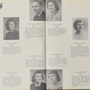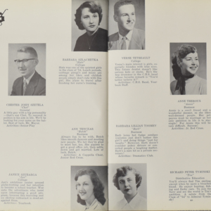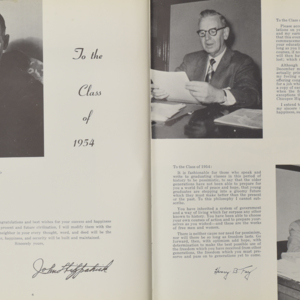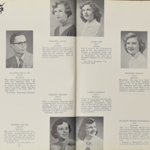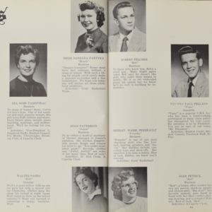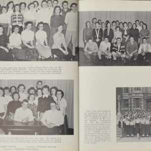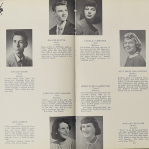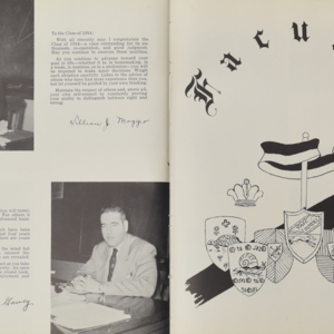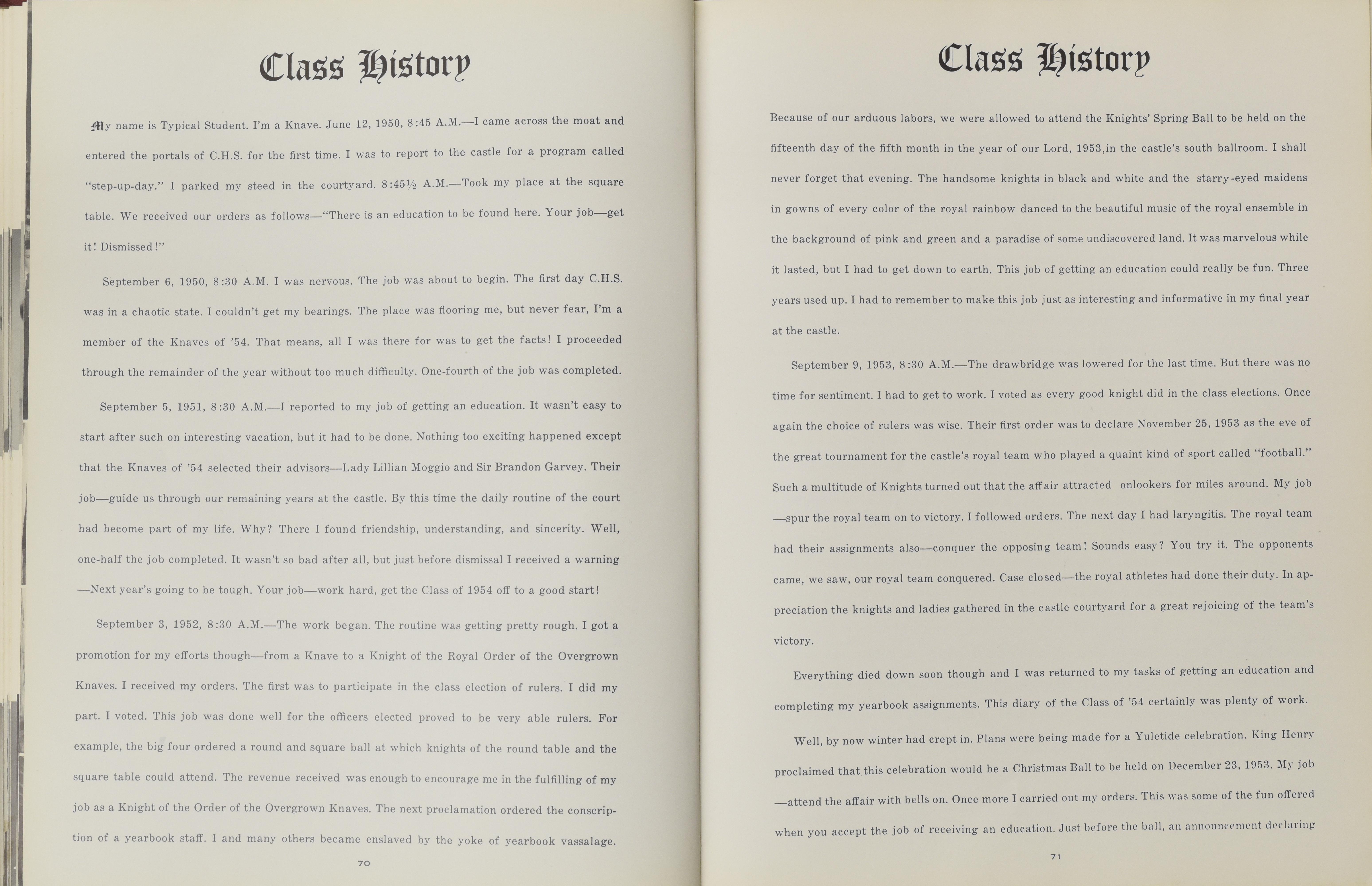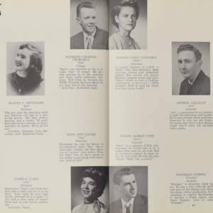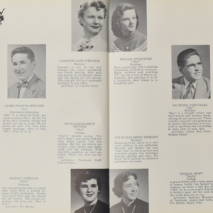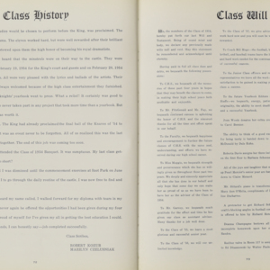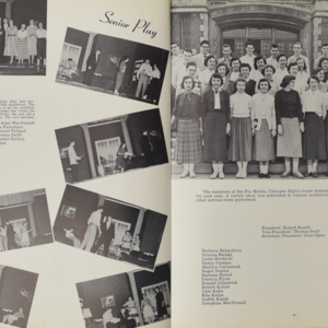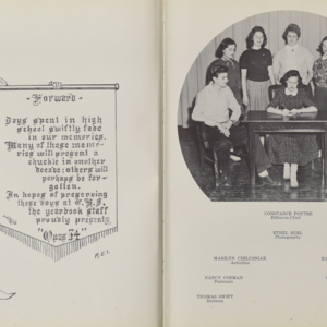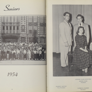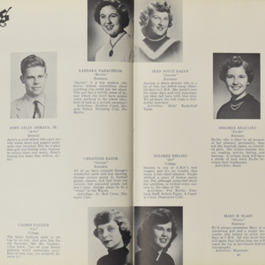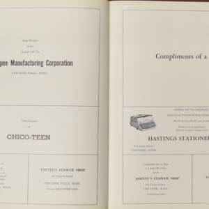 Yearbook for the class of 1954 of the Chicopee High School. Includes class photographs; individual senior portraits; clubs; sports; faculty; class will; casual photographs of students; dedications and sponser ads