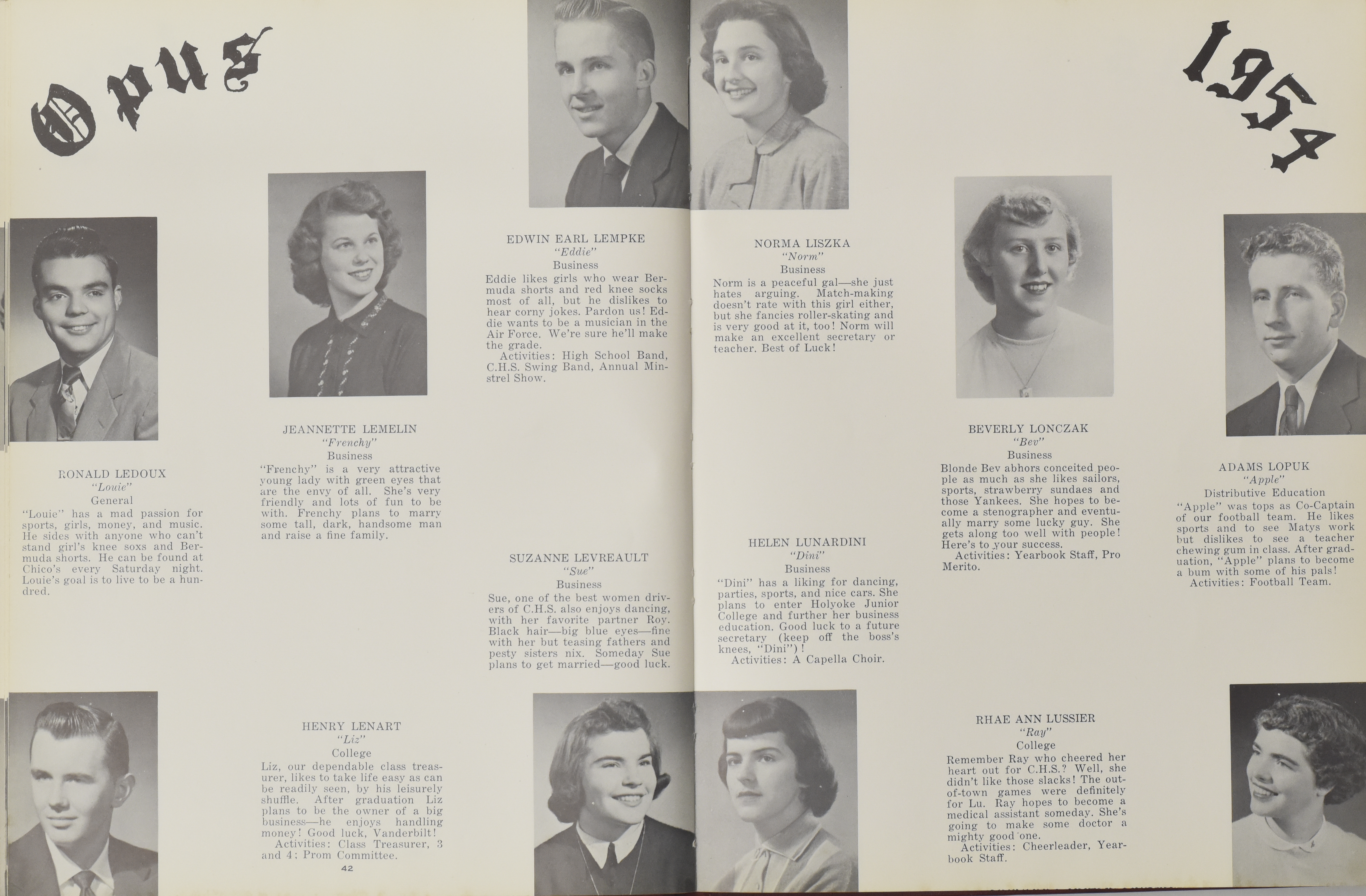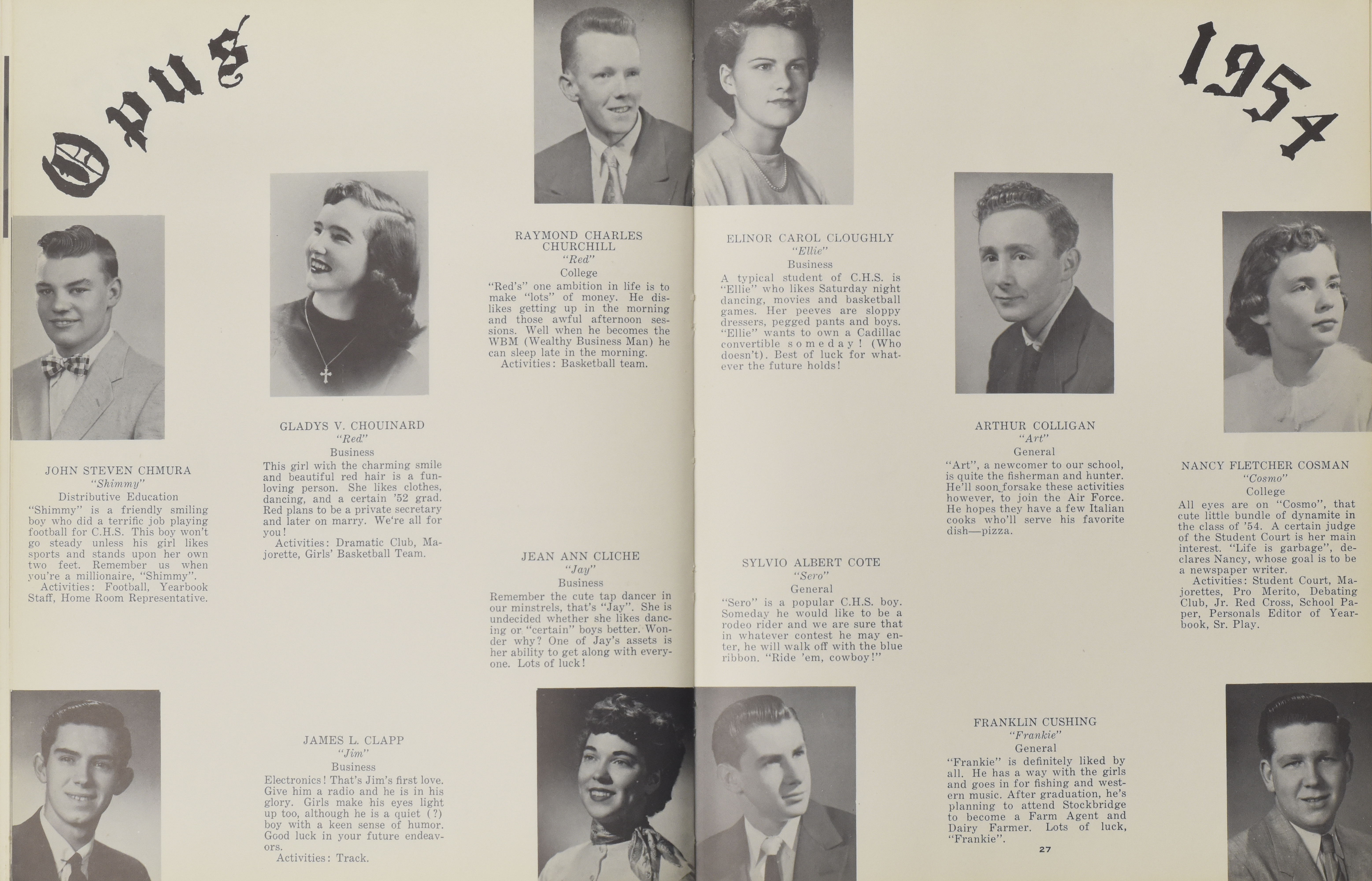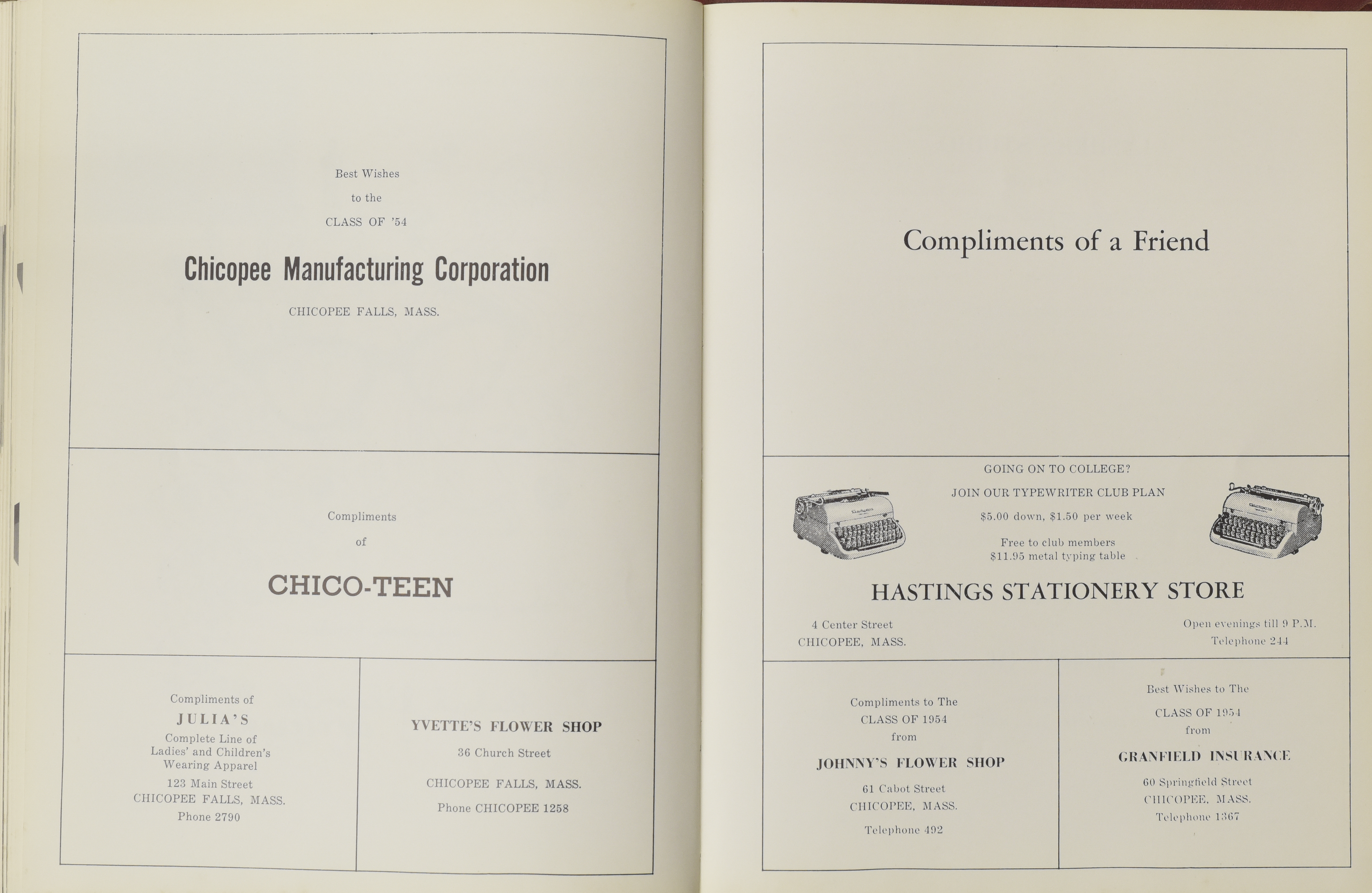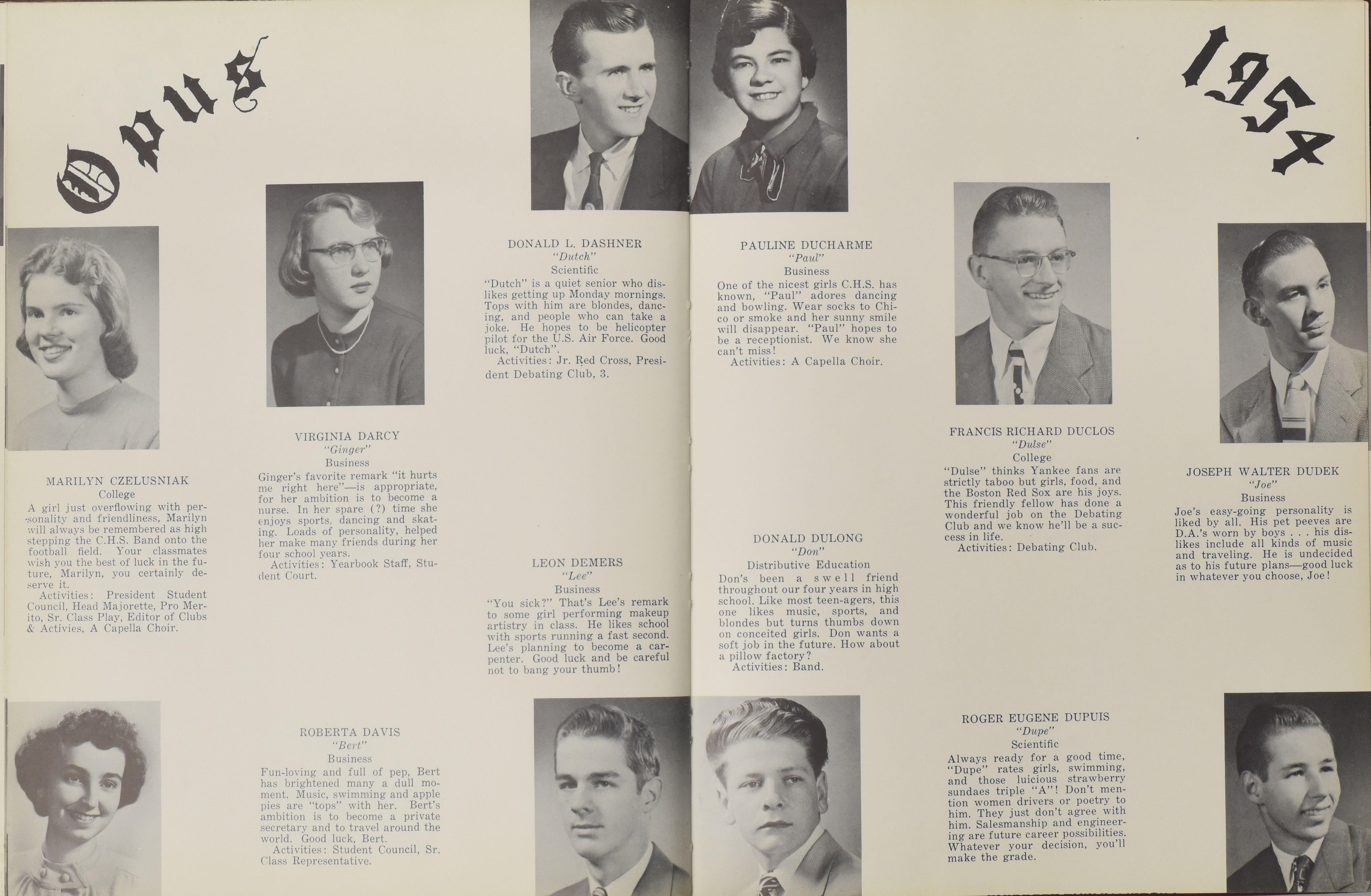 “Chicopee High School Yearbook 1954,” Chicopee Archives Online, accessed March 5, 2026, https://www.chicopeepubliclibrary.org/archives/items/show/8680.