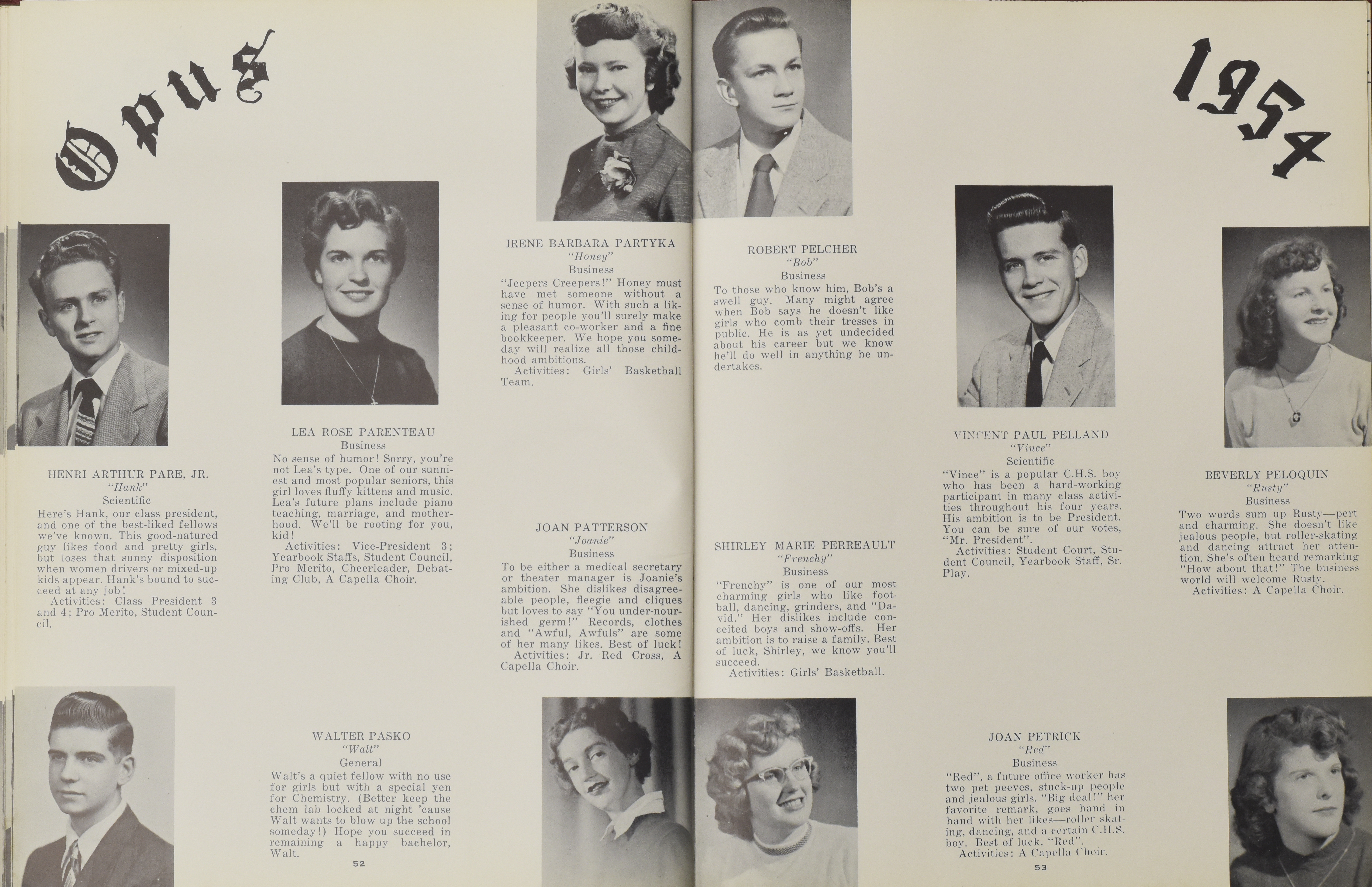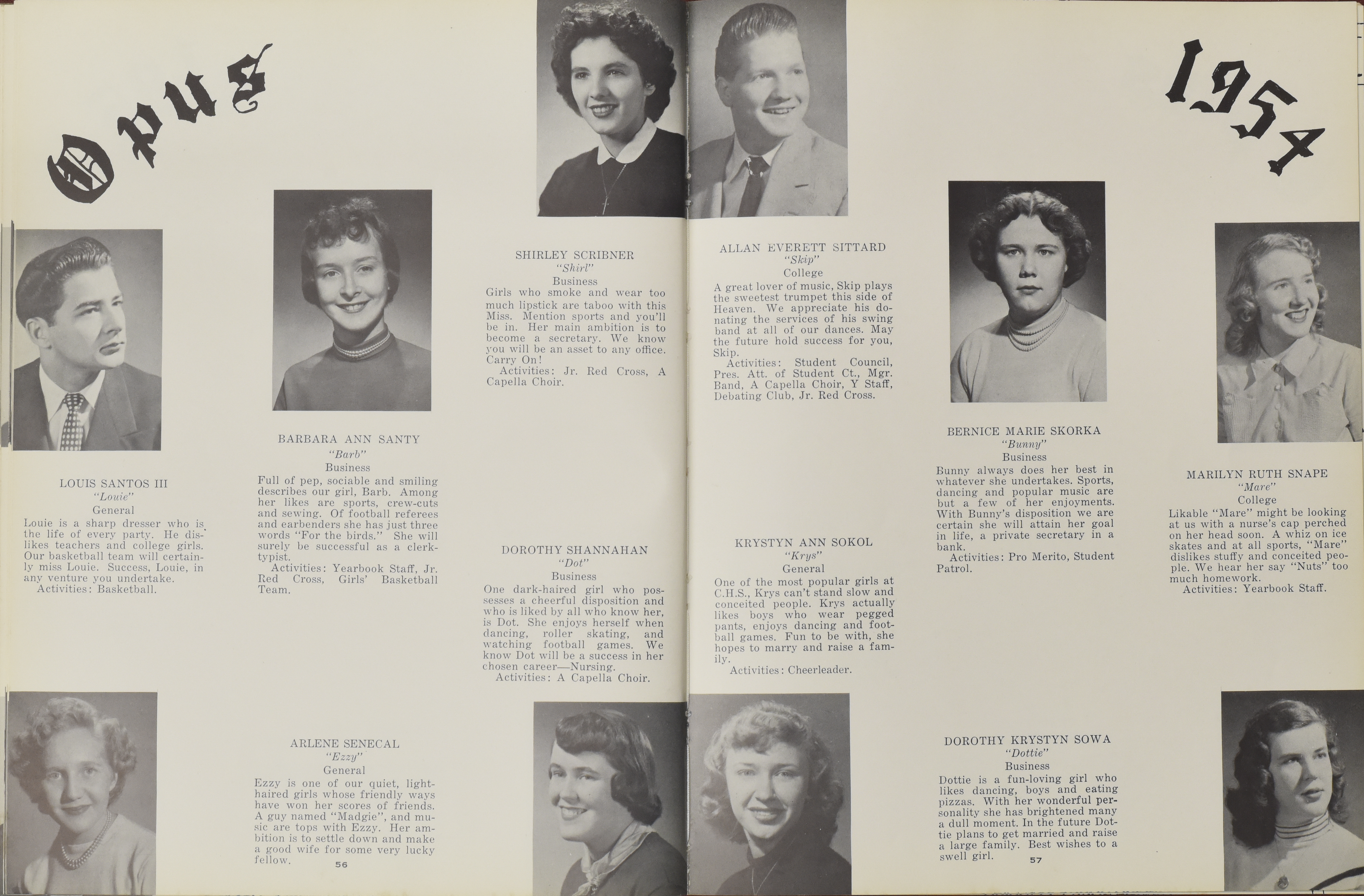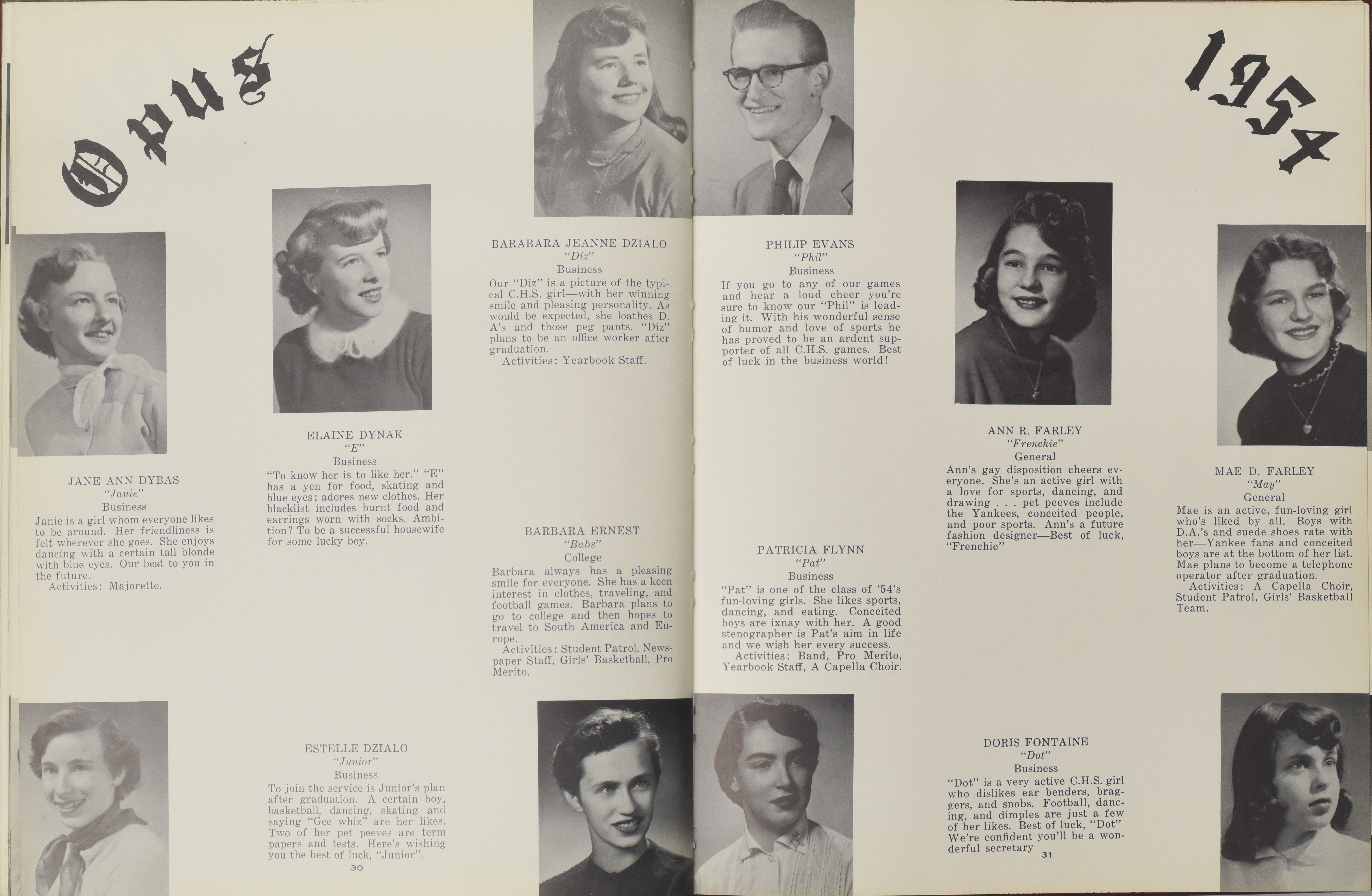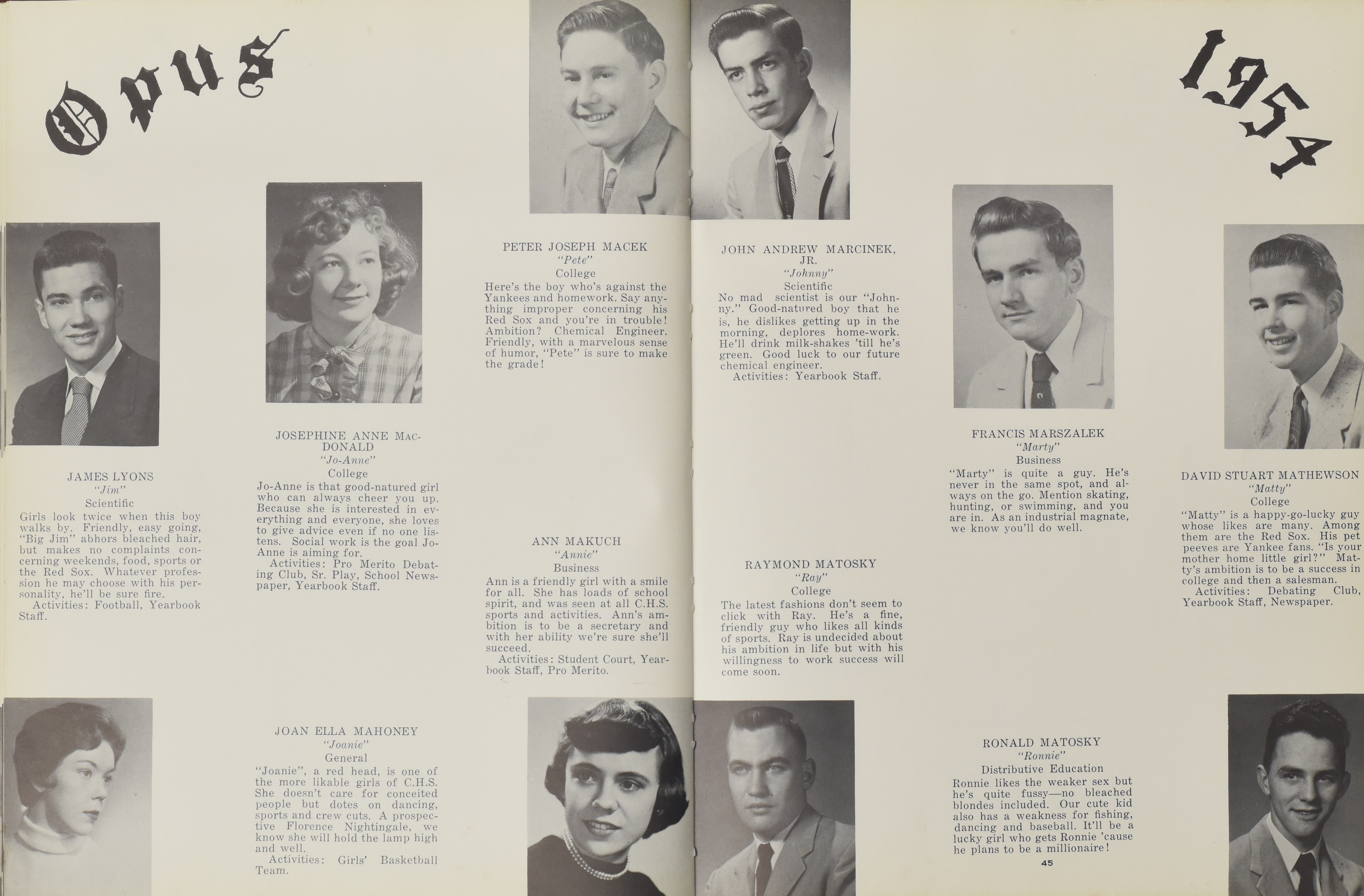 “Chicopee High School Yearbook 1954,” Chicopee Archives Online, accessed March 5, 2026, https://www.chicopeepubliclibrary.org/archives/items/show/8680.