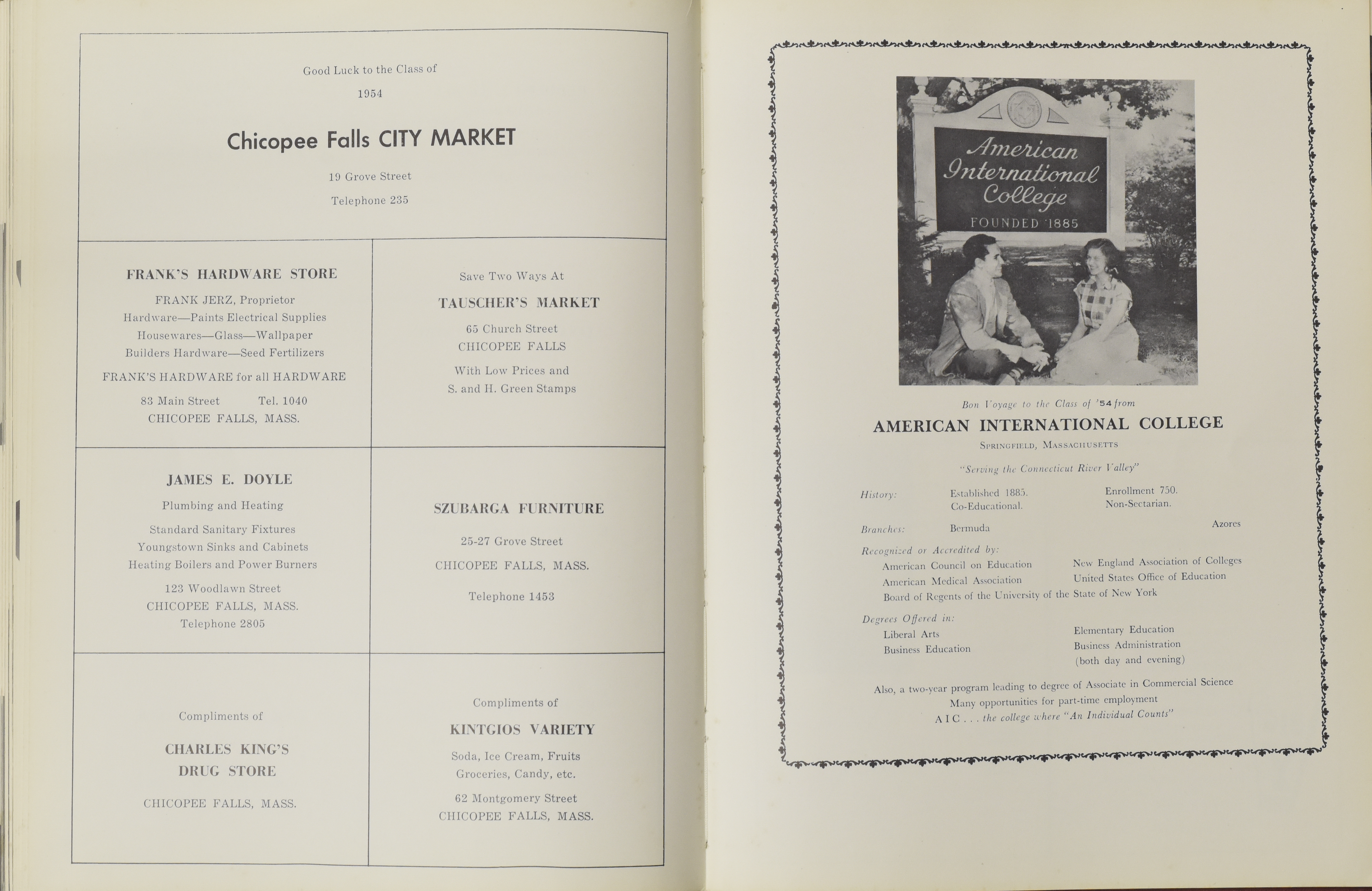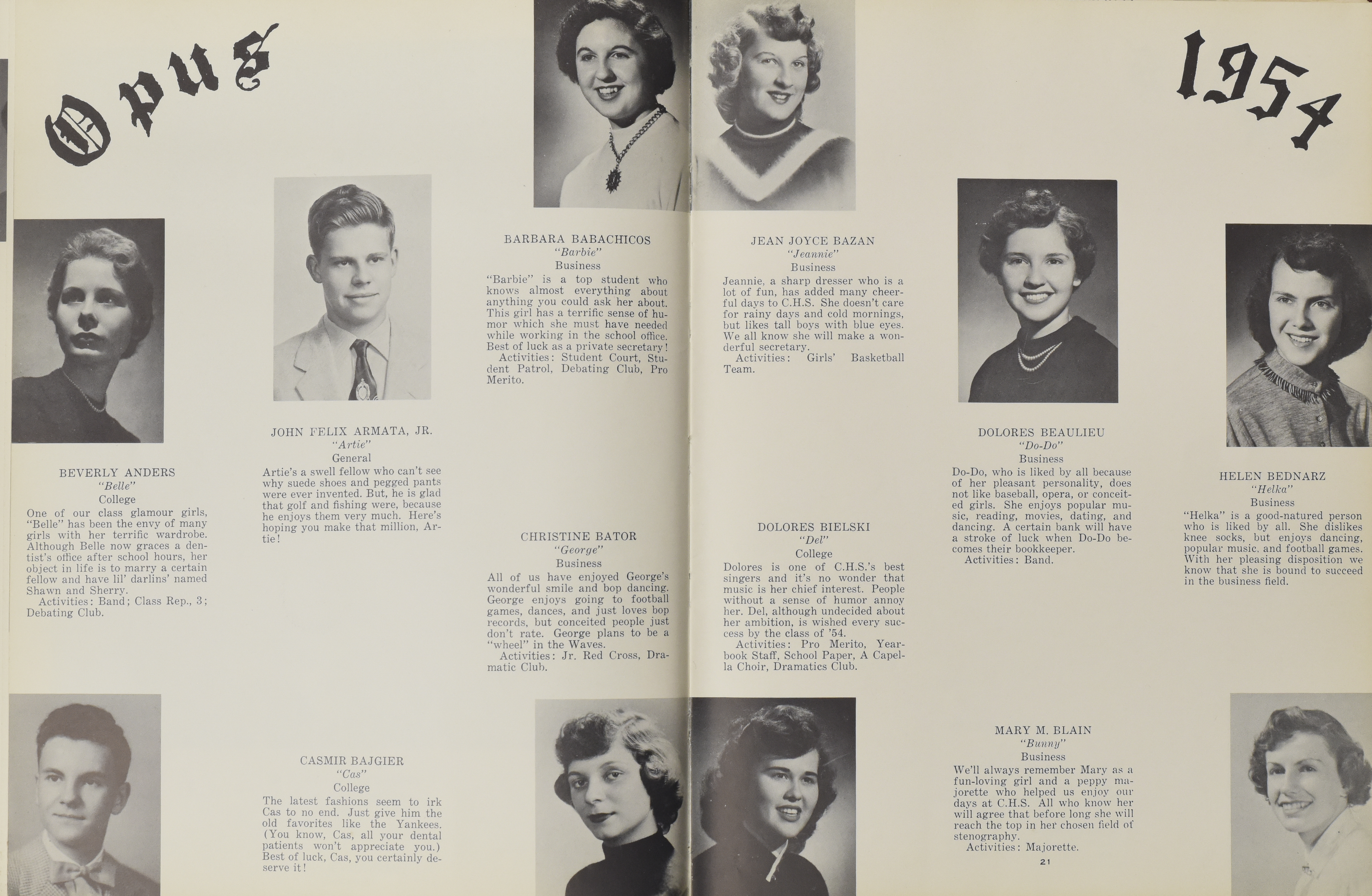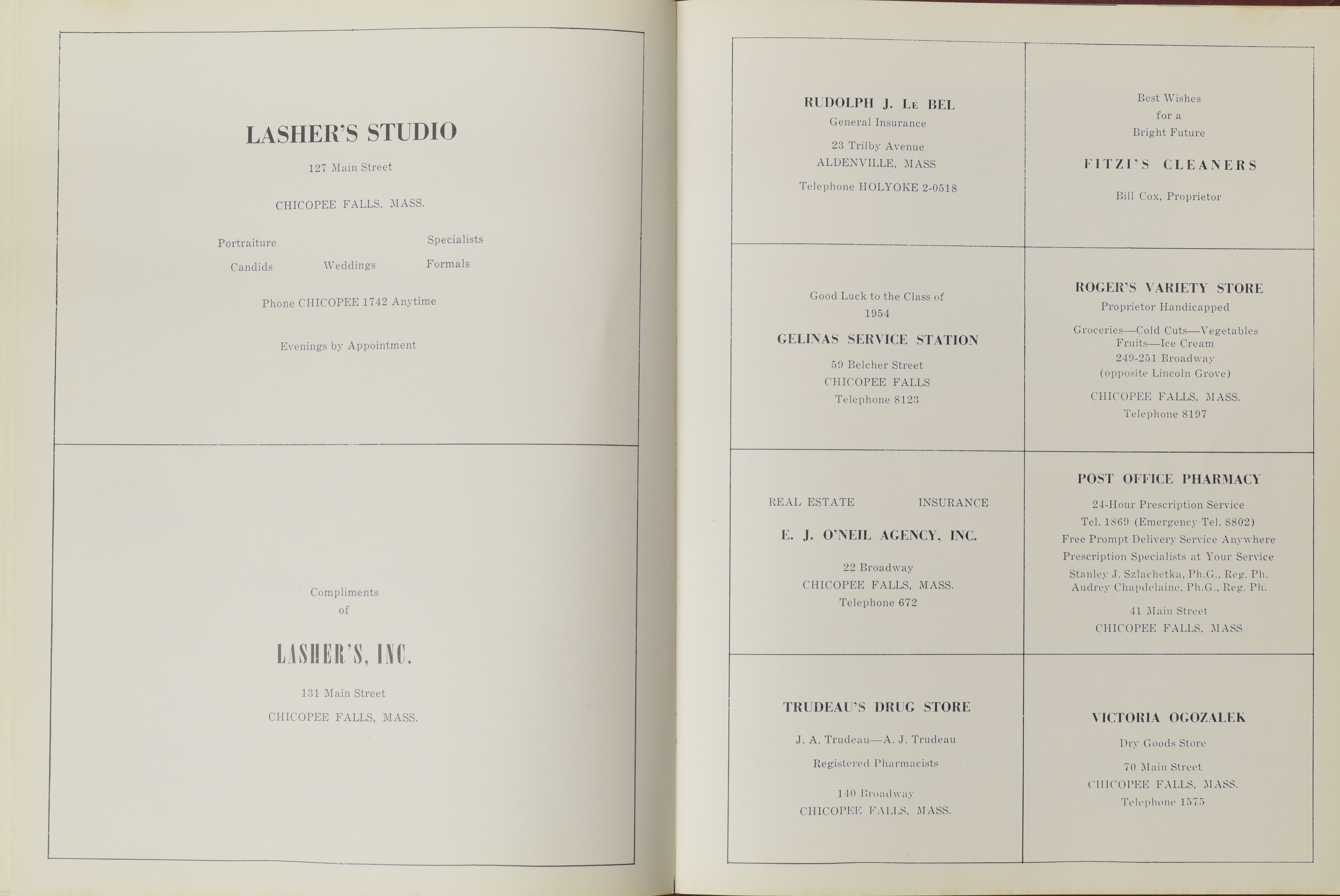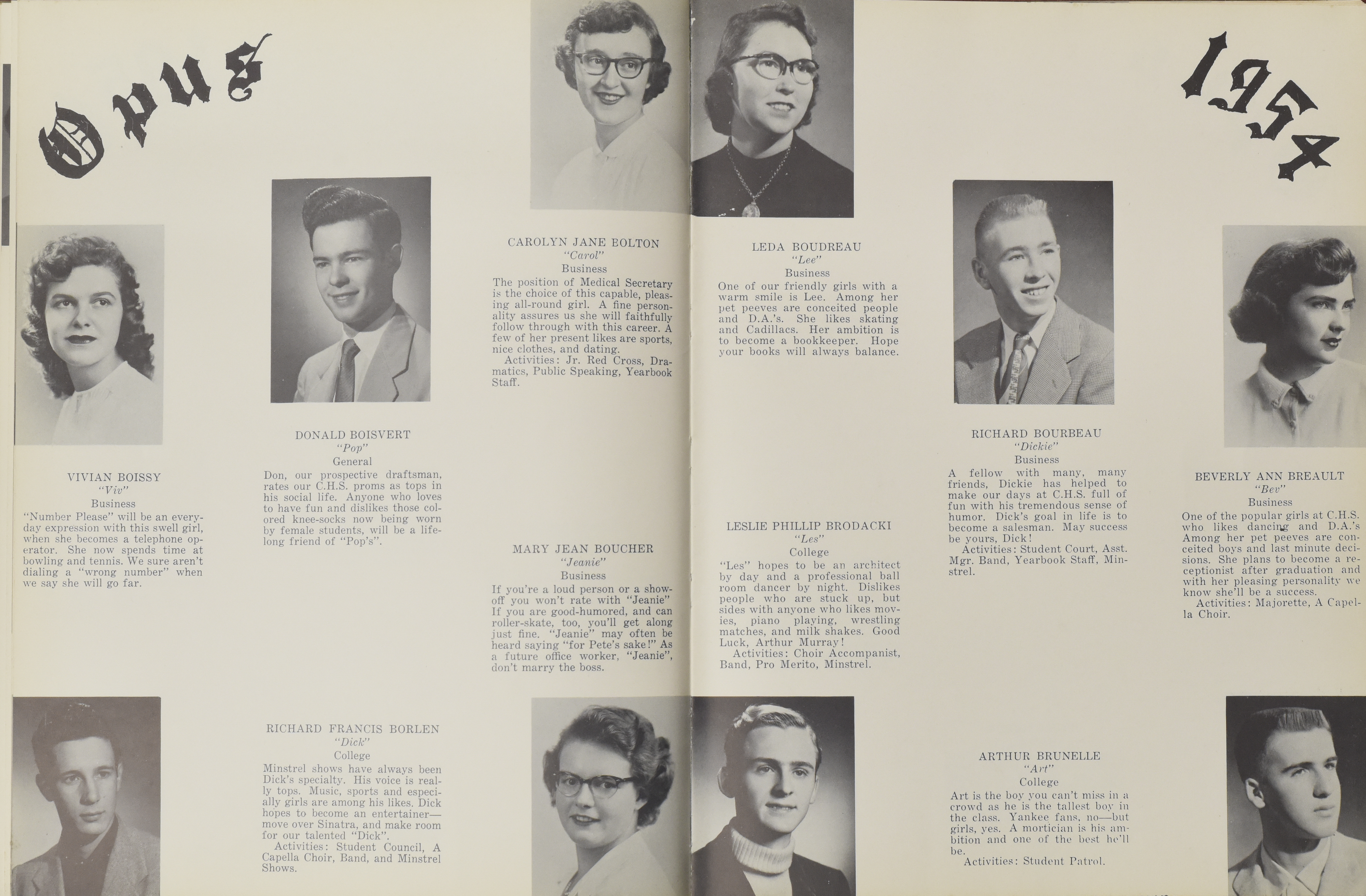 “Chicopee High School Yearbook 1954,” Chicopee Archives Online, accessed March 5, 2026, https://www.chicopeepubliclibrary.org/archives/items/show/8680.
