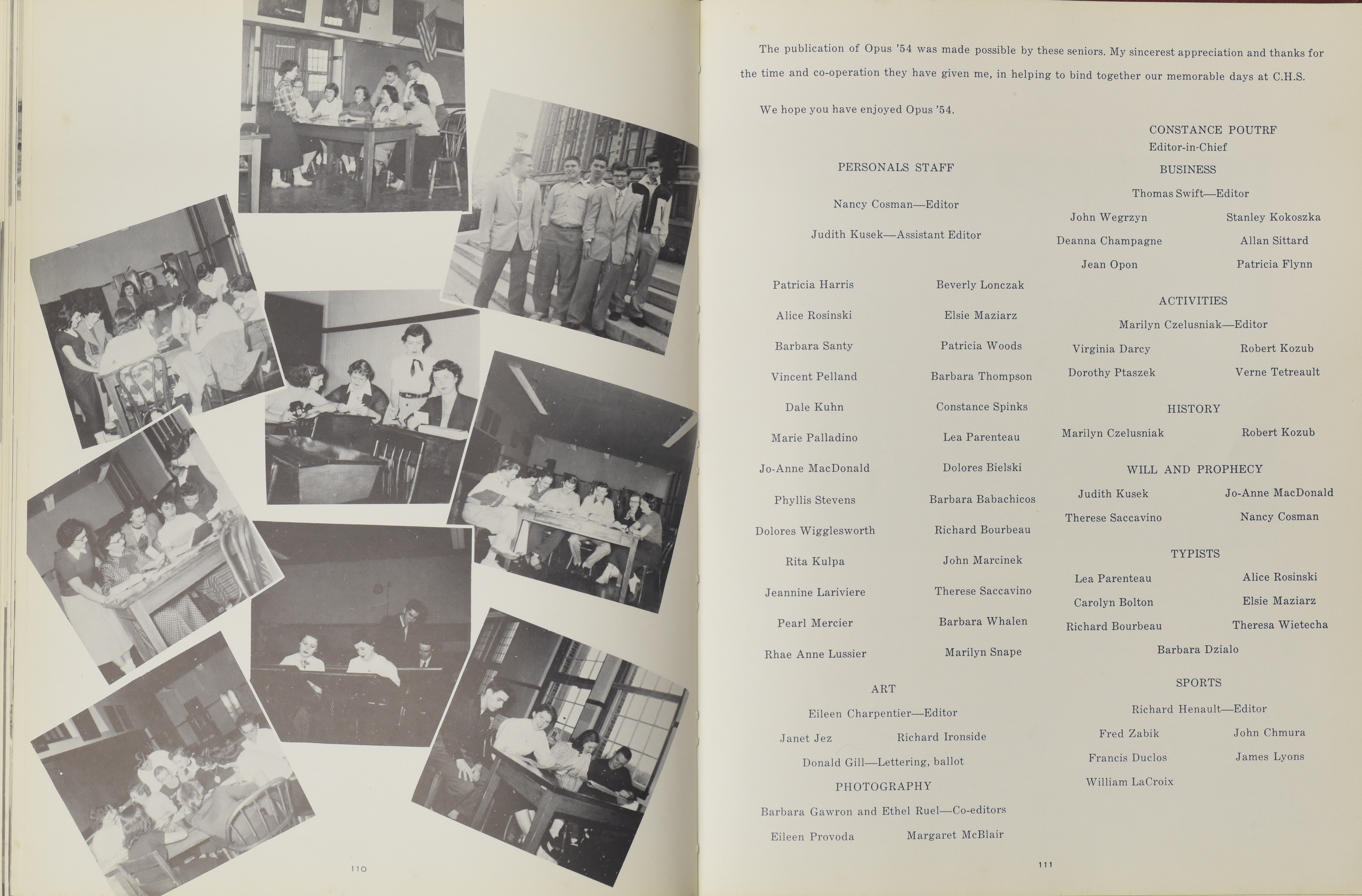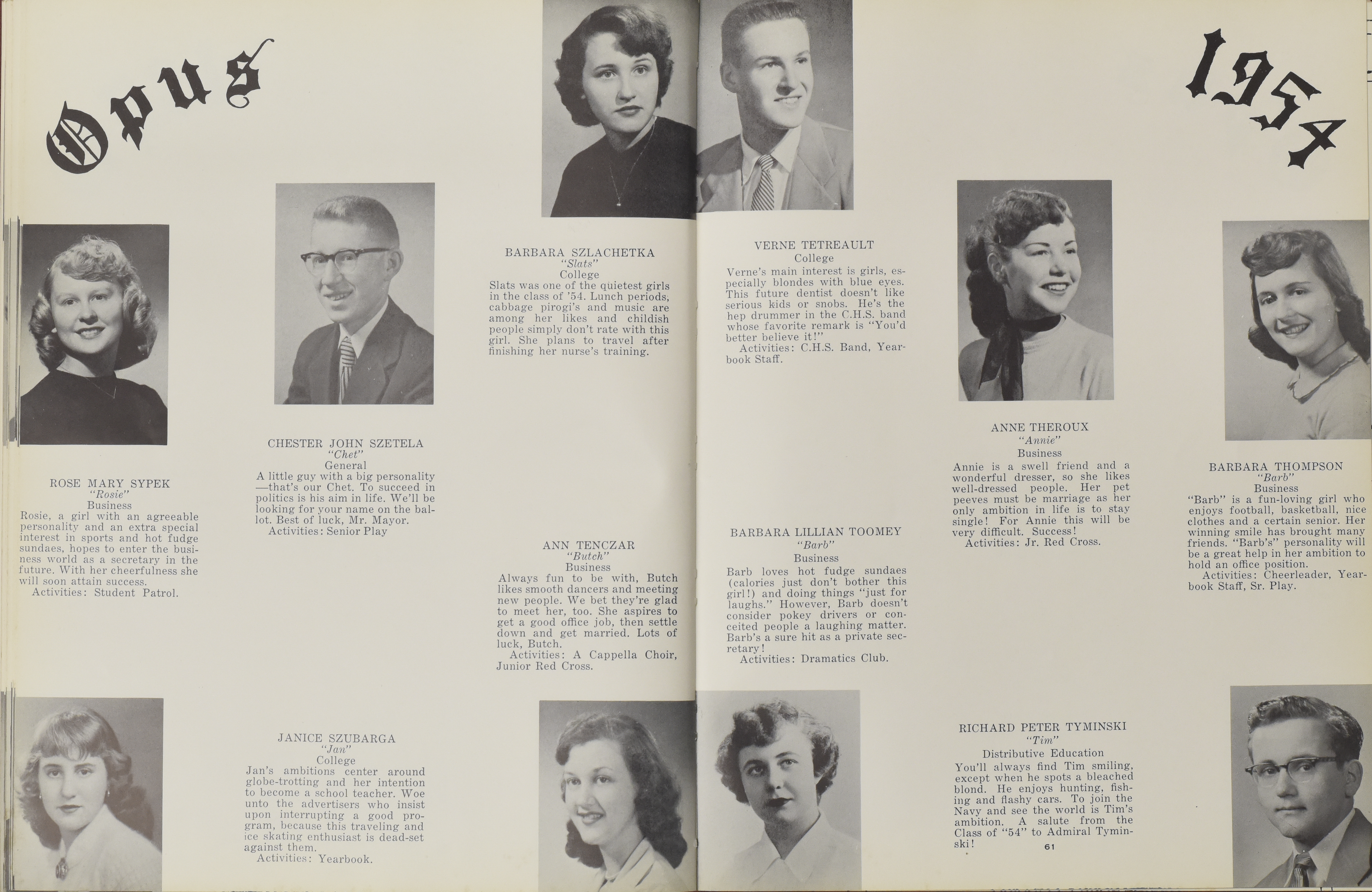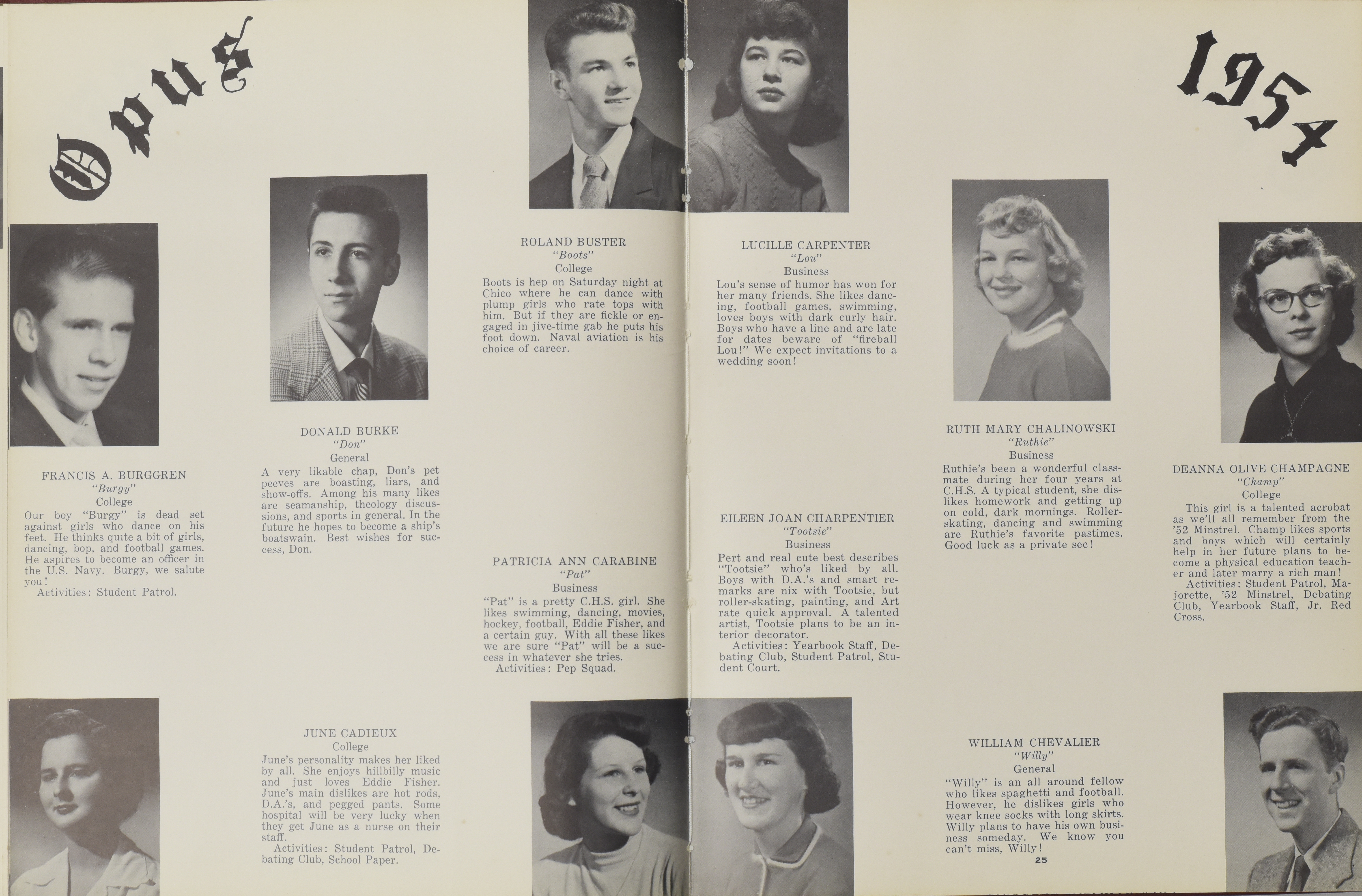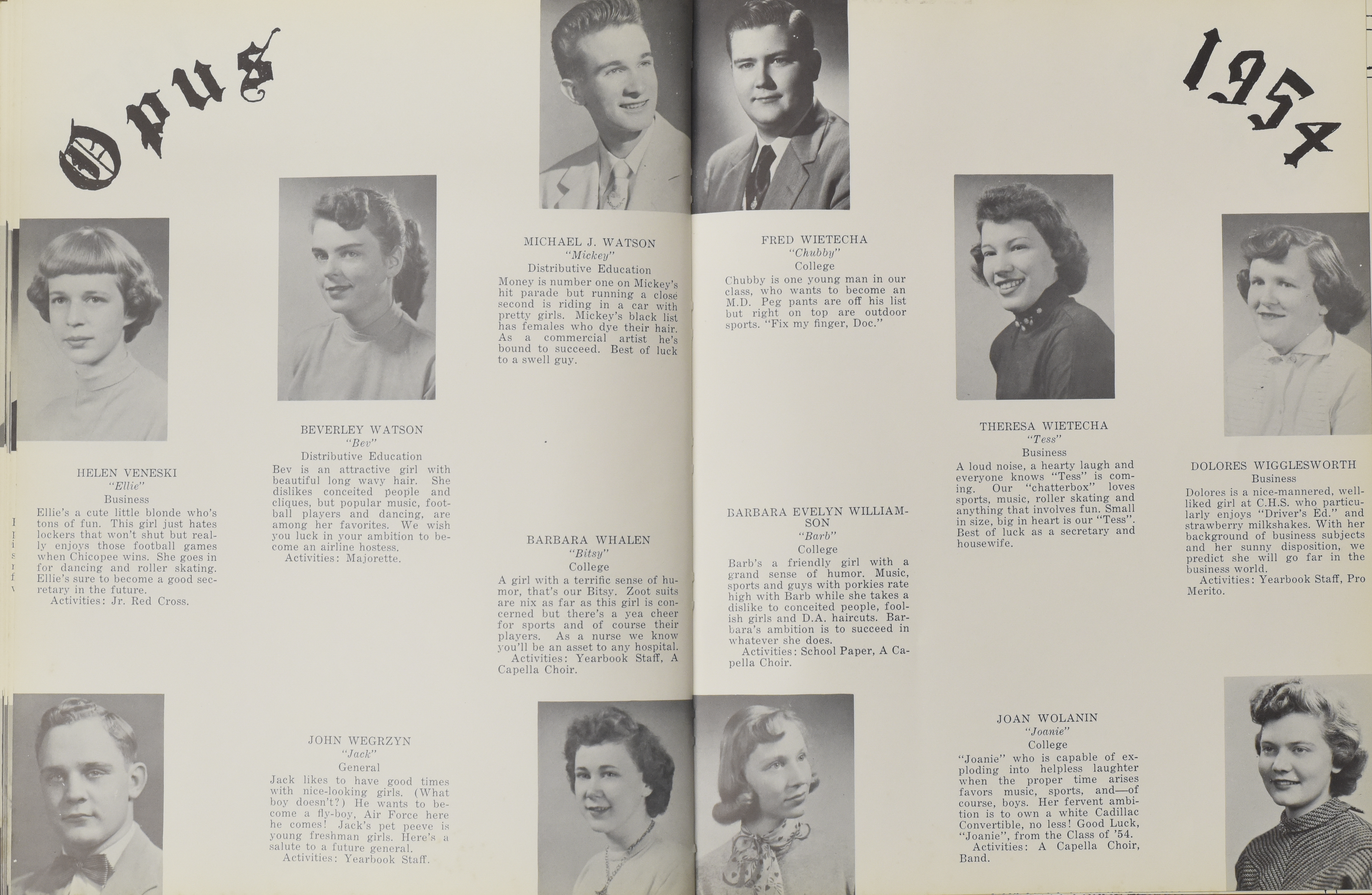 “Chicopee High School Yearbook 1954,” Chicopee Archives Online, accessed March 5, 2026, https://www.chicopeepubliclibrary.org/archives/items/show/8680.