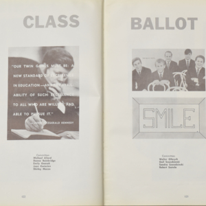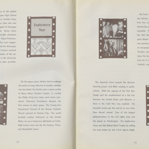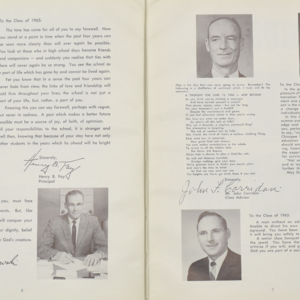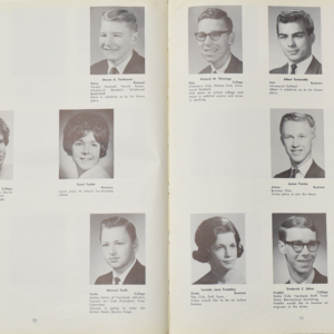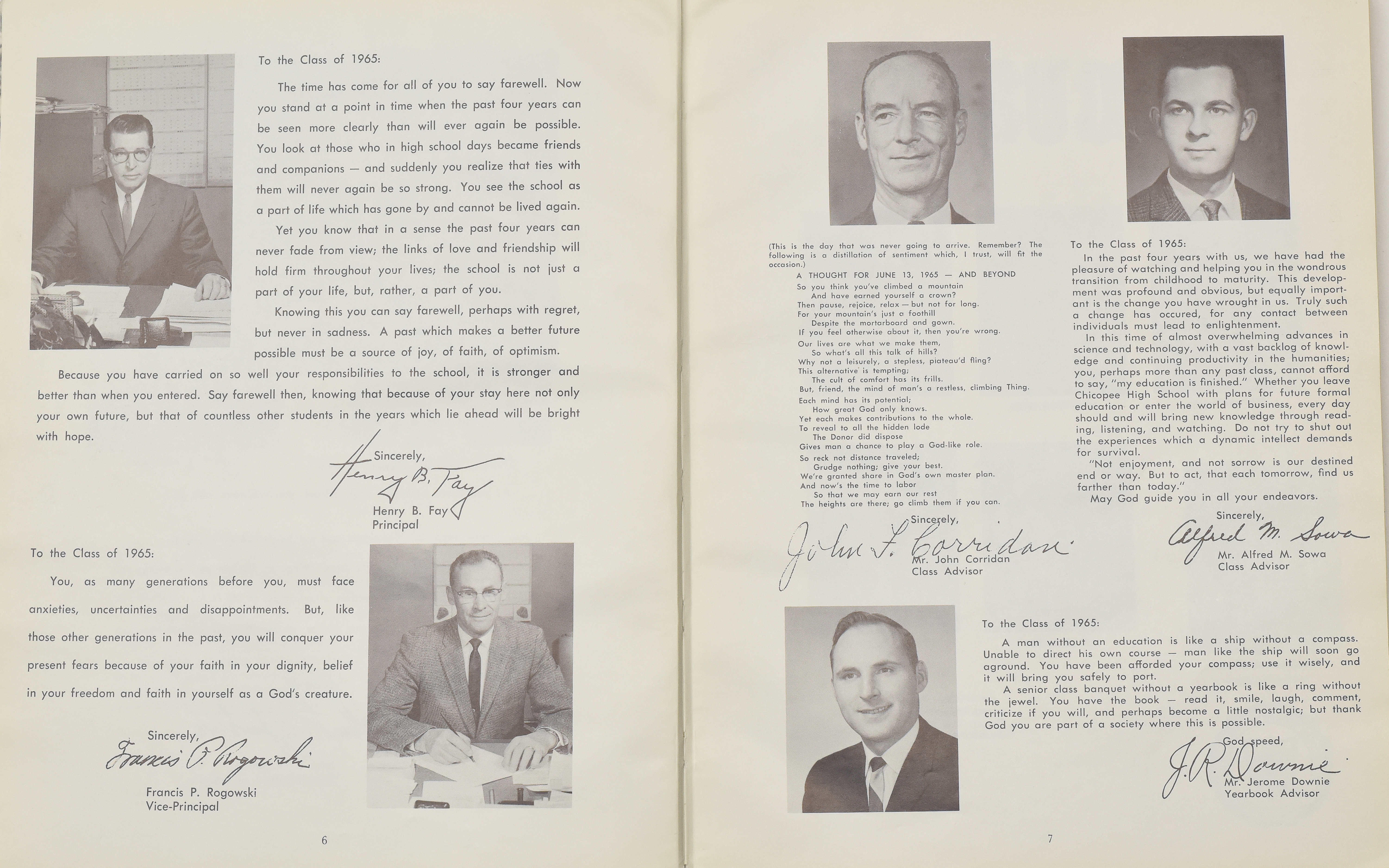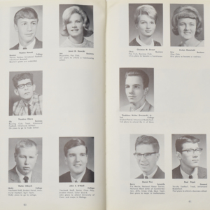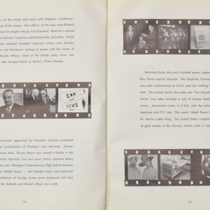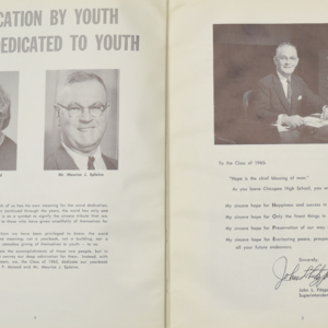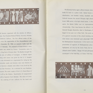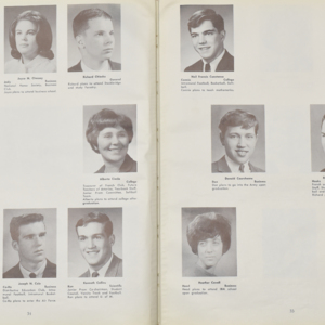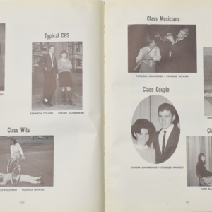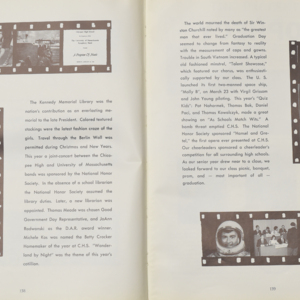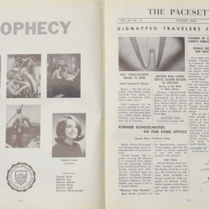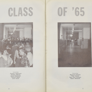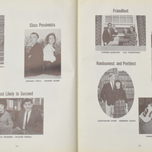 Yearbook for the class of 1965 of the Chicopee High School. Includes class photographs; individual senior portraits; clubs; sports; faculty; class will; casual photographs of students; dedications and sponser ads.