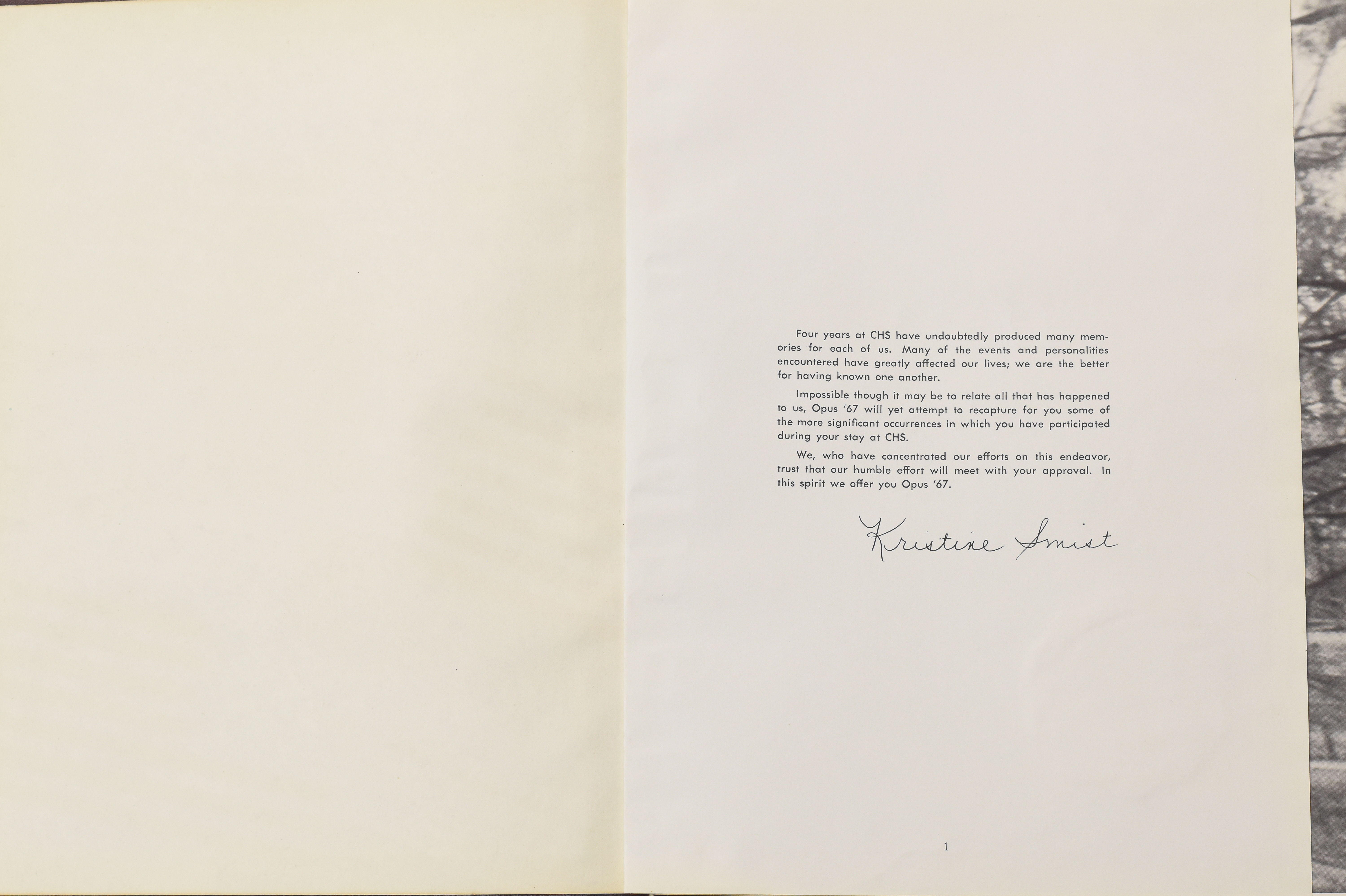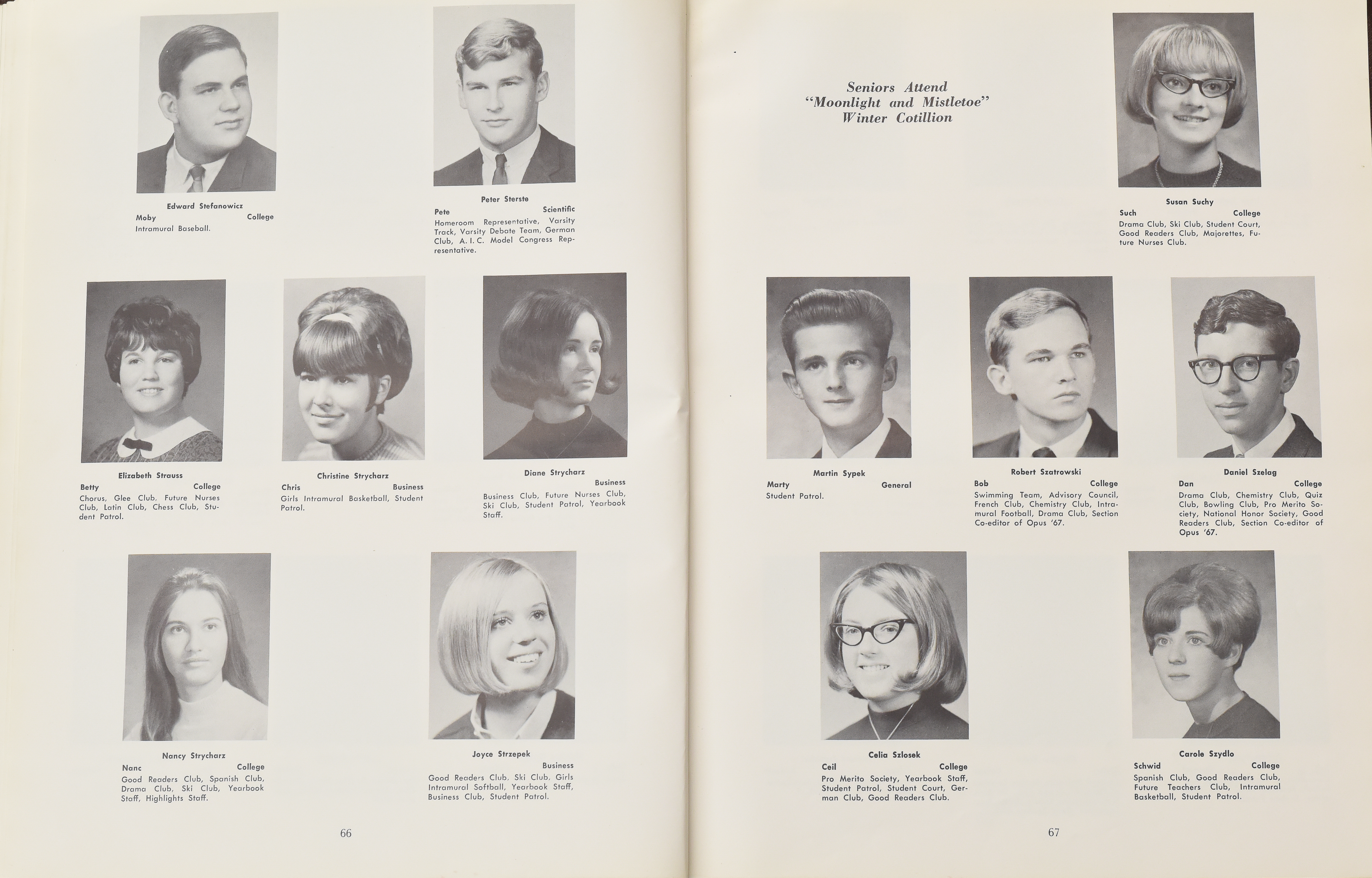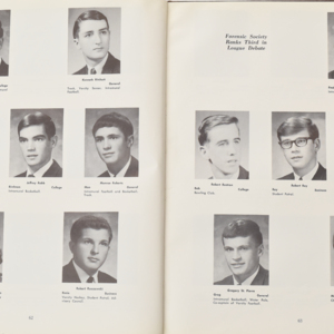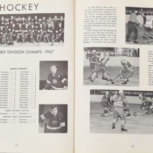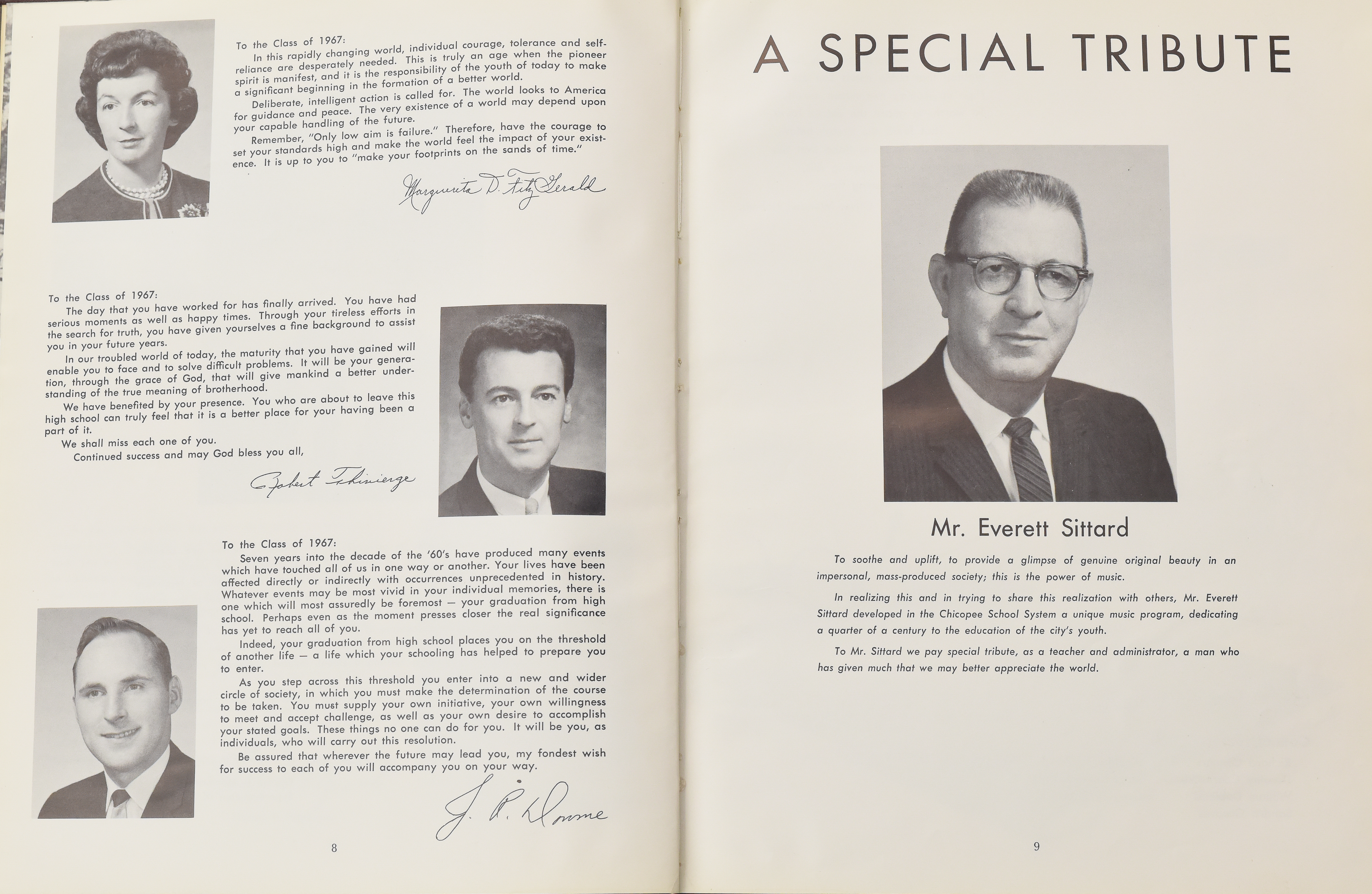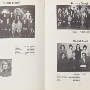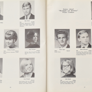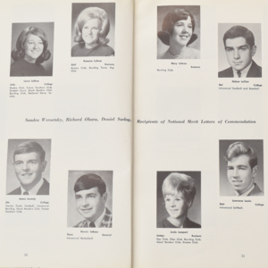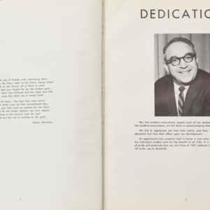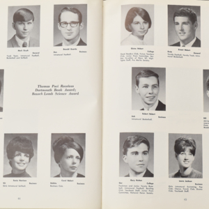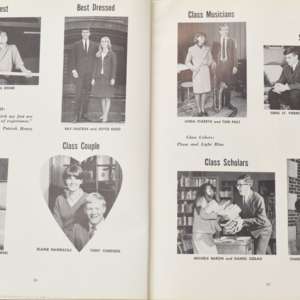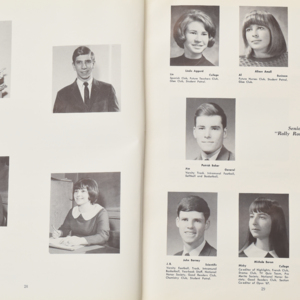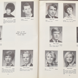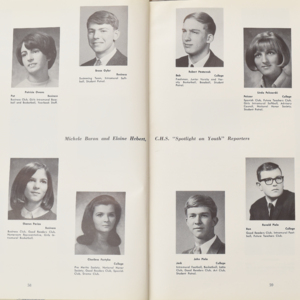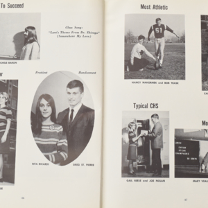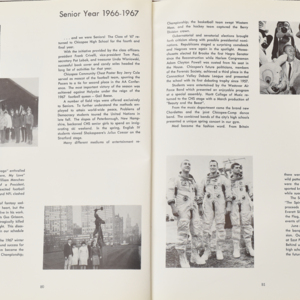 Yearbook for the class of 1967 of the Chicopee High School. Includes class photographs; individual senior portraits; clubs; sports; faculty; class will; casual photographs of students; dedications and sponser ads.