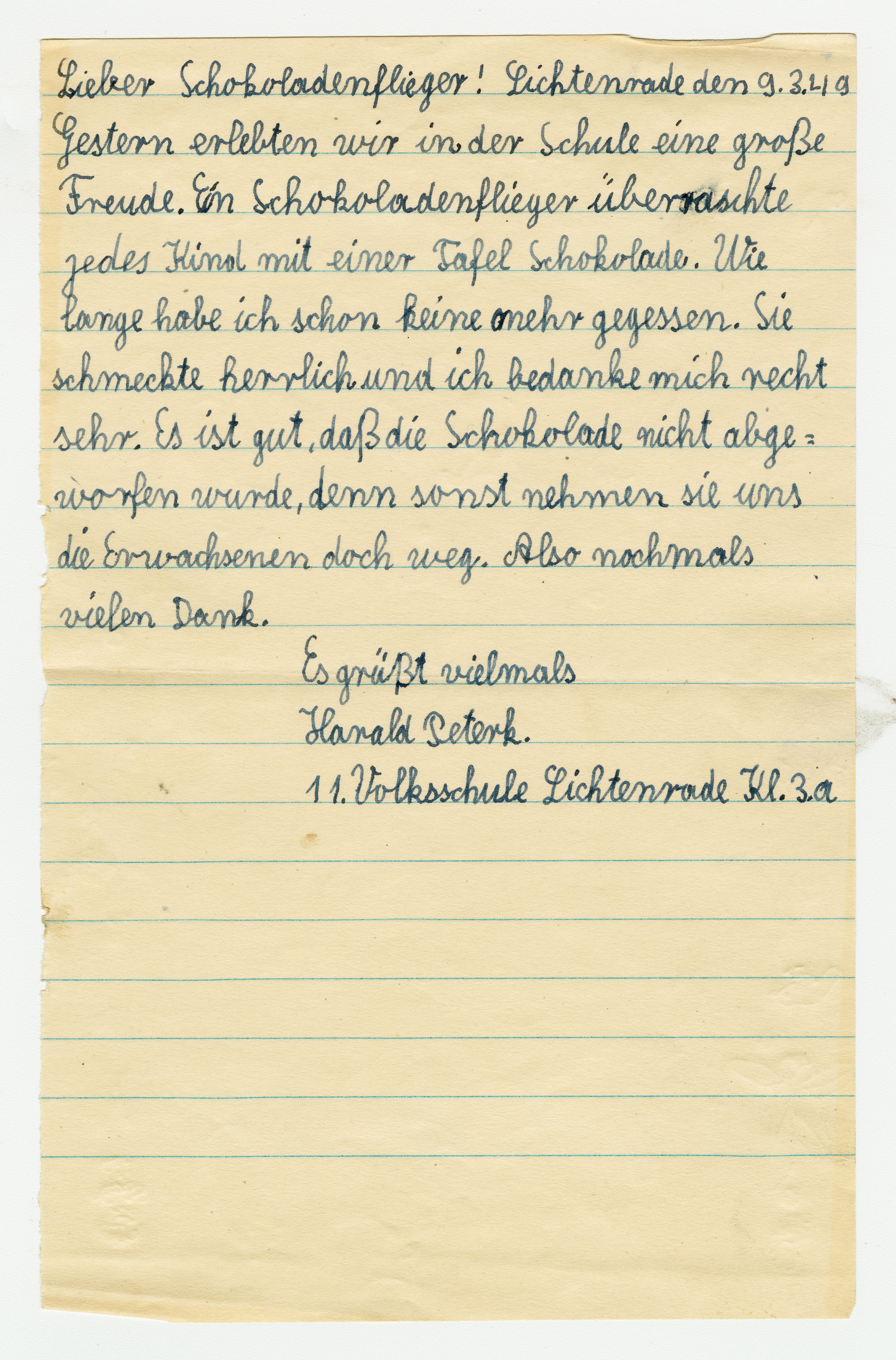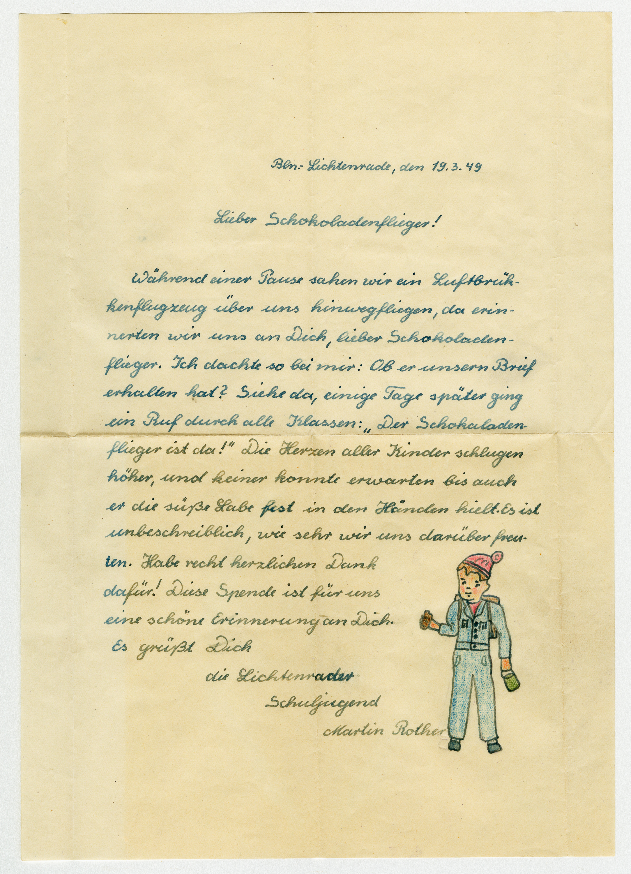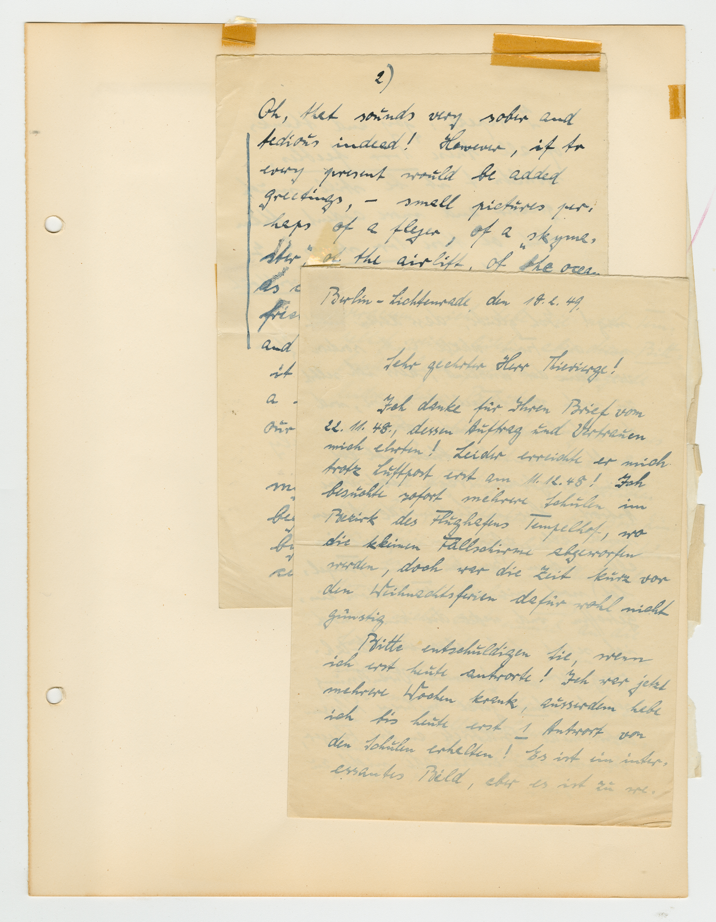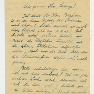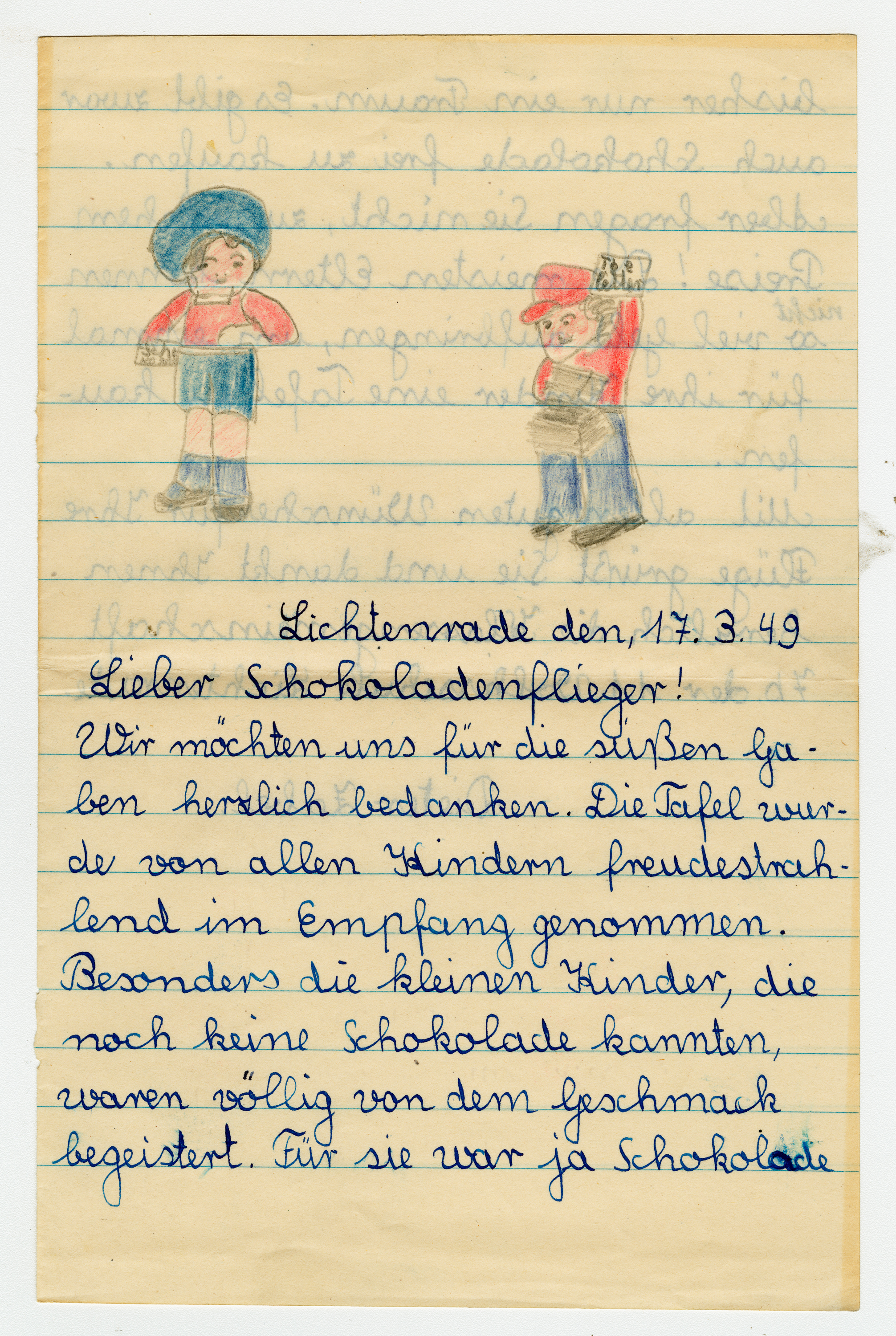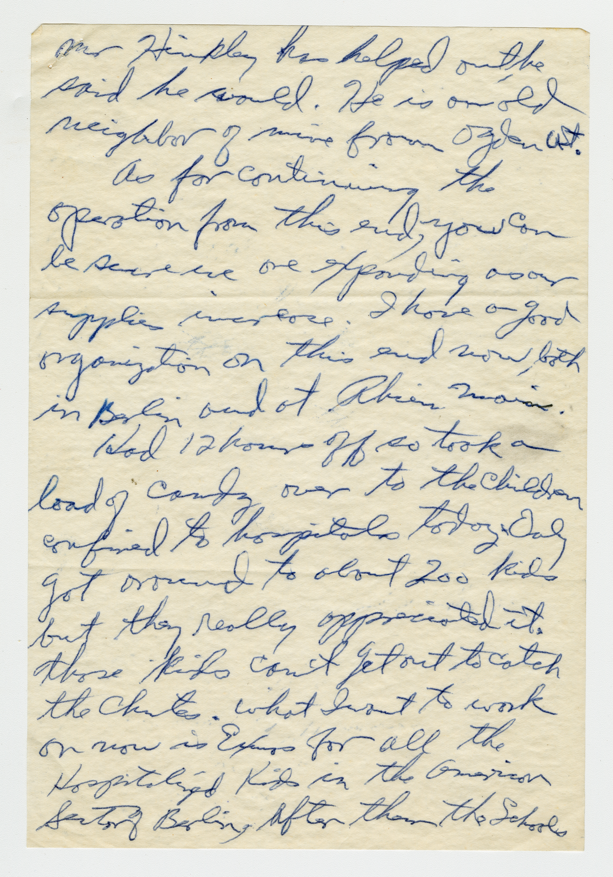 Operation Little Vittles was a goodwill mission to drop candy to German children during the Berlin Airlift of 1948-1949 and was headquartered in Chicopee, Massachusetts. This scrapbook is a record of the Operation Little Vittles Committee and provides information about the group of volunteers who were involved. The scrapbook contains official minutes of their meetings, the committee’s constitution and rules of operation, newspaper clippings, handwritten letters in German from children who received candy during the drops and a few photographs. The Little Vittles committee was responsible for coordinating and gathering candy and handkerchiefs to be delivered to Westover Air Force Base. From there the supplies were brought to Germany to be dropped to children in West Berlin.