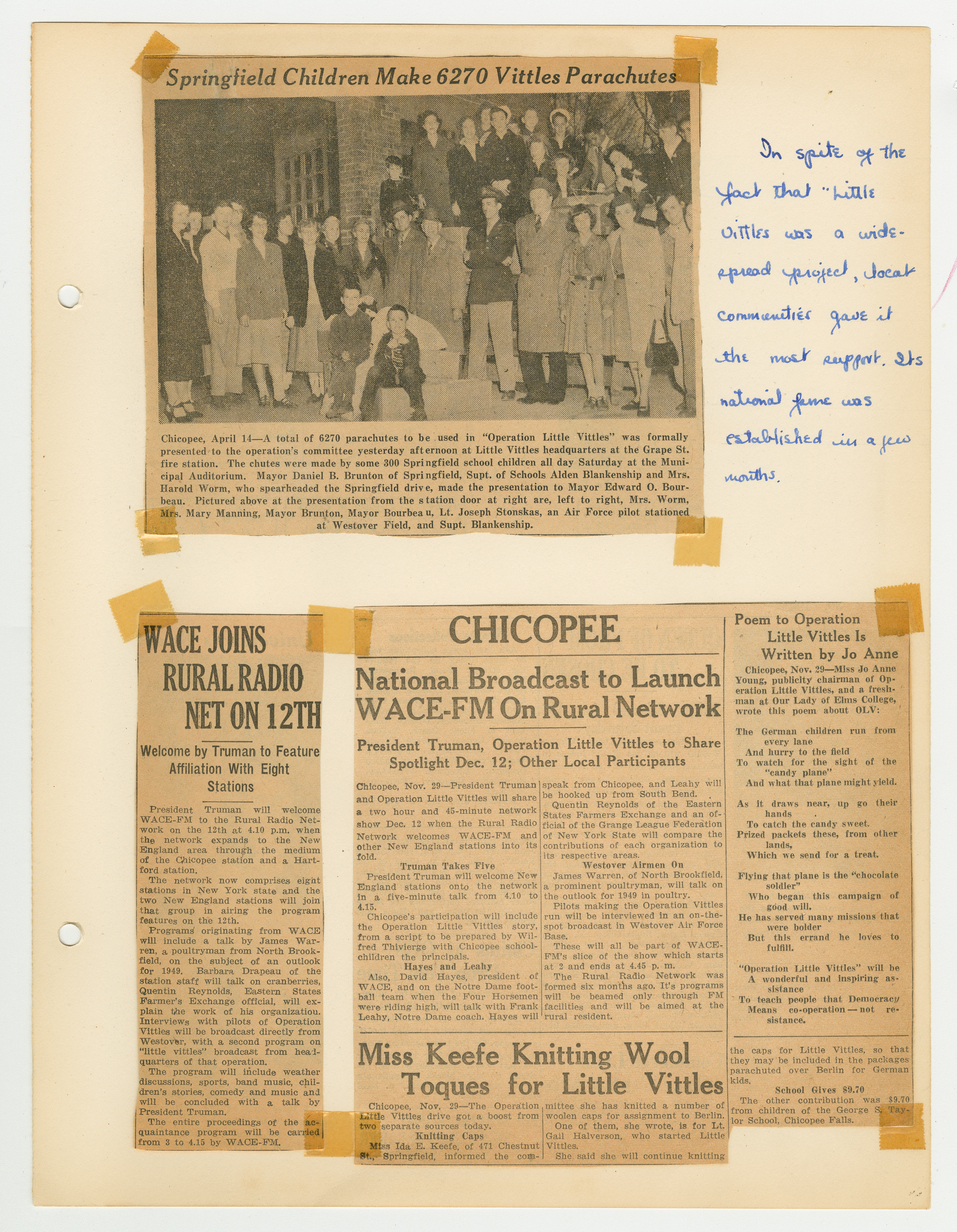 Operation Little Vittles Committee, “Scrapbook of the Operation Little Vittles Committee,” Chicopee Archives Online, accessed March 5, 2026, https://www.chicopeepubliclibrary.org/archives/items/show/8698.