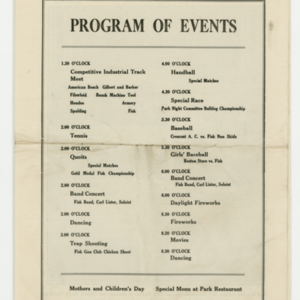 The Fisk Tire Company's Social and Athletic Association events and happenings Labor Day weekend 1919.