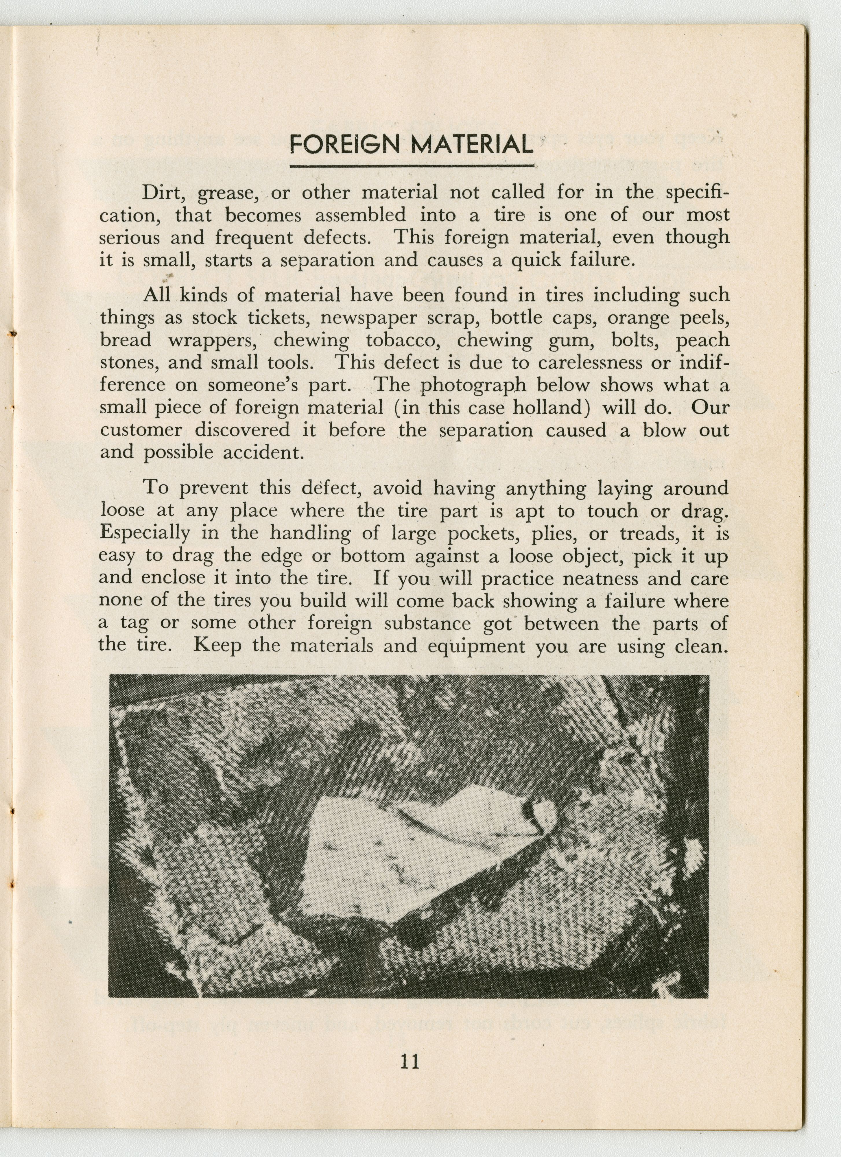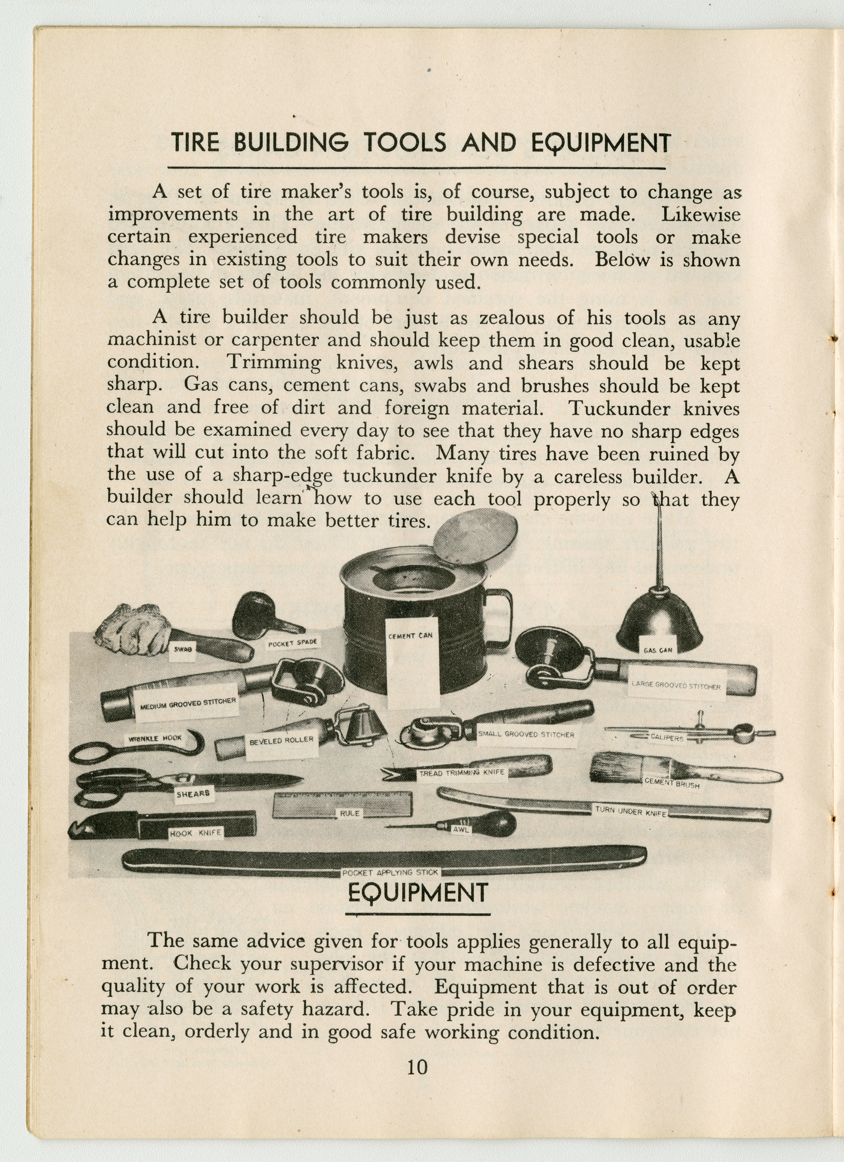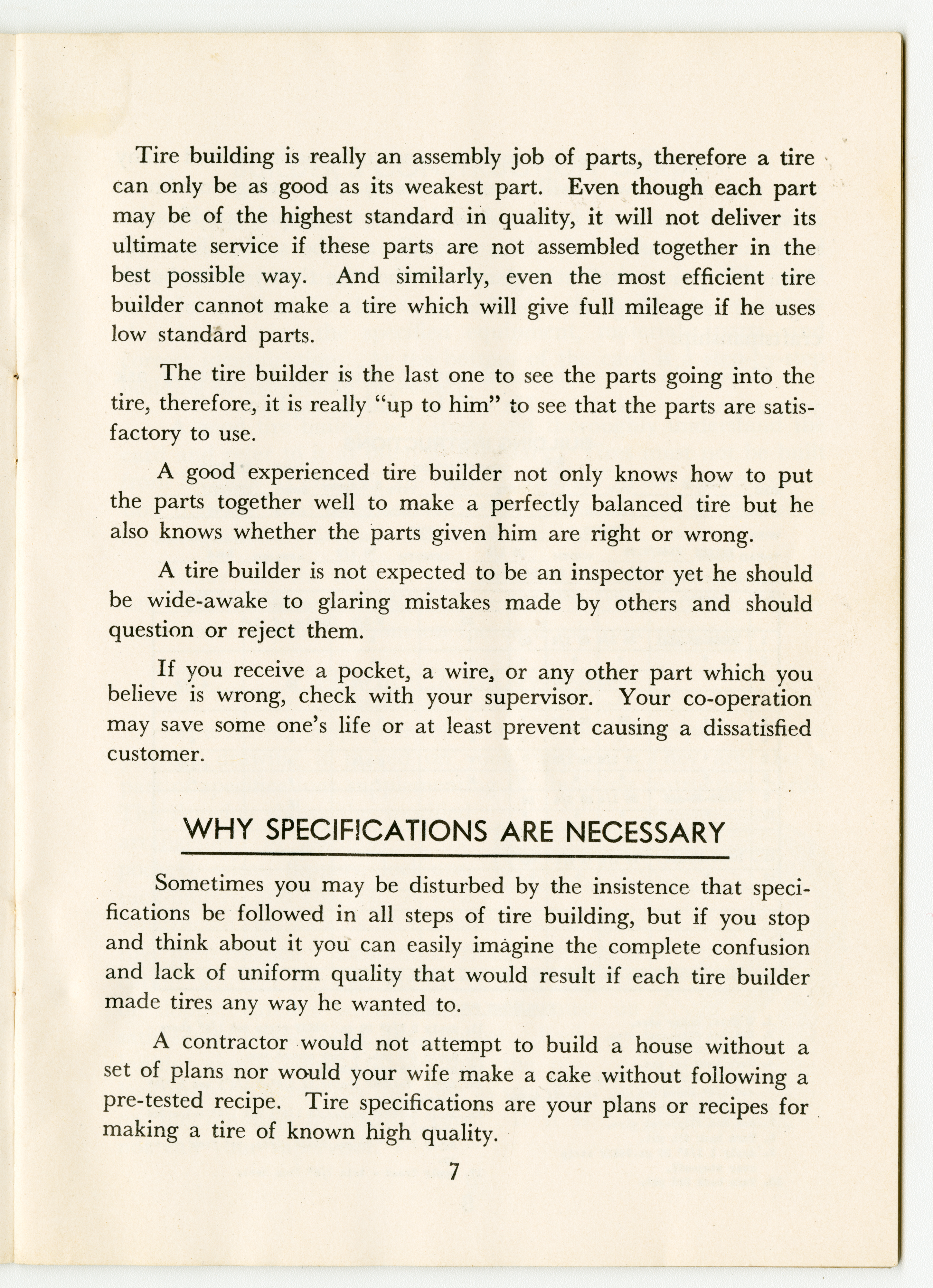 A small handbook for Fisk Tire Company employees produced and published by the Fisk Tire Company. The book guides employess through several of the processes involved in making tires, what makes up the parts of a tire and outlines safety rules and instructions. It was donated to the library by family of former Fisk employee Mary Joy, who worked at the Chicopee Falls Plant starting in 1937.