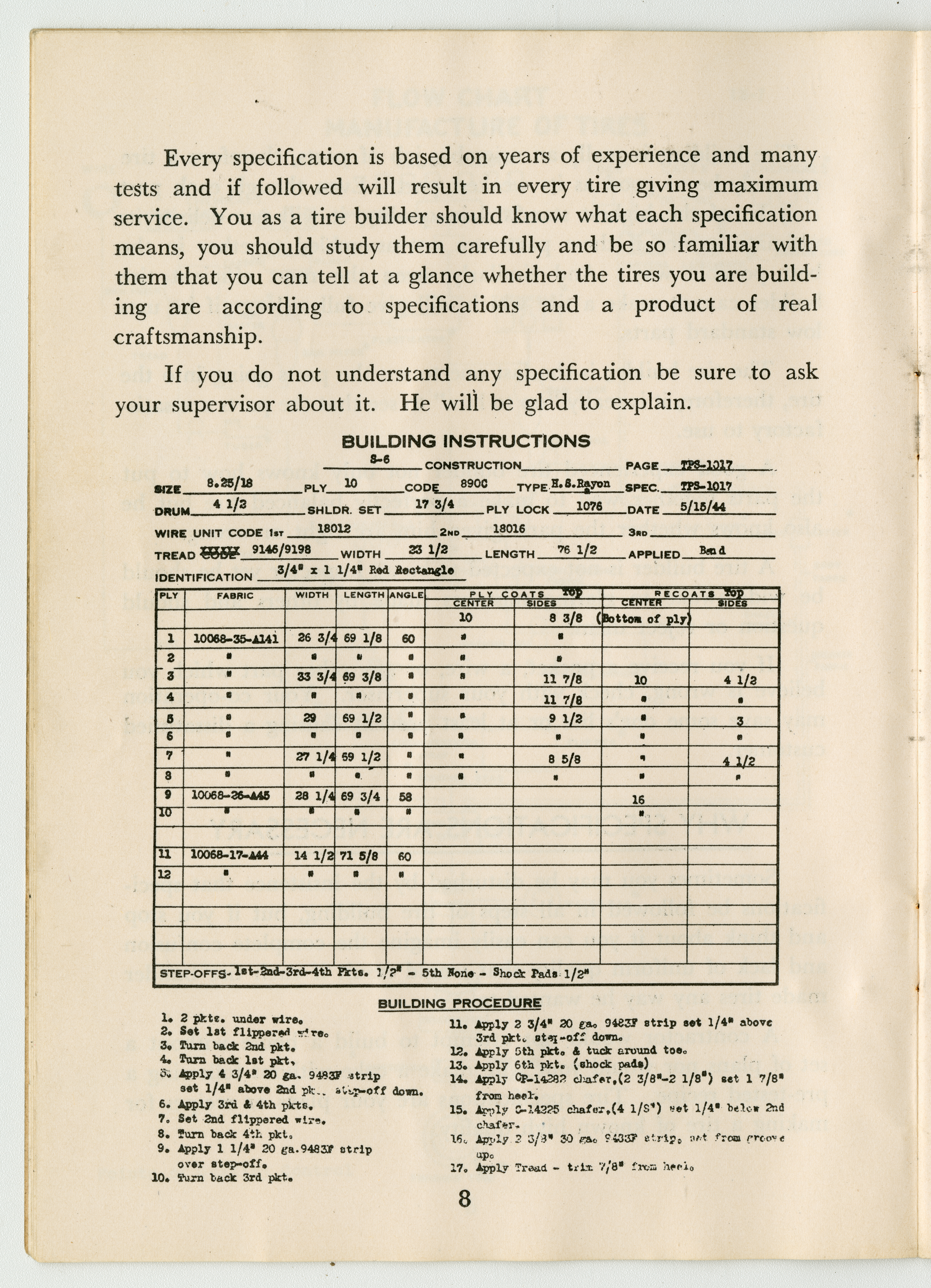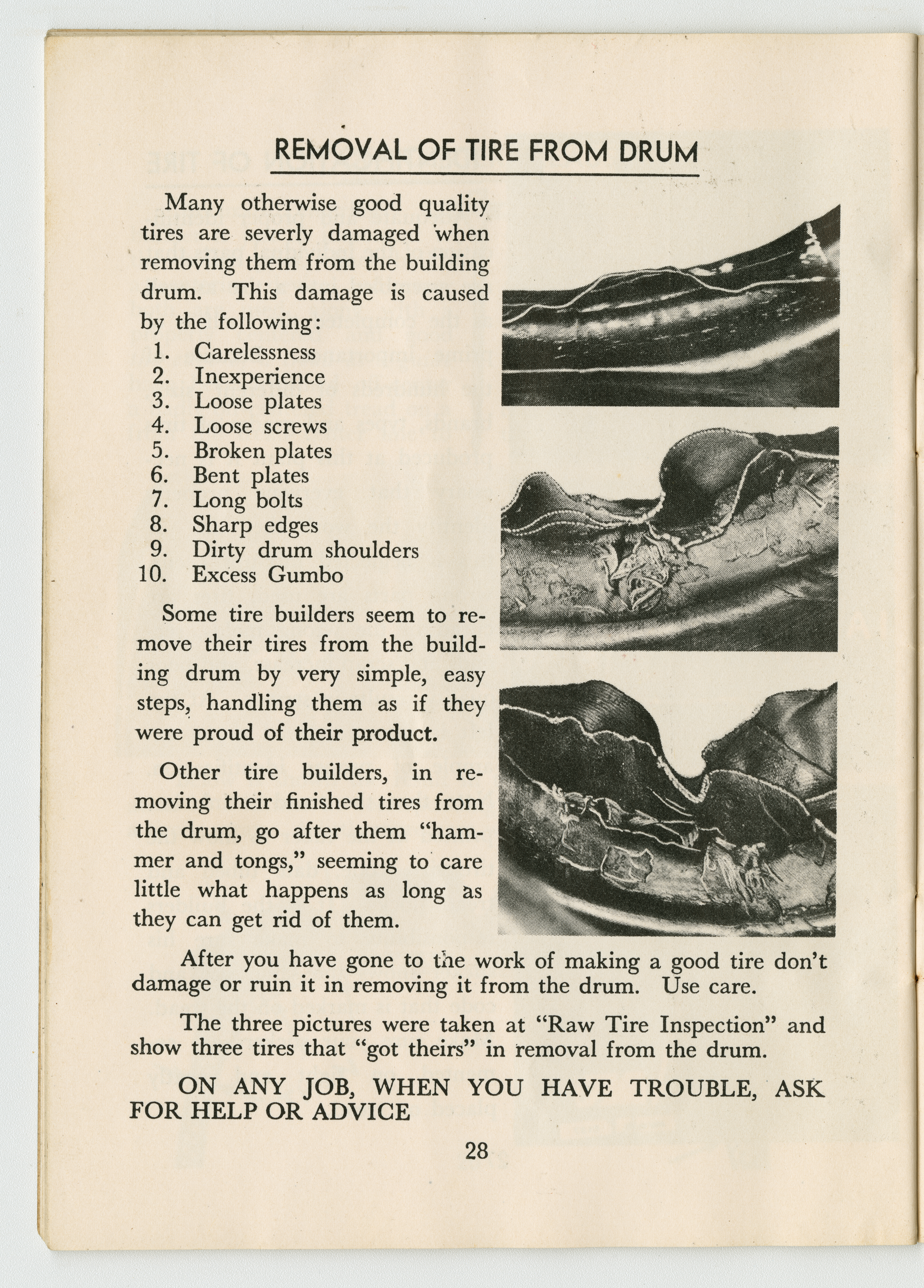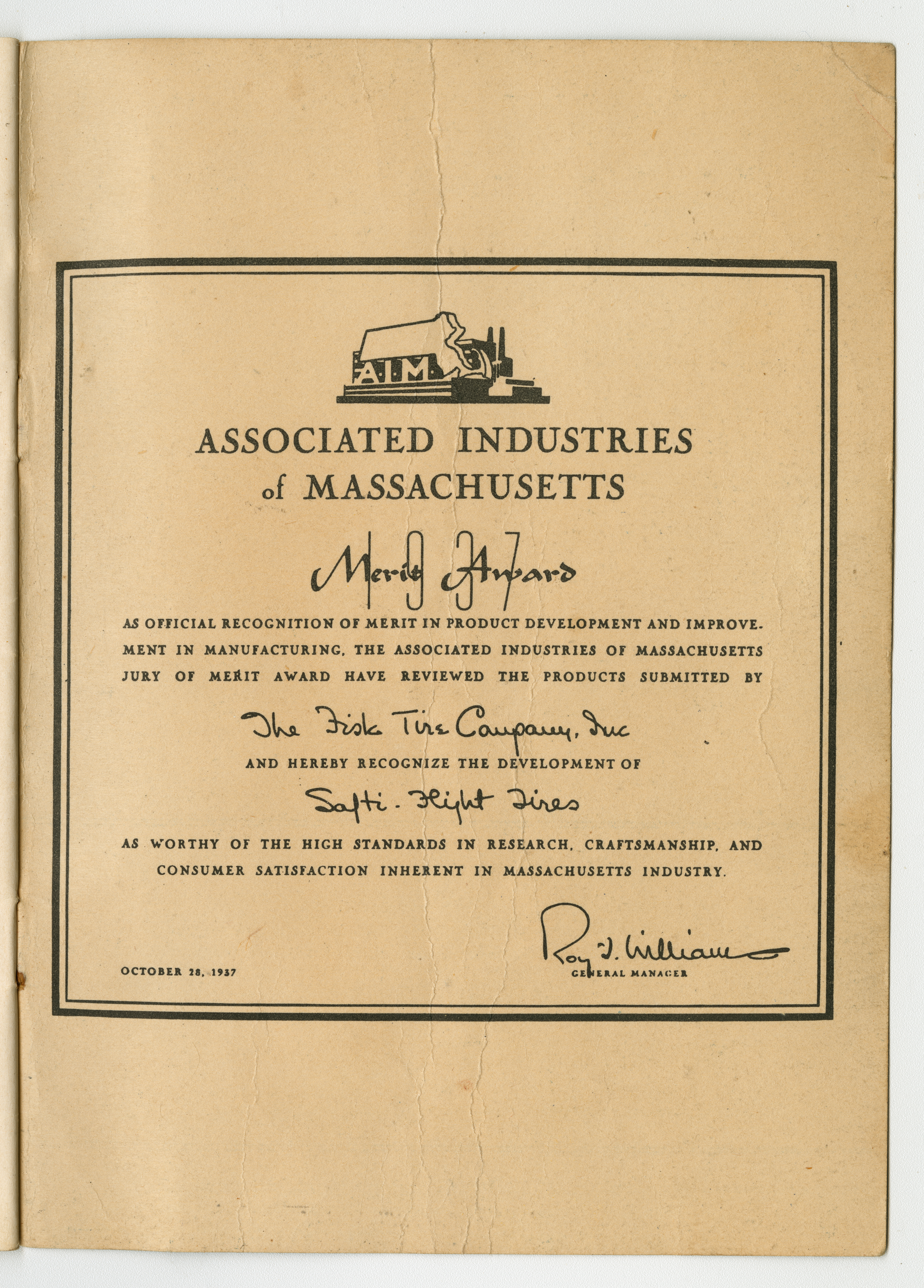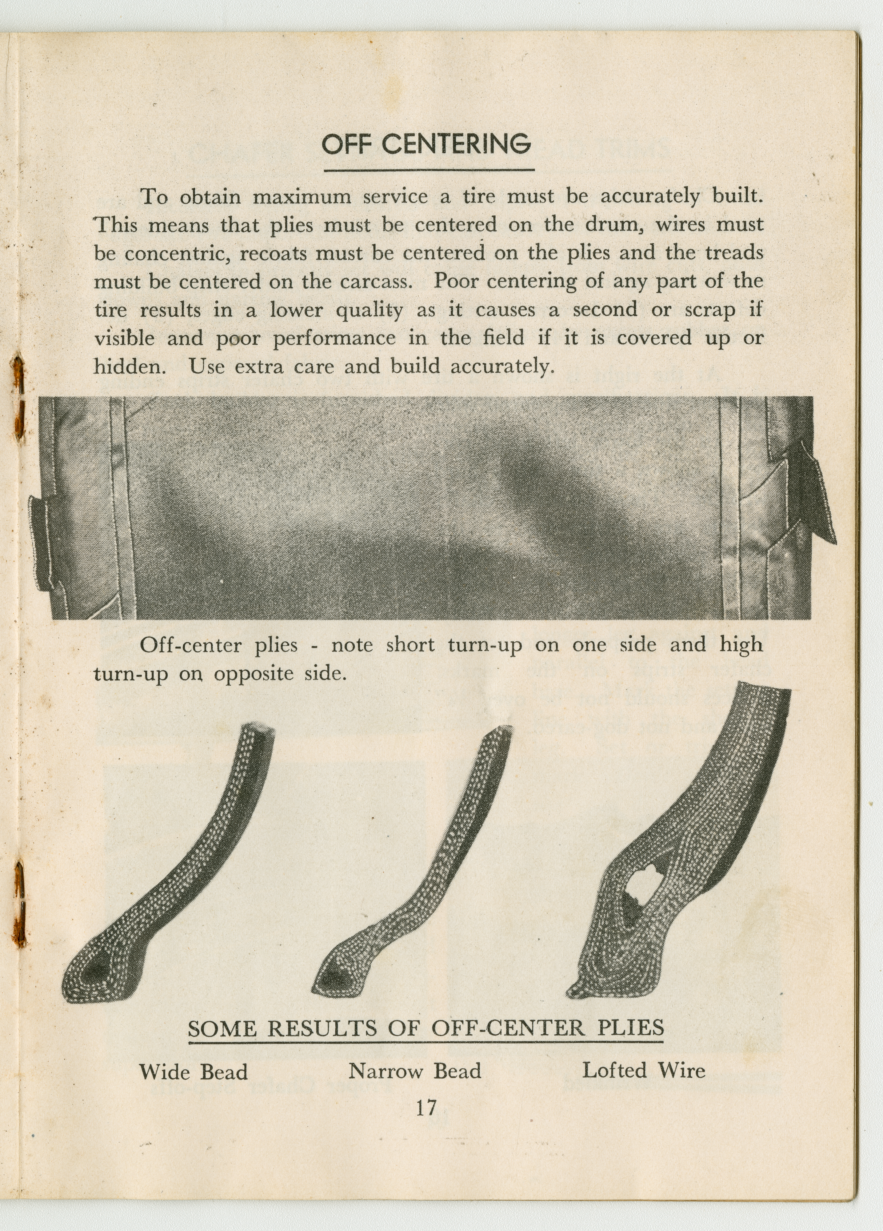 A small handbook for Fisk Tire Company employees produced and published by the Fisk Tire Company. The book guides employess through several of the processes involved in making tires, what makes up the parts of a tire and outlines safety rules and instructions. It was donated to the library by family of former Fisk employee Mary Joy, who worked at the Chicopee Falls Plant starting in 1937.