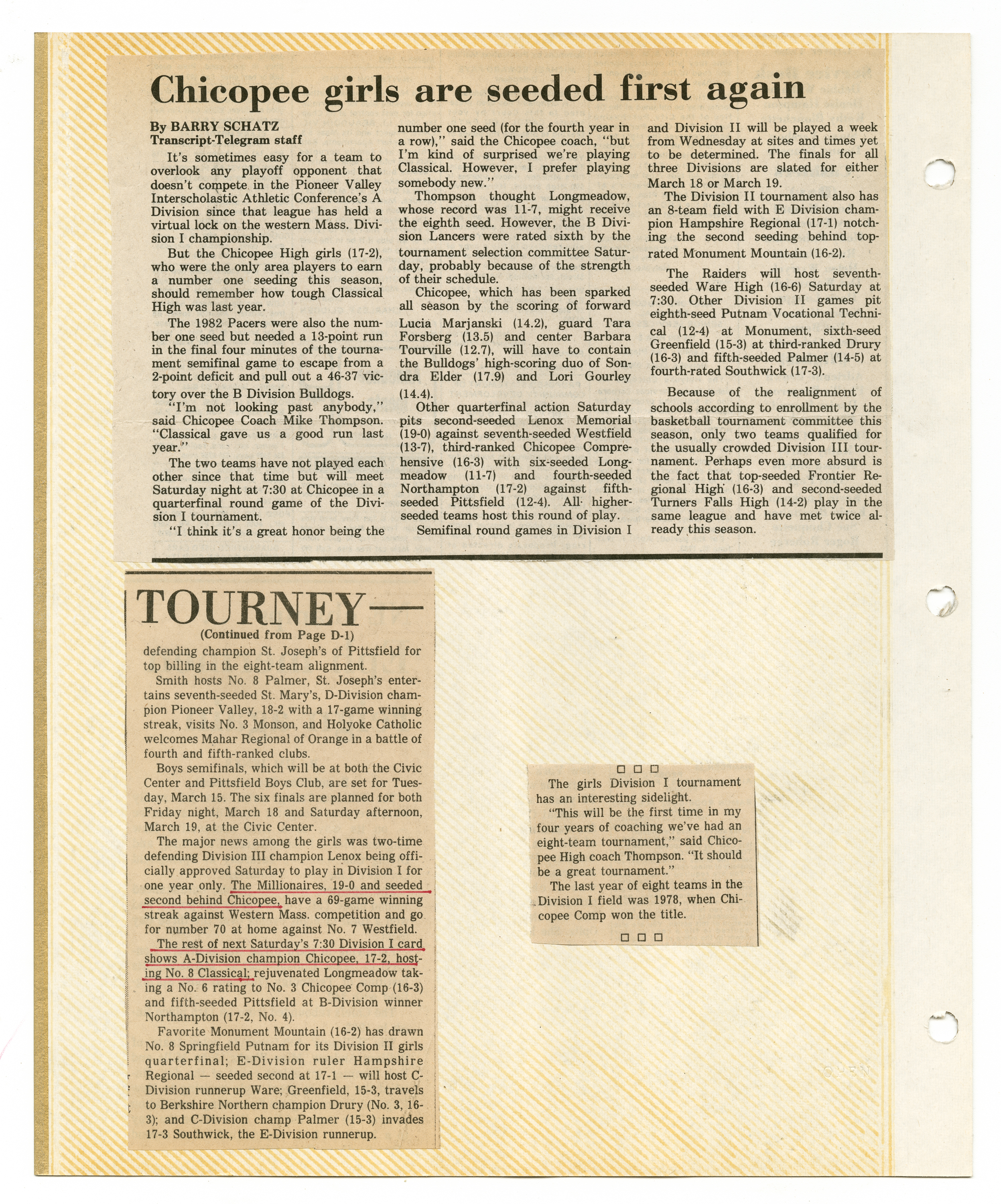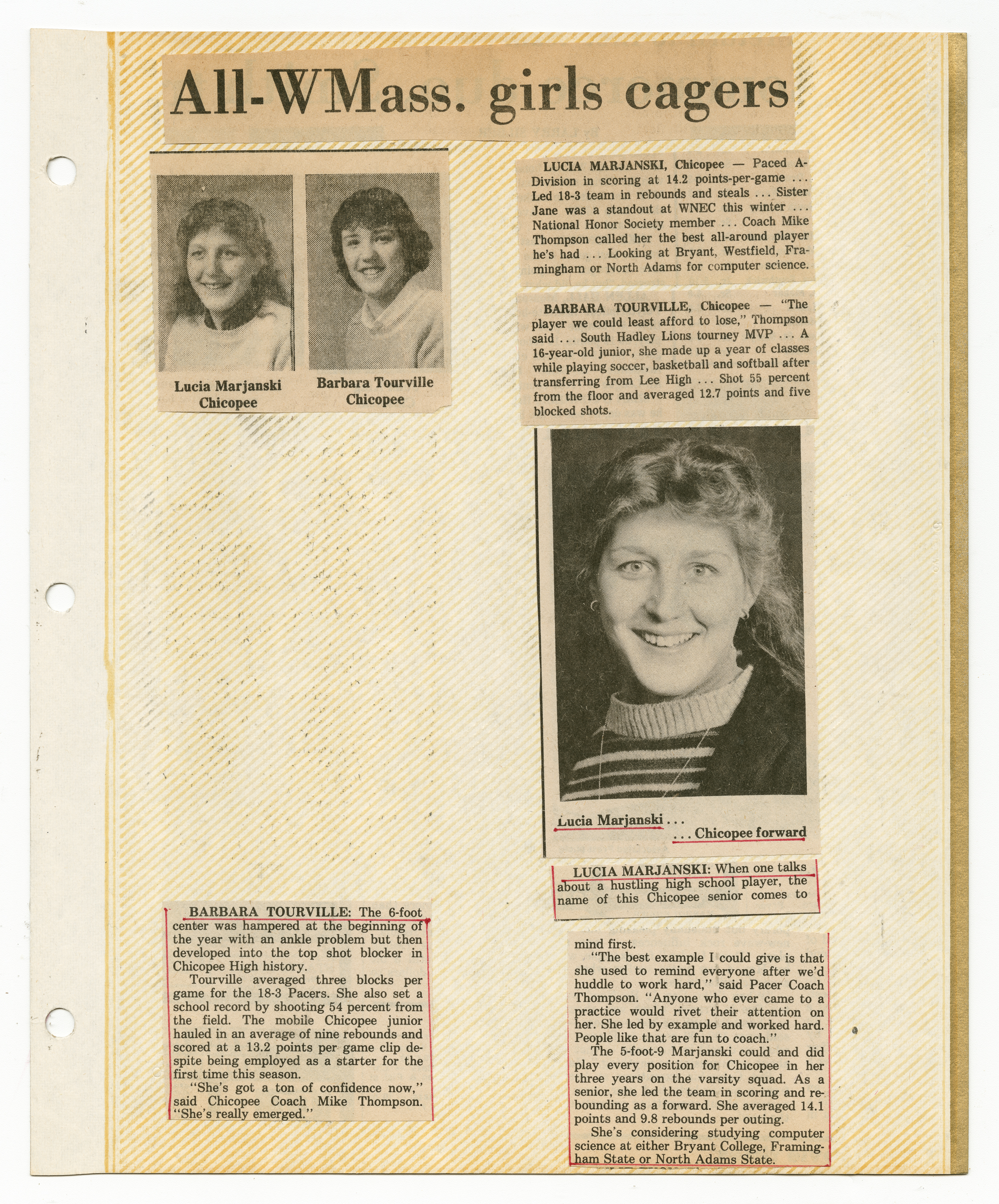 Michael J. Thompson, “Chicopee High School Girls Basketball Scrapbook 1983,” Chicopee Archives Online, accessed March 6, 2026, https://www.chicopeepubliclibrary.org/archives/items/show/9098.