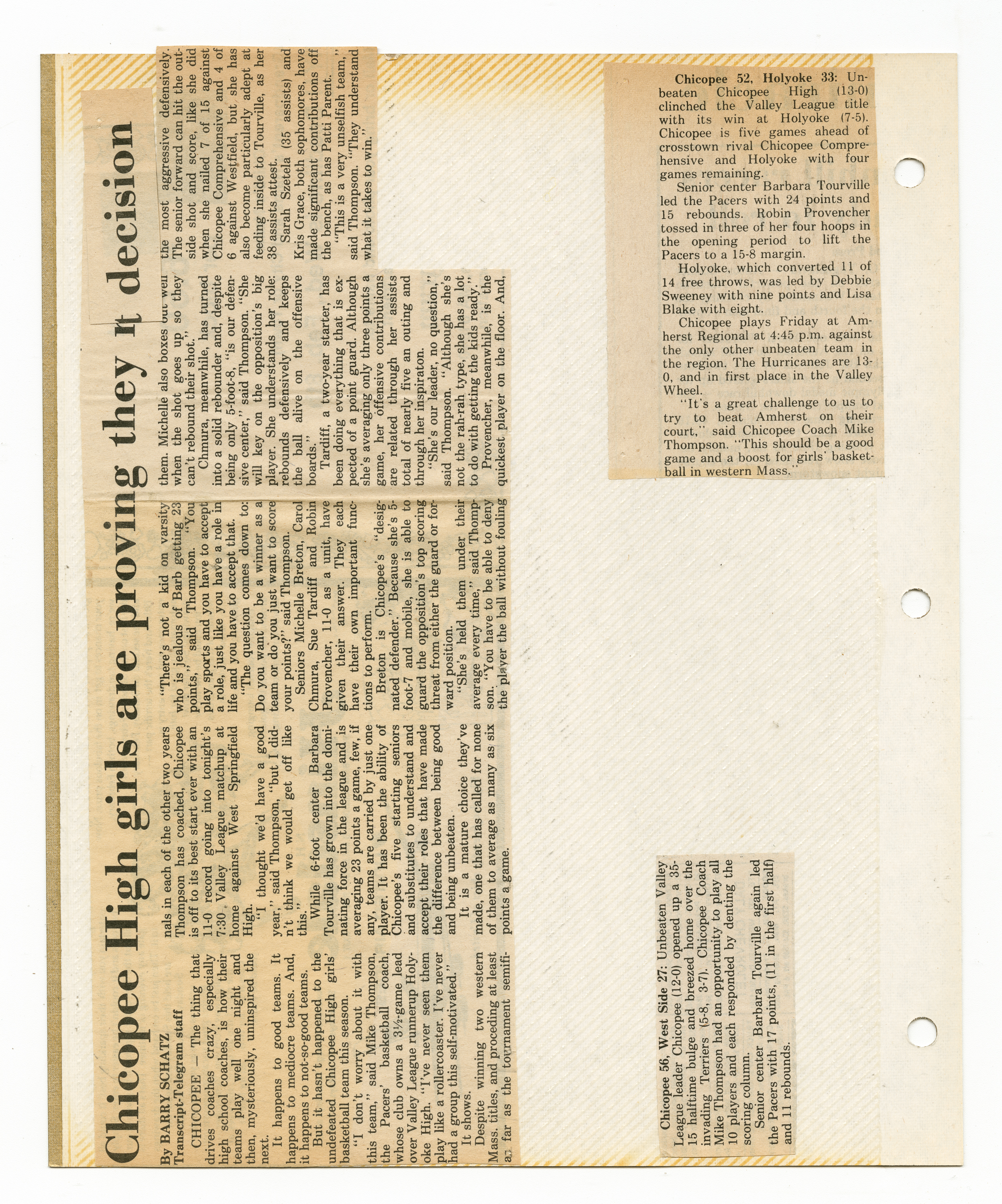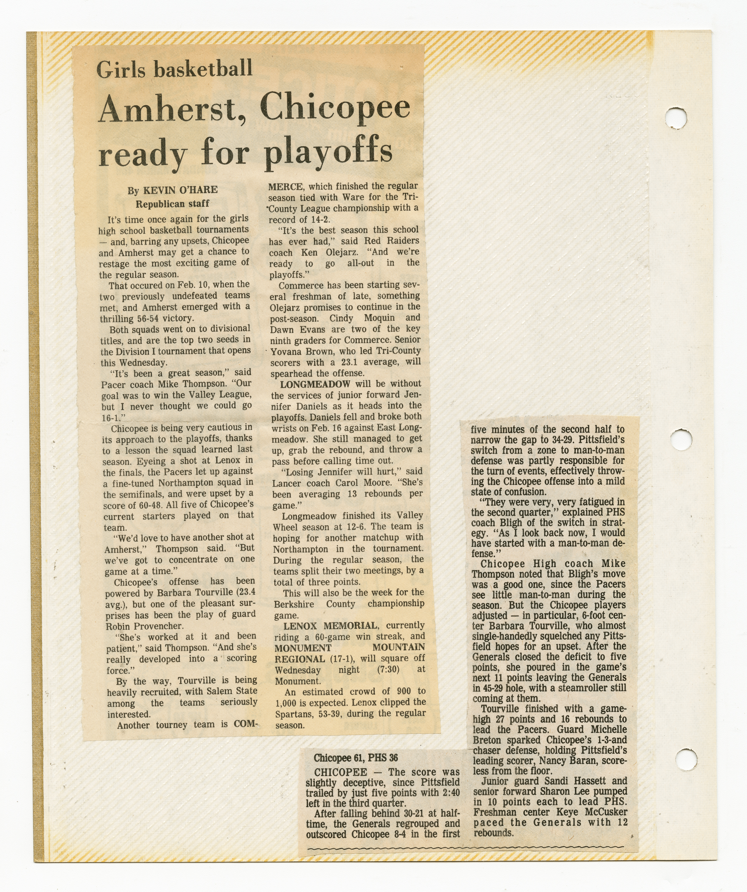 Michael J. Thompson, “Chicopee High School Girls Basketball Scrapbook 1984,” Chicopee Archives Online, accessed March 6, 2026, https://www.chicopeepubliclibrary.org/archives/items/show/9100.