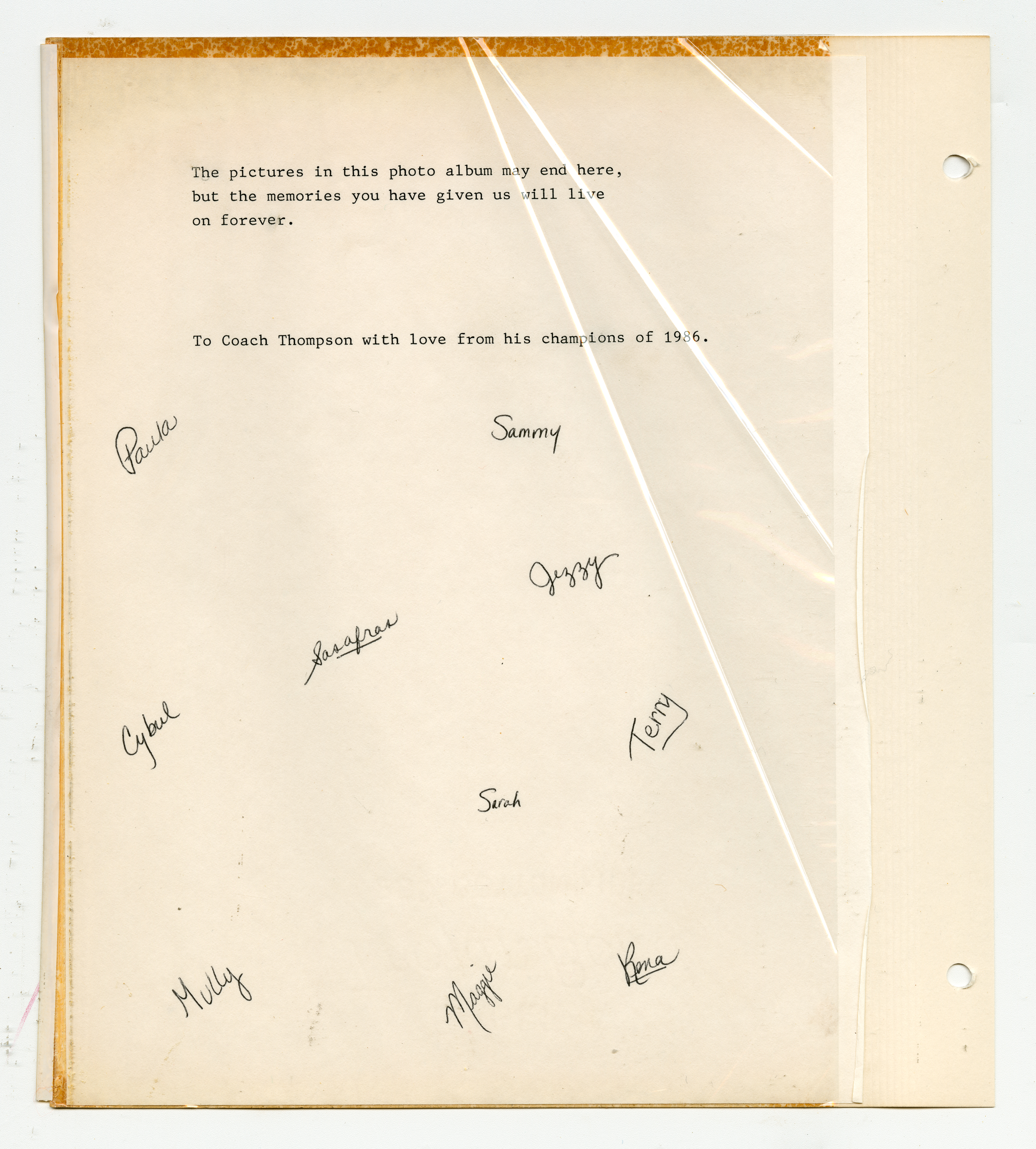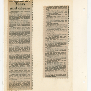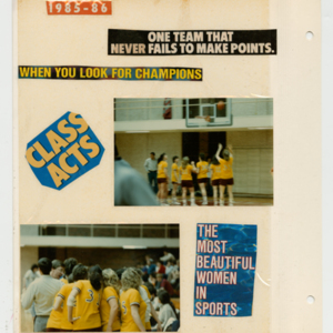 A ninety-two page scrapbook of photographs and newspaper clippings of the 1986 championship season. This scrapbook is more personalized than the others and contains more photographs. It has been kept intact to preserve the original nature of the item.