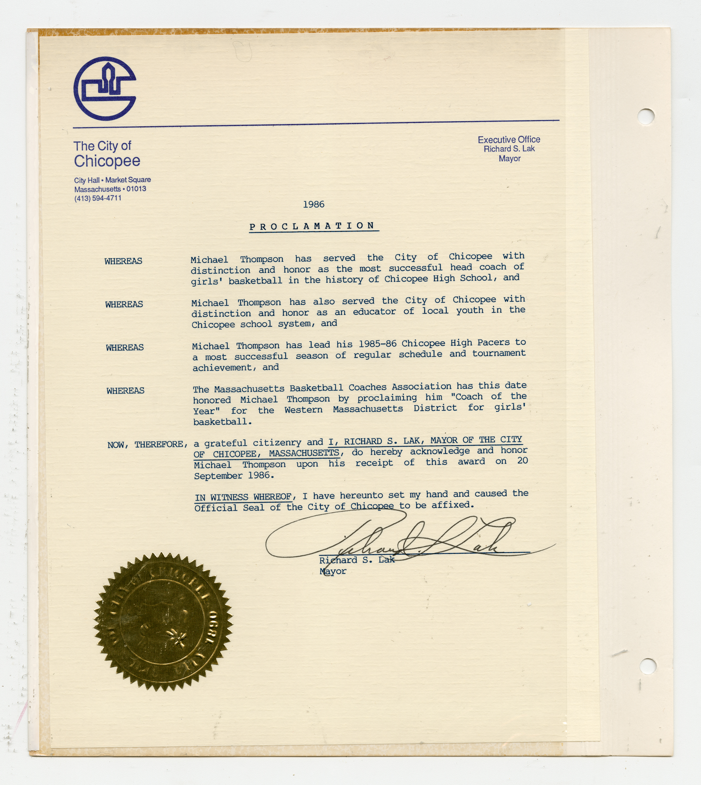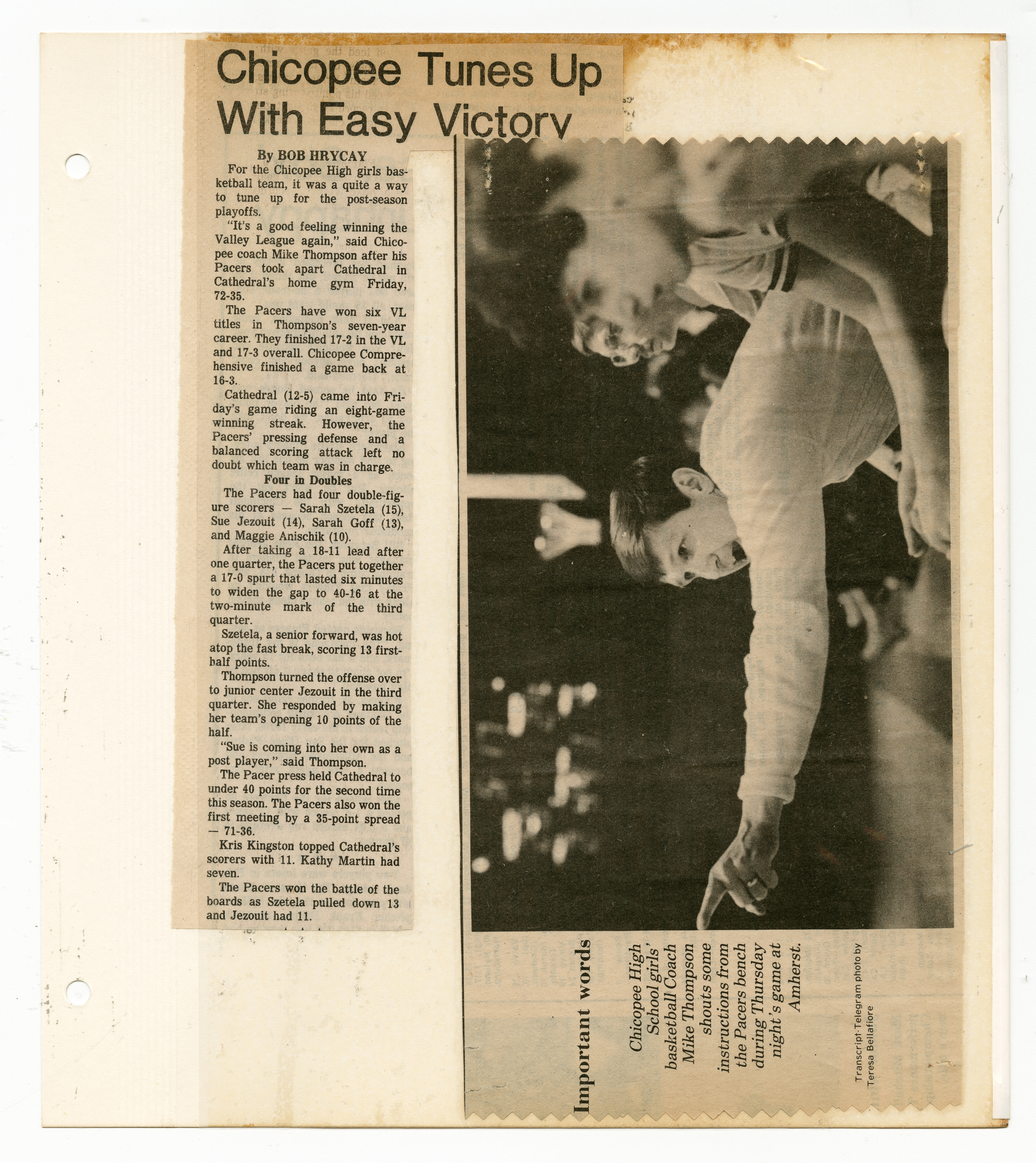 Michael J. Thompson, “Chicopee High School Girls Basketball Scrapbook 1986,” Chicopee Archives Online, accessed March 6, 2026, https://www.chicopeepubliclibrary.org/archives/items/show/9104.
