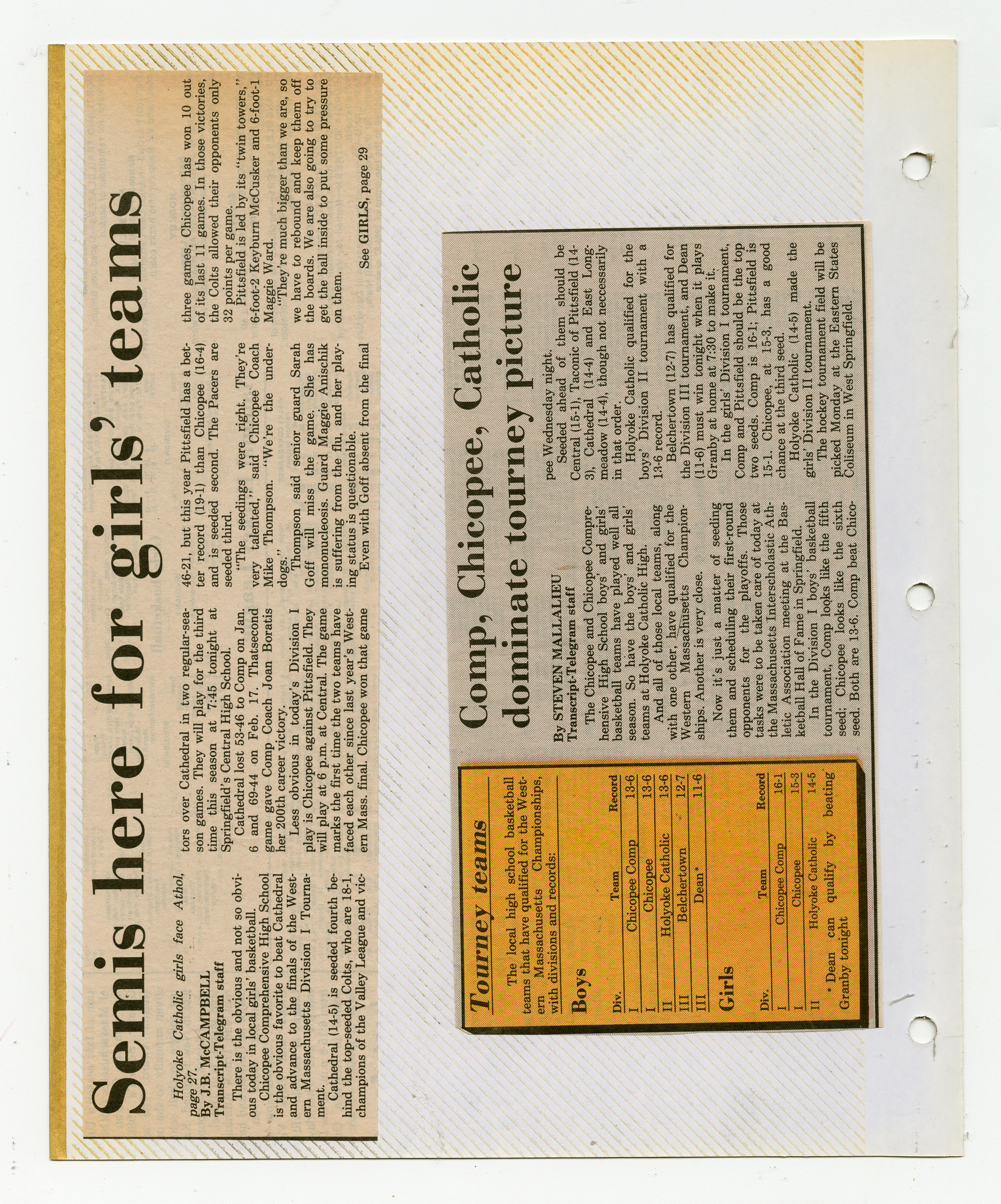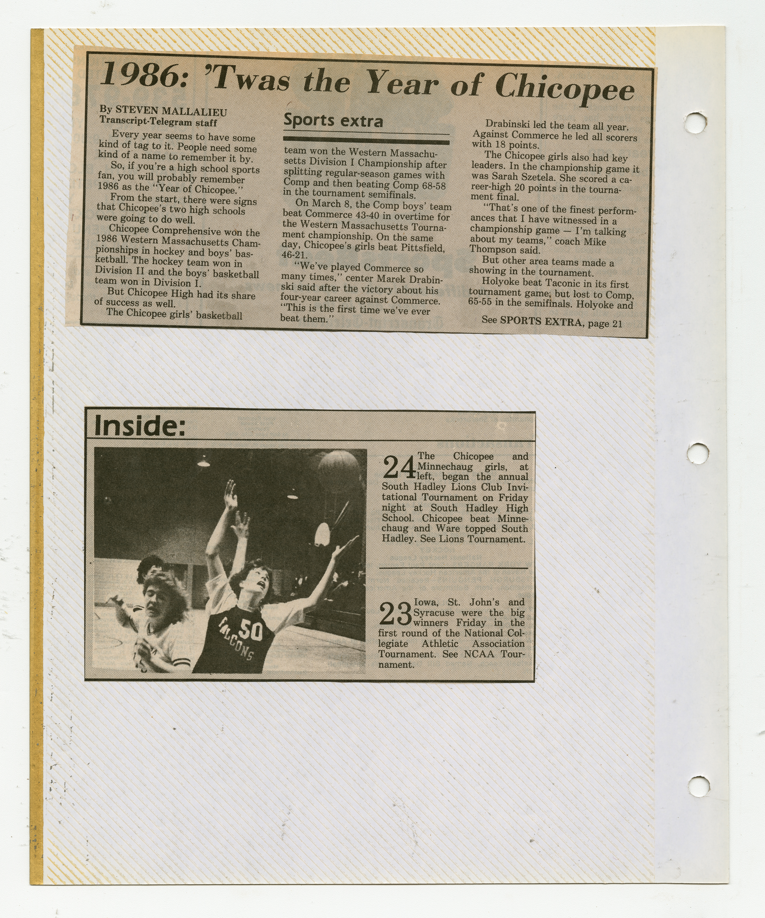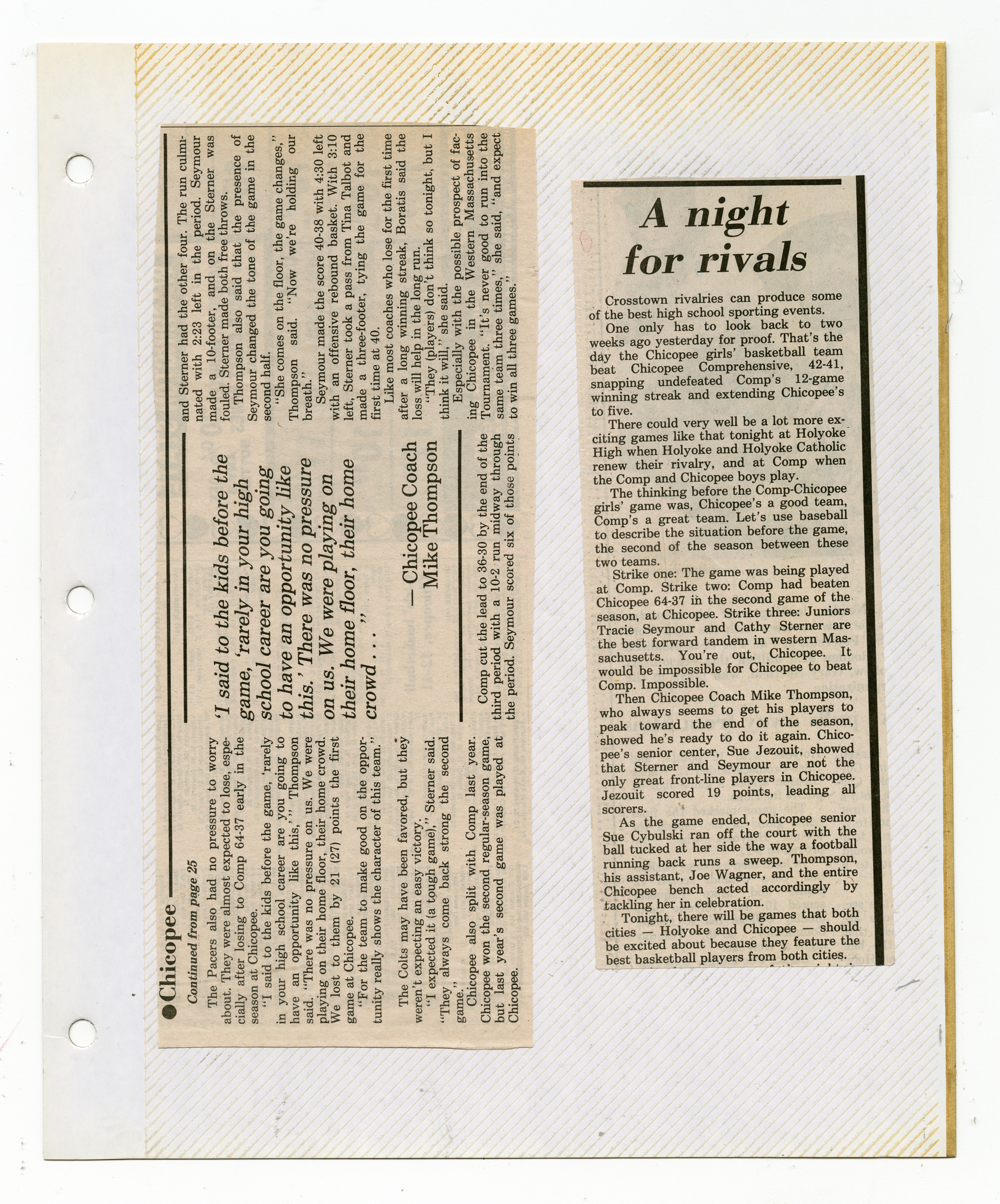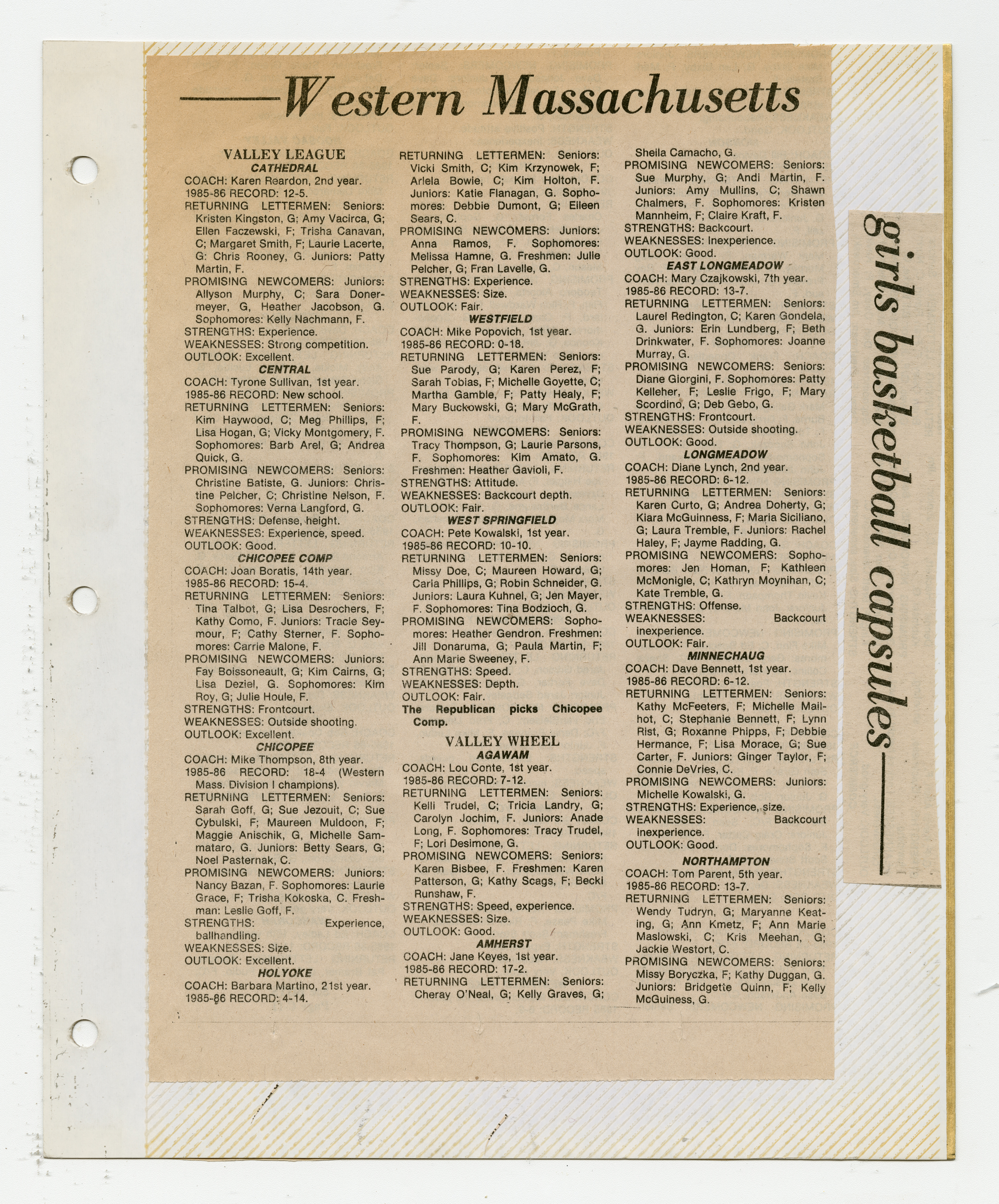 Michael J. Thompson, “Chicopee High School Girls Basketball Scrapbook 1987,” Chicopee Archives Online, accessed March 6, 2026, https://www.chicopeepubliclibrary.org/archives/items/show/9106.