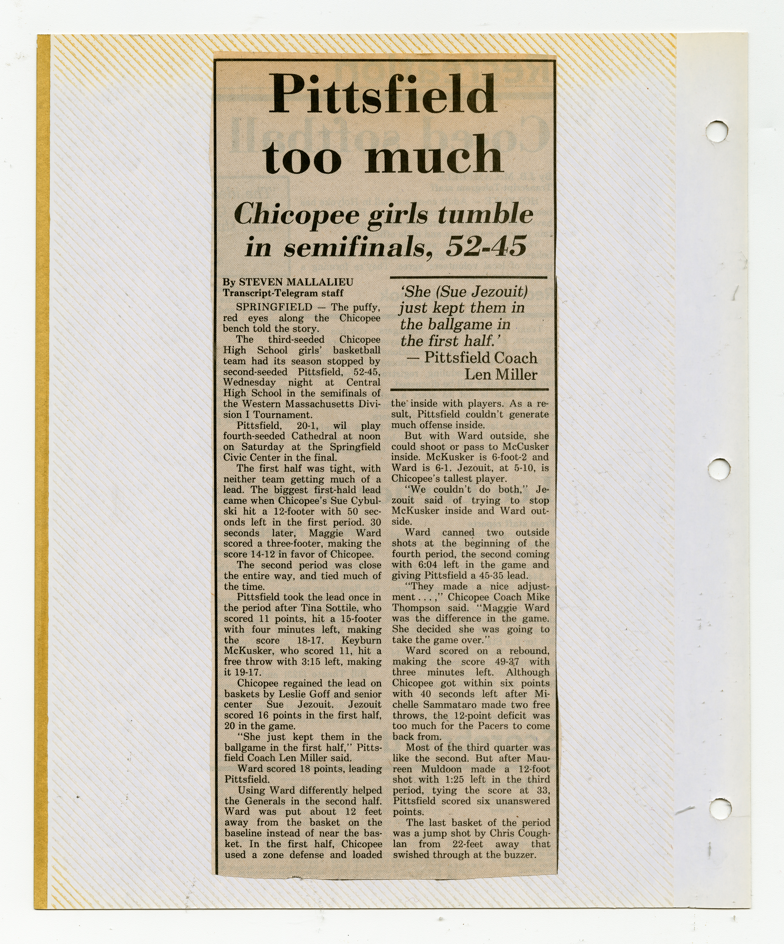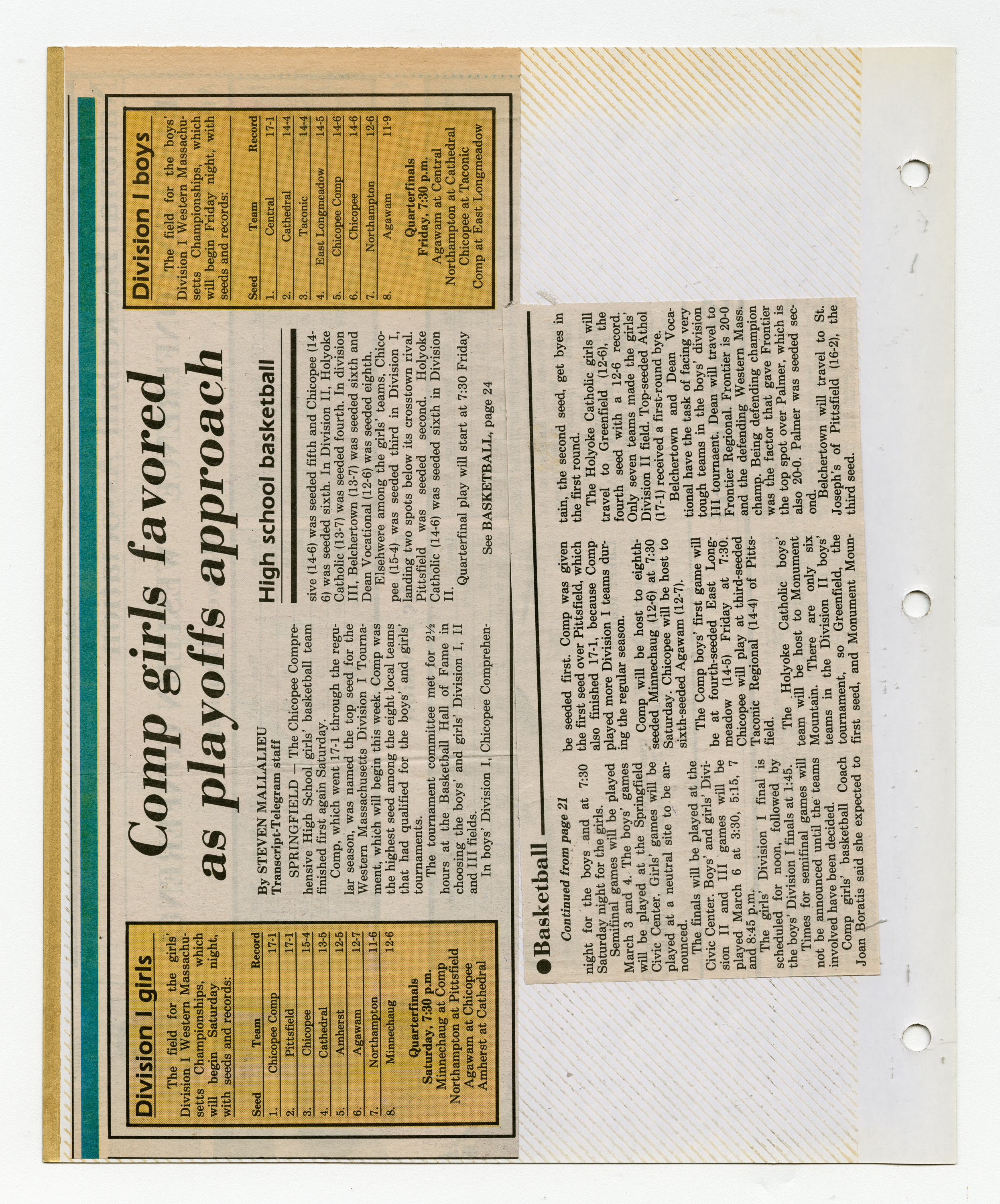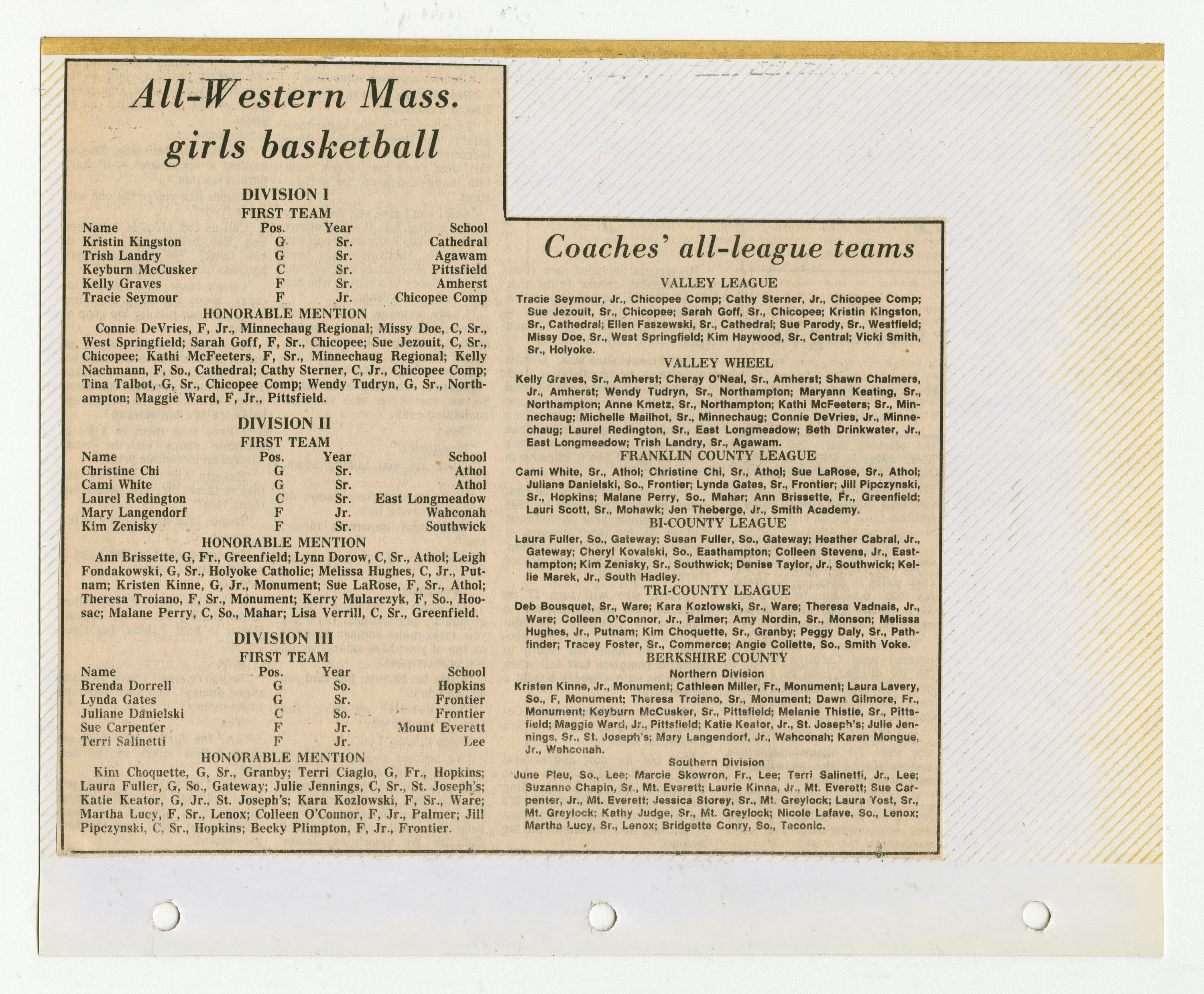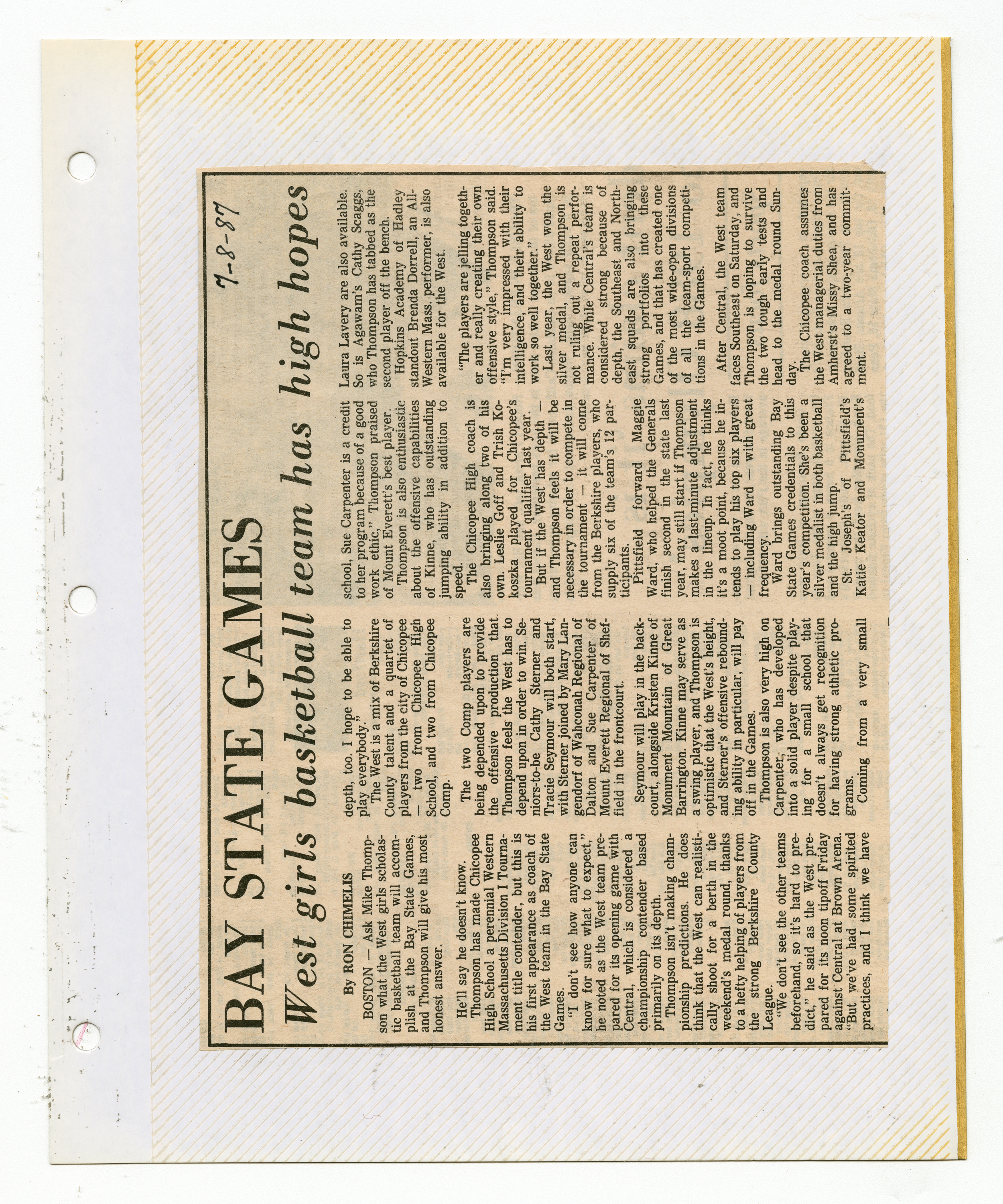 Michael J. Thompson, “Chicopee High School Girls Basketball Scrapbook 1987,” Chicopee Archives Online, accessed March 6, 2026, https://www.chicopeepubliclibrary.org/archives/items/show/9106.