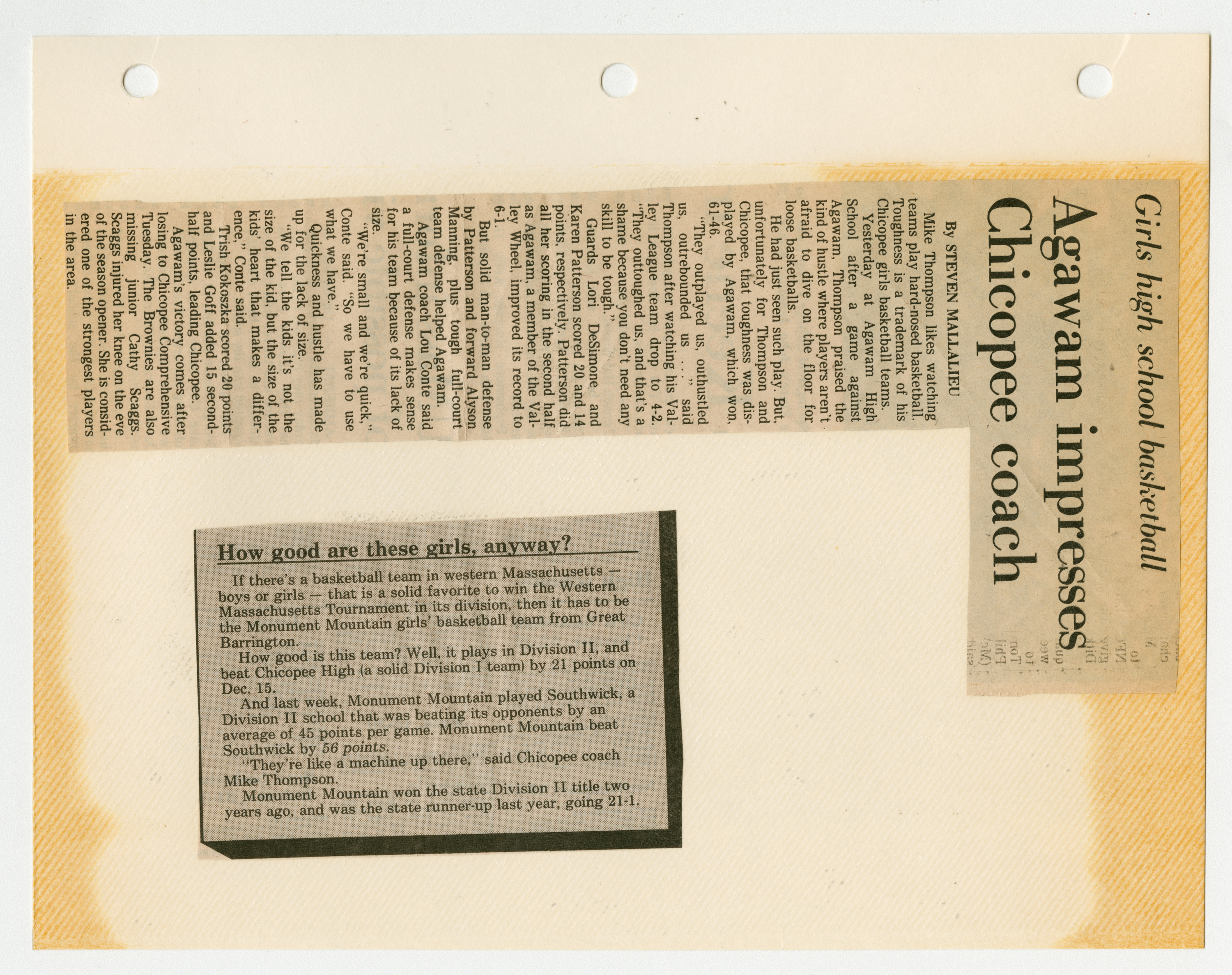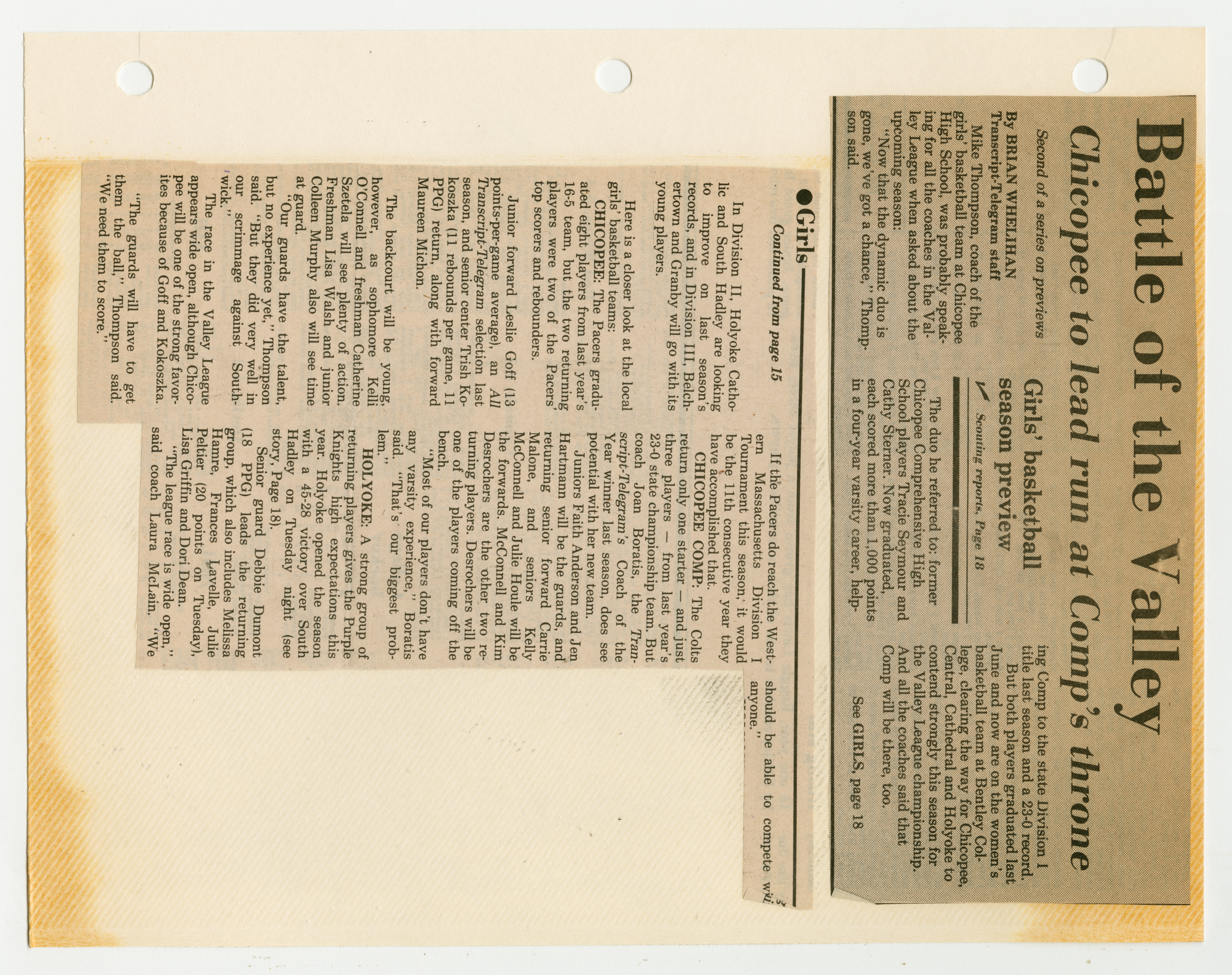 , “Chicopee High School Girls Basketball Scrapbook 1989,” Chicopee Archives Online, accessed March 6, 2026, https://www.chicopeepubliclibrary.org/archives/items/show/9115.