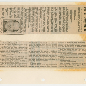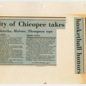 A fifty-two page scrapbook of yearbook photographs and newspaper clippings from the 1989 season including team ranking and final season results. Special attention is paid to the Chicopee/Chicopee Comprehensive rivalry. Also, articles on the departure of Coach Michael Thompson from his tenure at Chicopee High School.