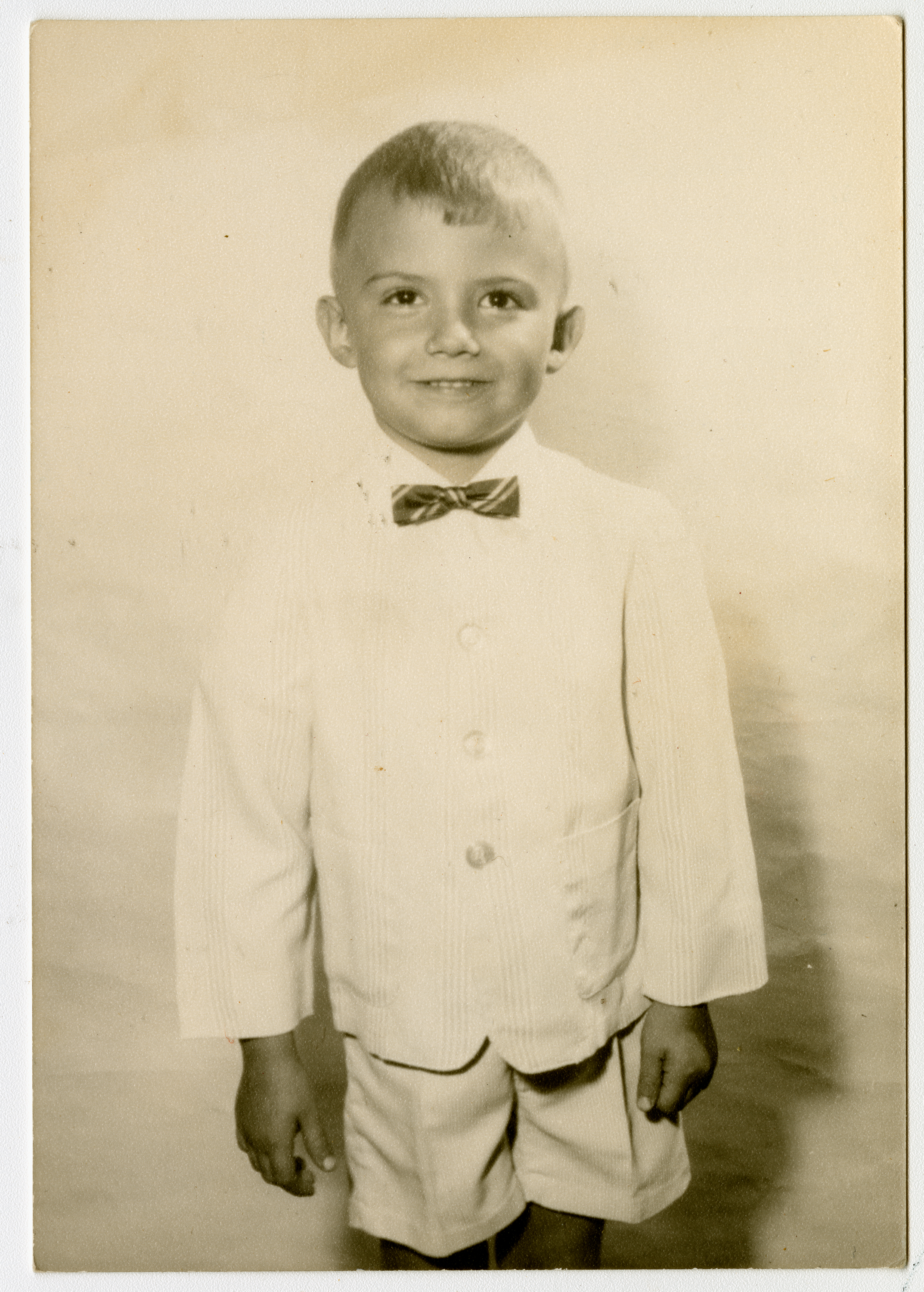 Black and white portrait of Paul Czjaka when he was a young boy, possibly age 5-6, dressed in a white suit with shorts and a bow tie. Zygmunt, Paul's father, worked as a Baker in Poland during the German occupation in 1939-1945. He later brought his family and baking skills to Chicopee and opened Bob's Bakery on Exchange Street in 1965. The bakery was started by Paul's father, Zygmunt Czajka, in 1965 and remained in business for 56 years. Bob's Bakery was well known for its Polish baked goods, including the Paczi. The family also owned the building at 218 Exchange Street, where the bakery was located. Paul took over the bakery in the 1980s and ran the business with his wife, Dorothy, until it closed in October 2021.