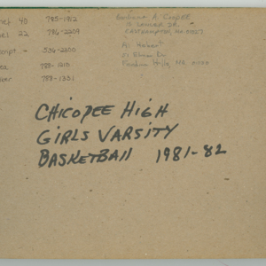, “Chicopee High School Girls Basketball Official Scorebook 1981- 1982,” Chicopee Archives Online, accessed March 6, 2026, https://www.chicopeepubliclibrary.org/archives/items/show/9196.