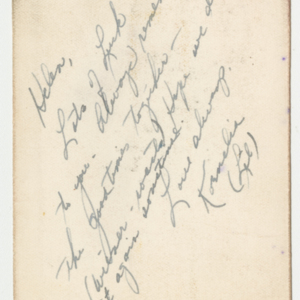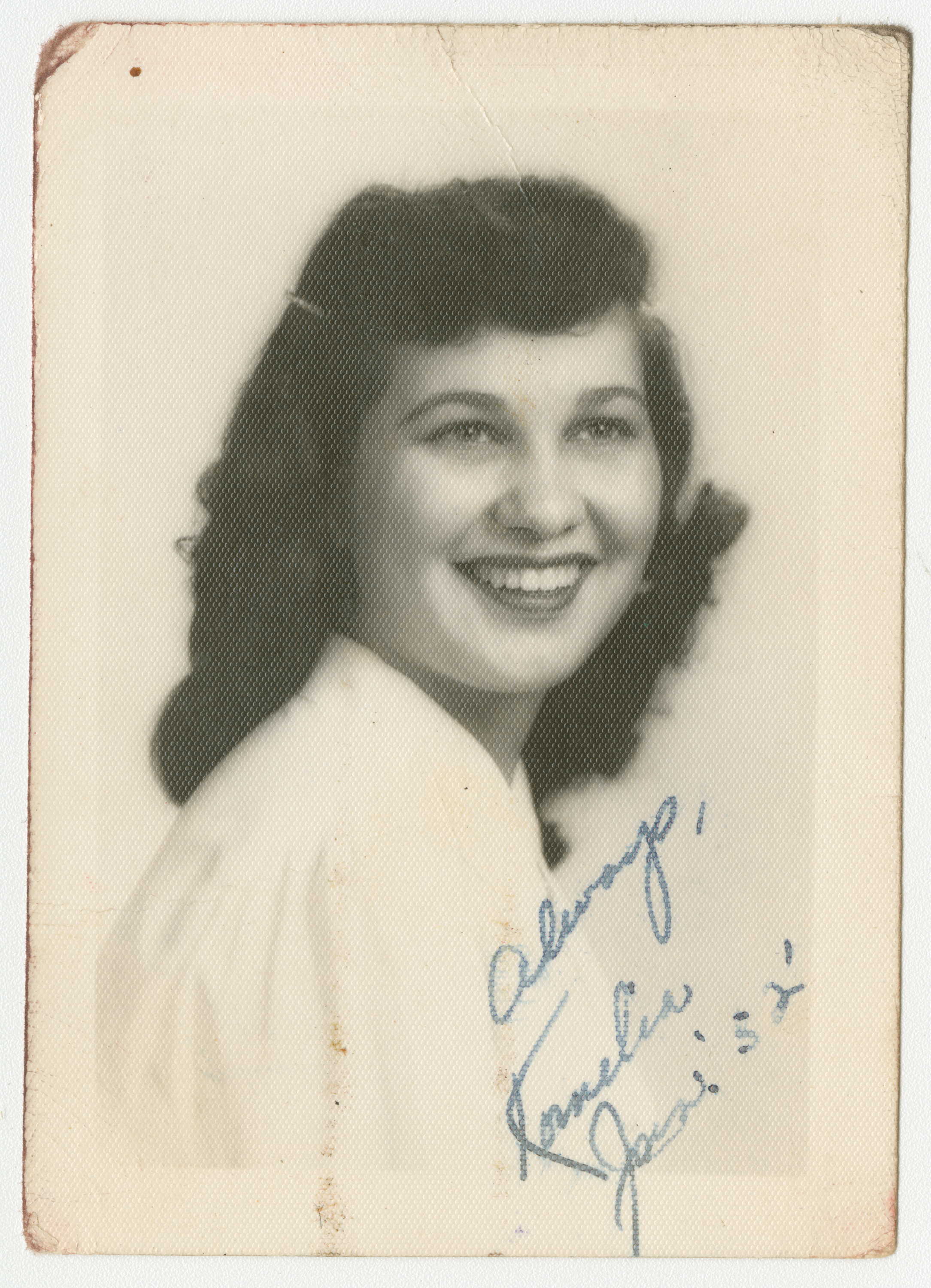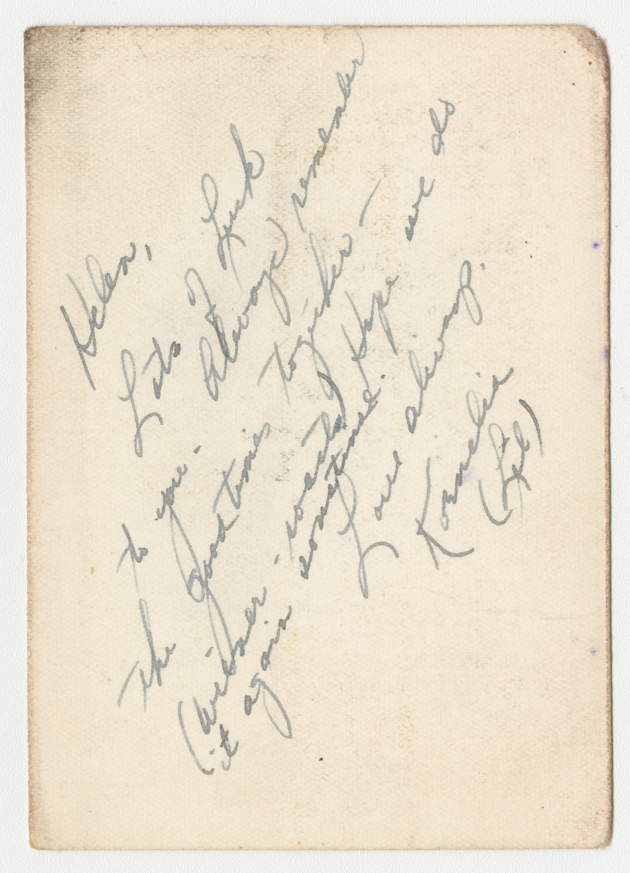 On photo: "Always, Kornelia J???? '52' "; Backside "Helen, Lots of Luck to you. Always remember ther good times together- (weiner - roasts) Hope we do it again sometime. Love Always, Kornelia (Lia)