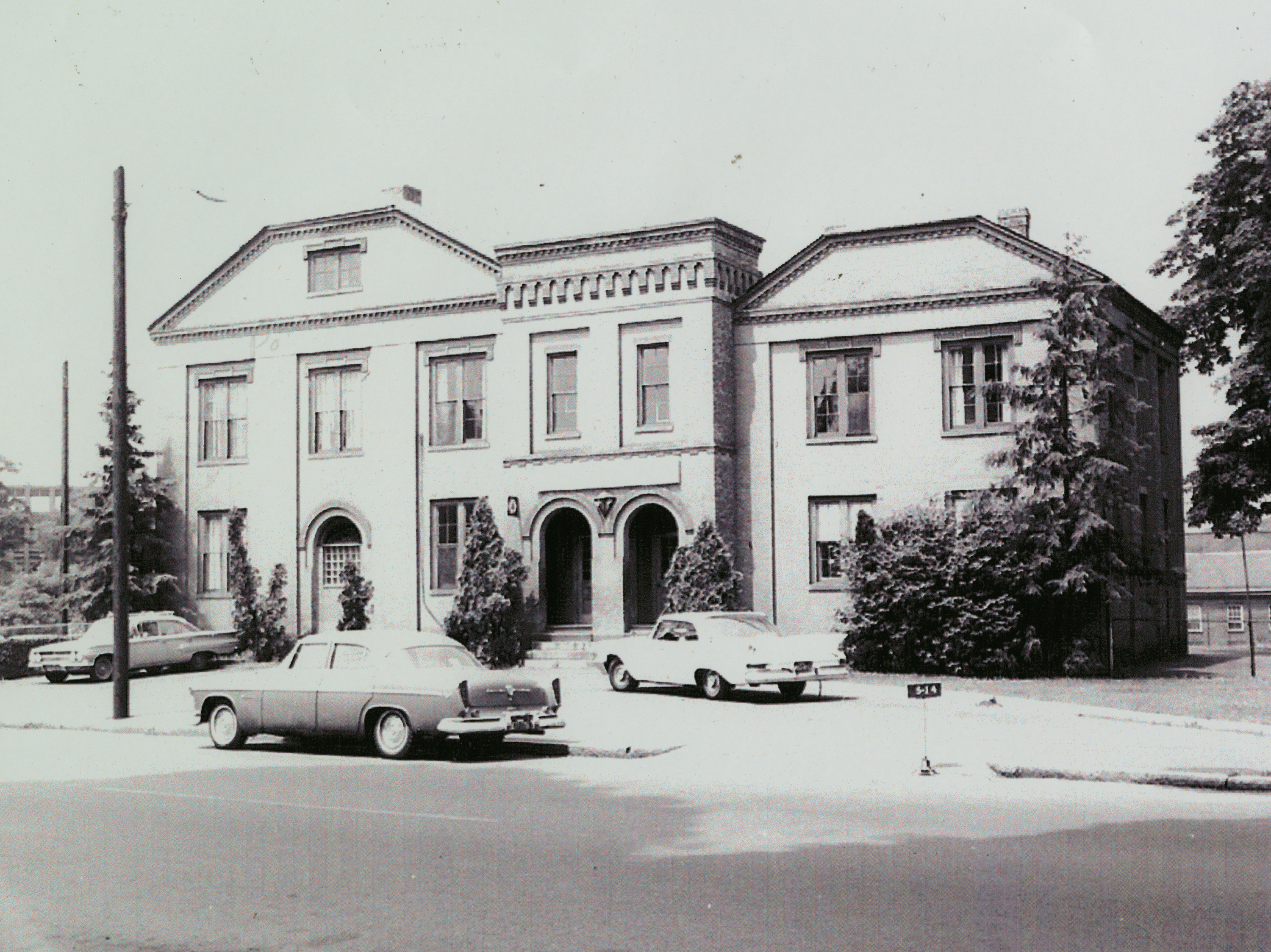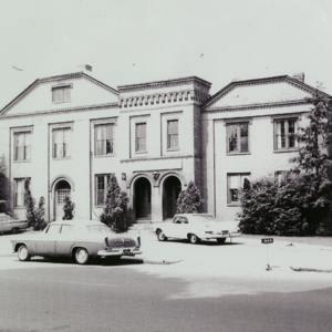 View of the front of the Church Street School, which was the USO during World War II and then the Community Center for Chicopee Falls. It was torn down to make room for the current police and fire departments headquarters.