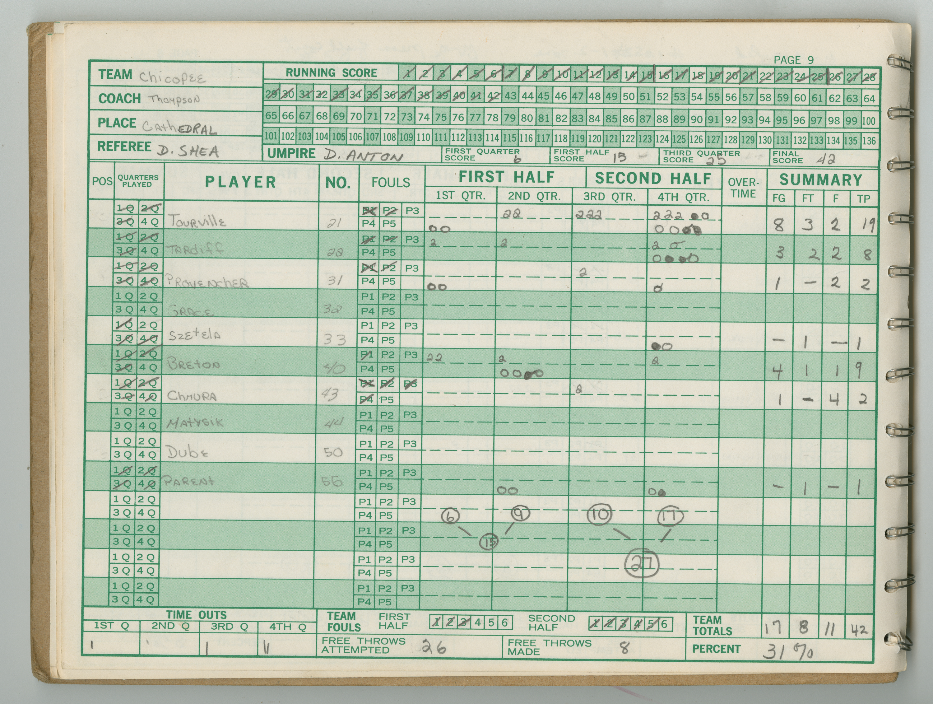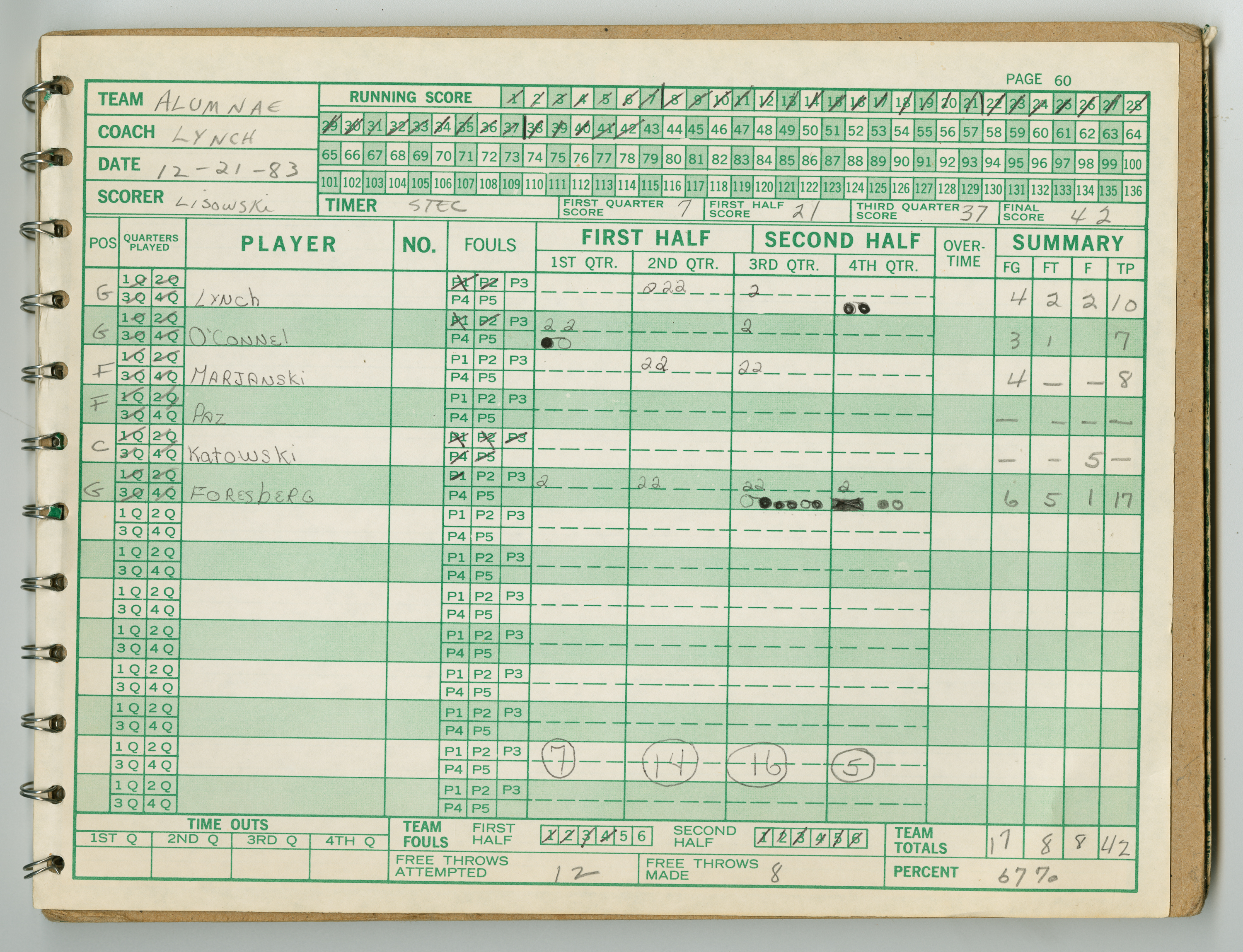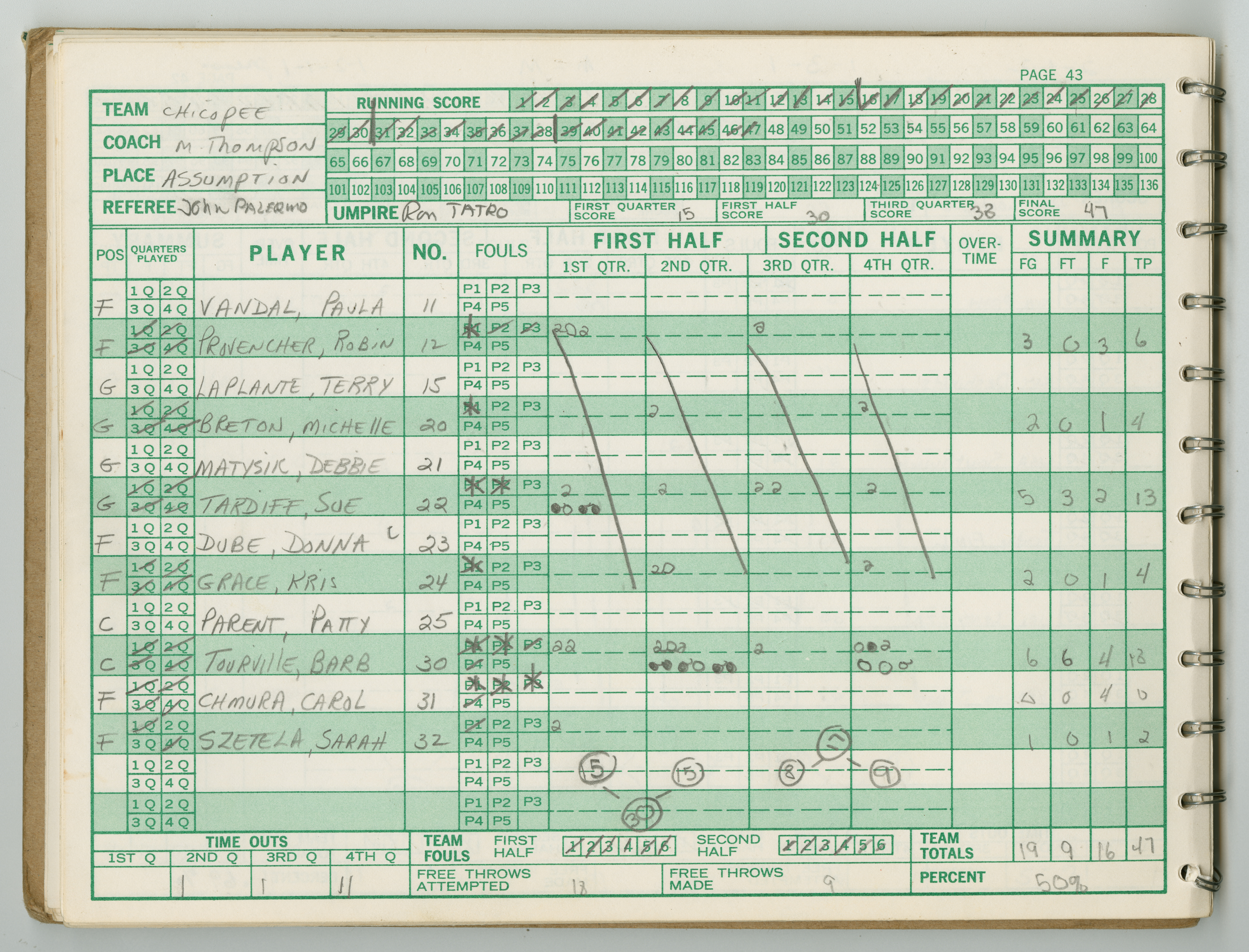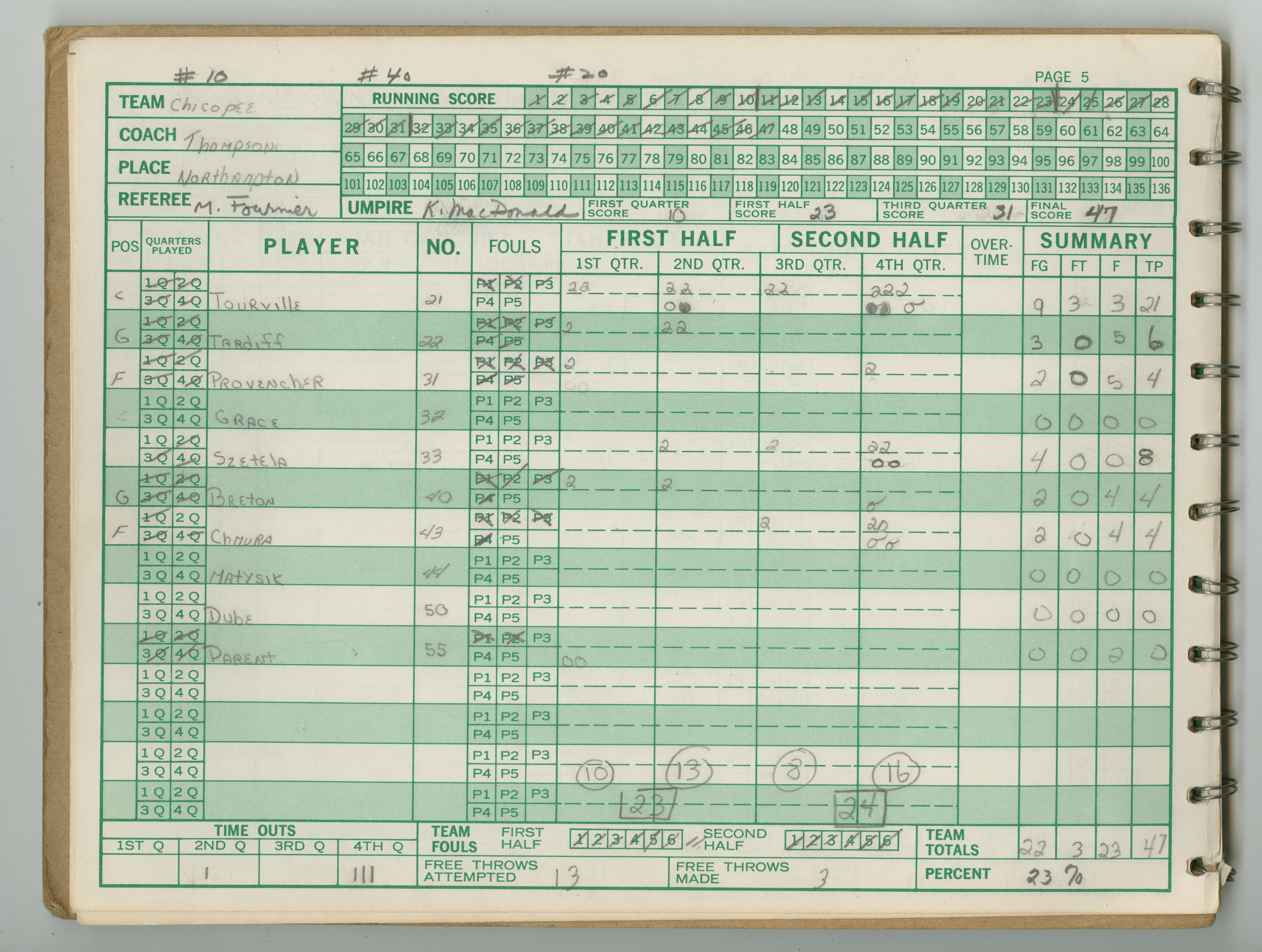 Michael J. Thompson , “Chicopee High School Girls Basketball Official Scorebook 1983 - 1984,” Chicopee Archives Online, accessed March 6, 2026, https://www.chicopeepubliclibrary.org/archives/items/show/9330.