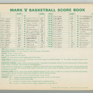 Official Scorebook for the 1983 - 1984 girl's varsity Basketball season. Each entry lists the names of the players and the complete scores and coaches notes of the game between Chicopee and the opposing team. The 1983 - 1984 season was Coach Thompson's fifth year coaching the girl's varsity team.