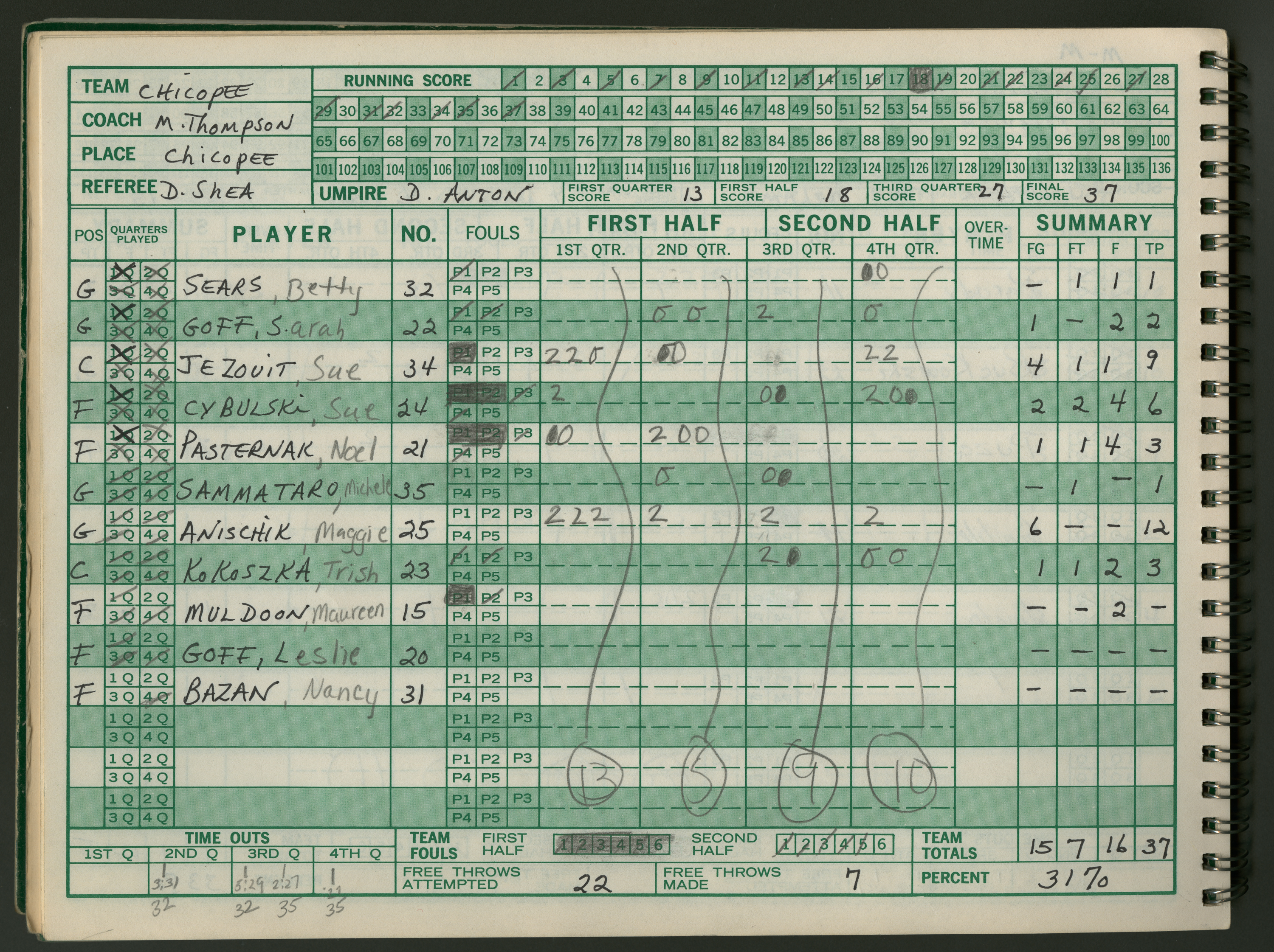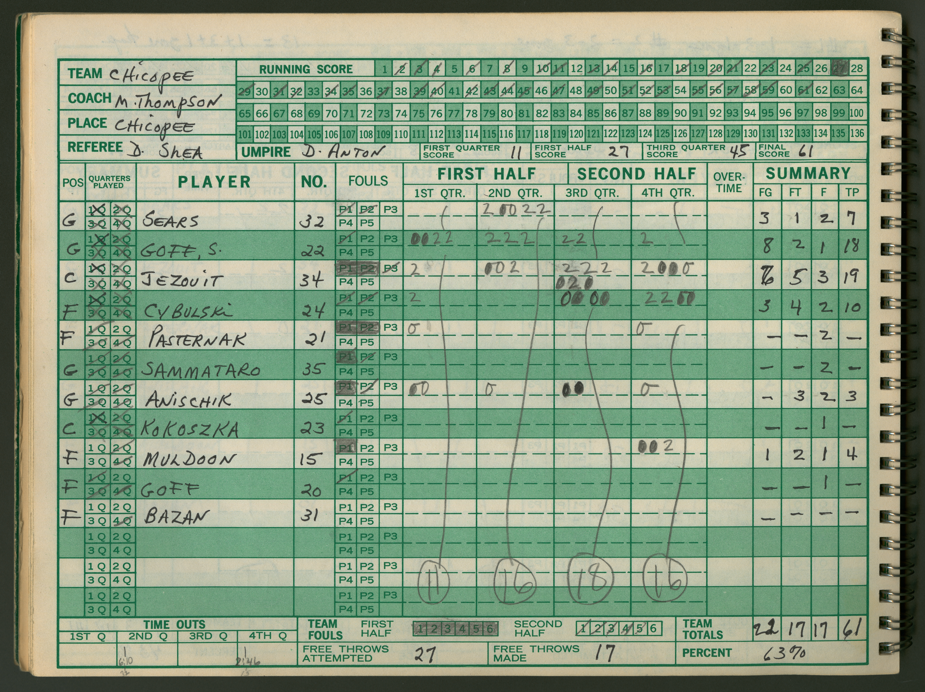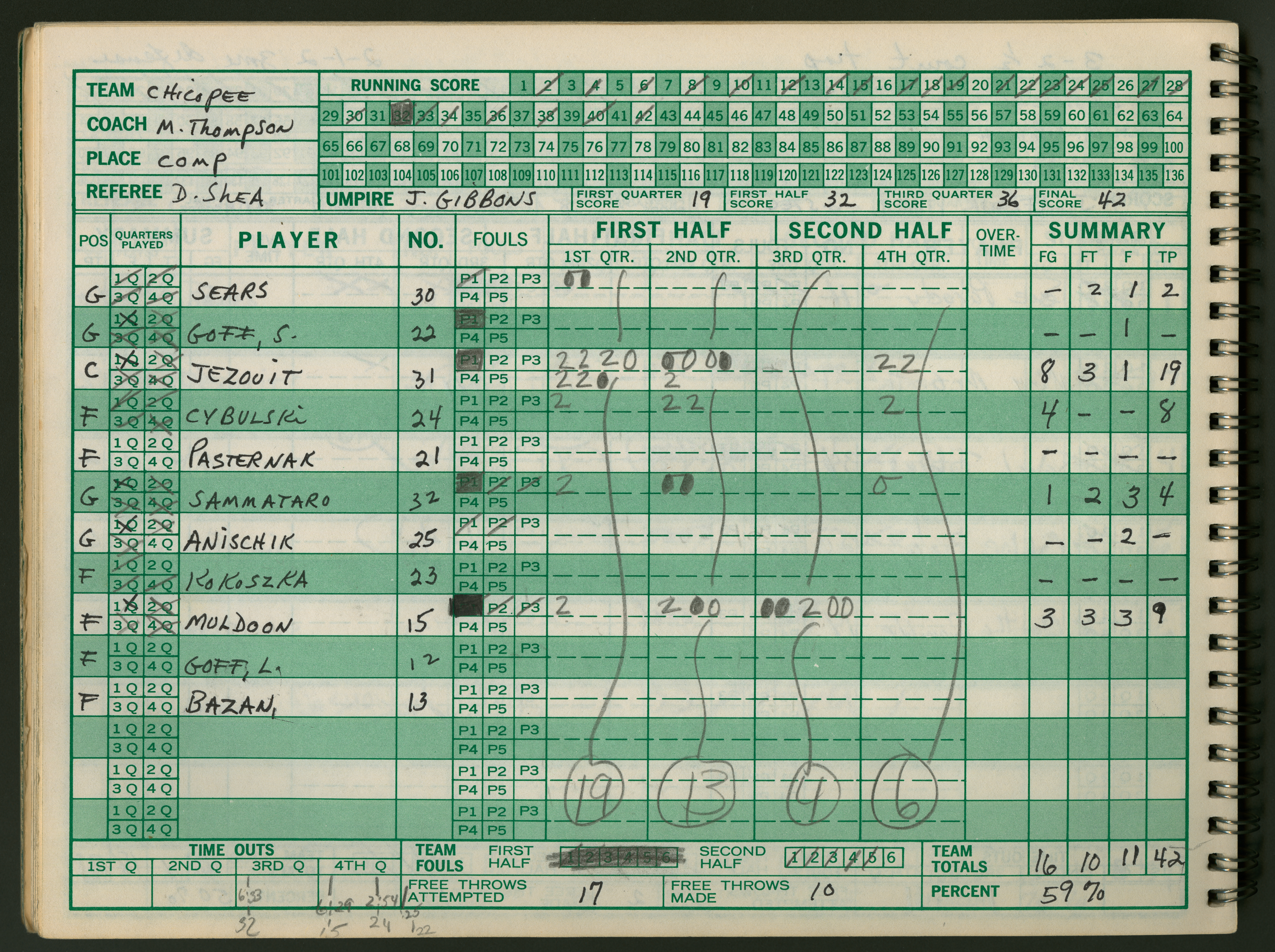 Michael J. Thompson , “Chicopee High School Girls Basketball Official Scorebook 1986 - 1987,” Chicopee Archives Online, accessed March 6, 2026, https://www.chicopeepubliclibrary.org/archives/items/show/9333.